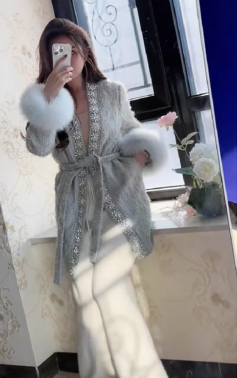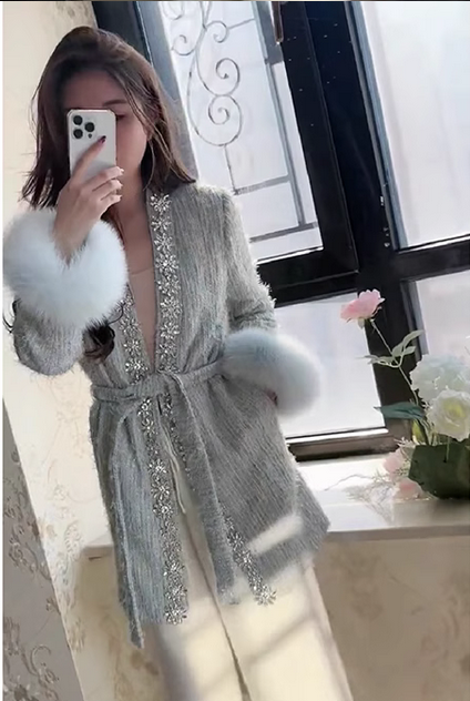 产品名称 | Product name: 今年流行的漂亮气质御姐独特超好看灰色小香风毛边外套女2023秋冬