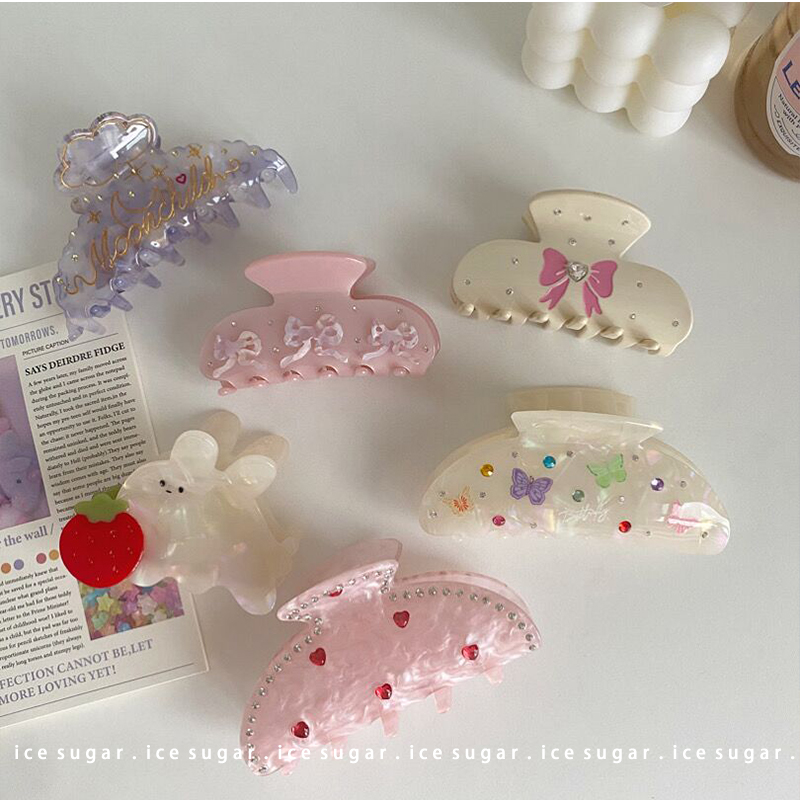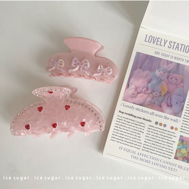 产品名称 | Product name: 「ice温柔镶钻醋酸抓夹」超仙甜美法式蝴蝶结爱心精致后脑勺发夹