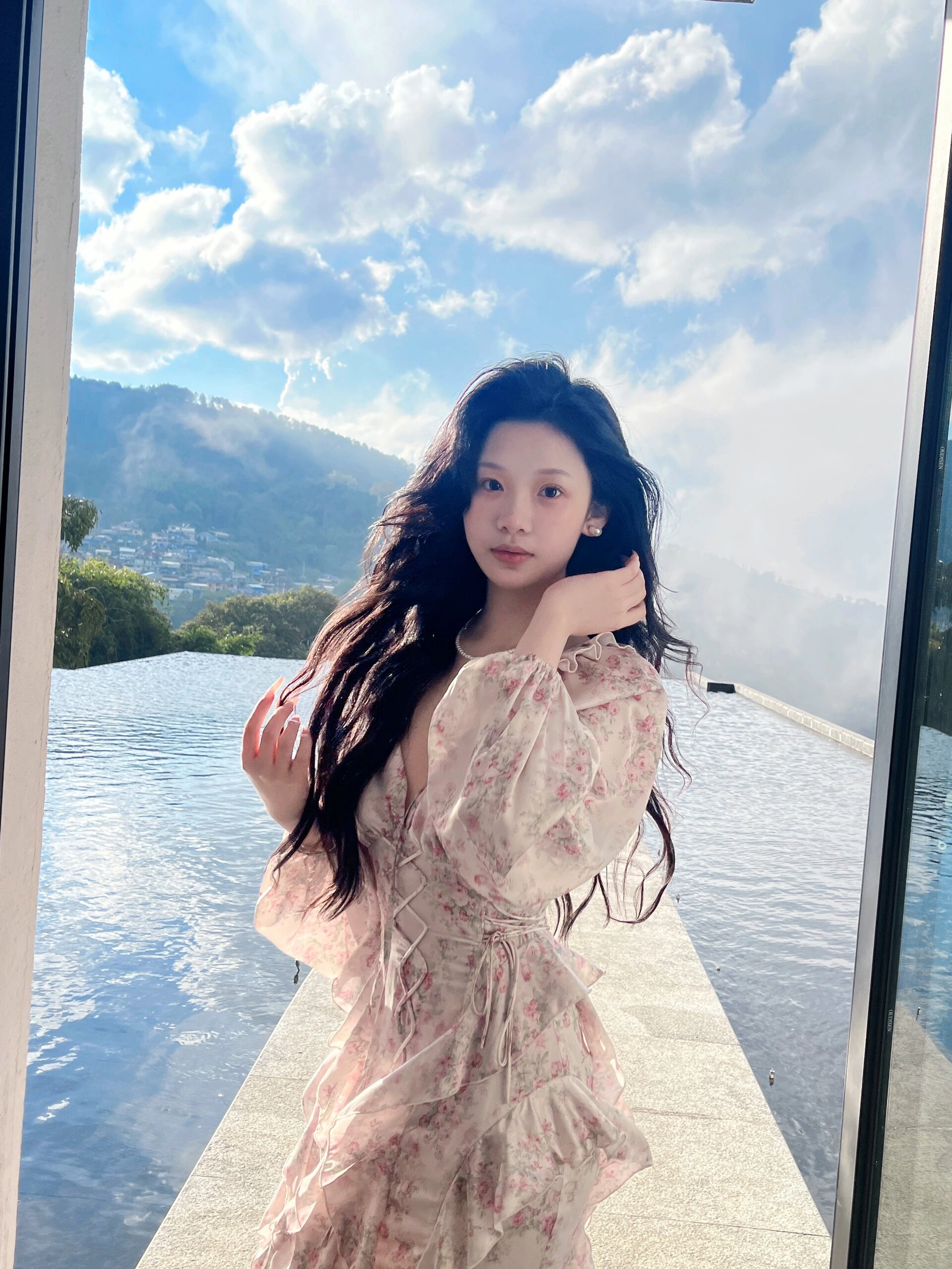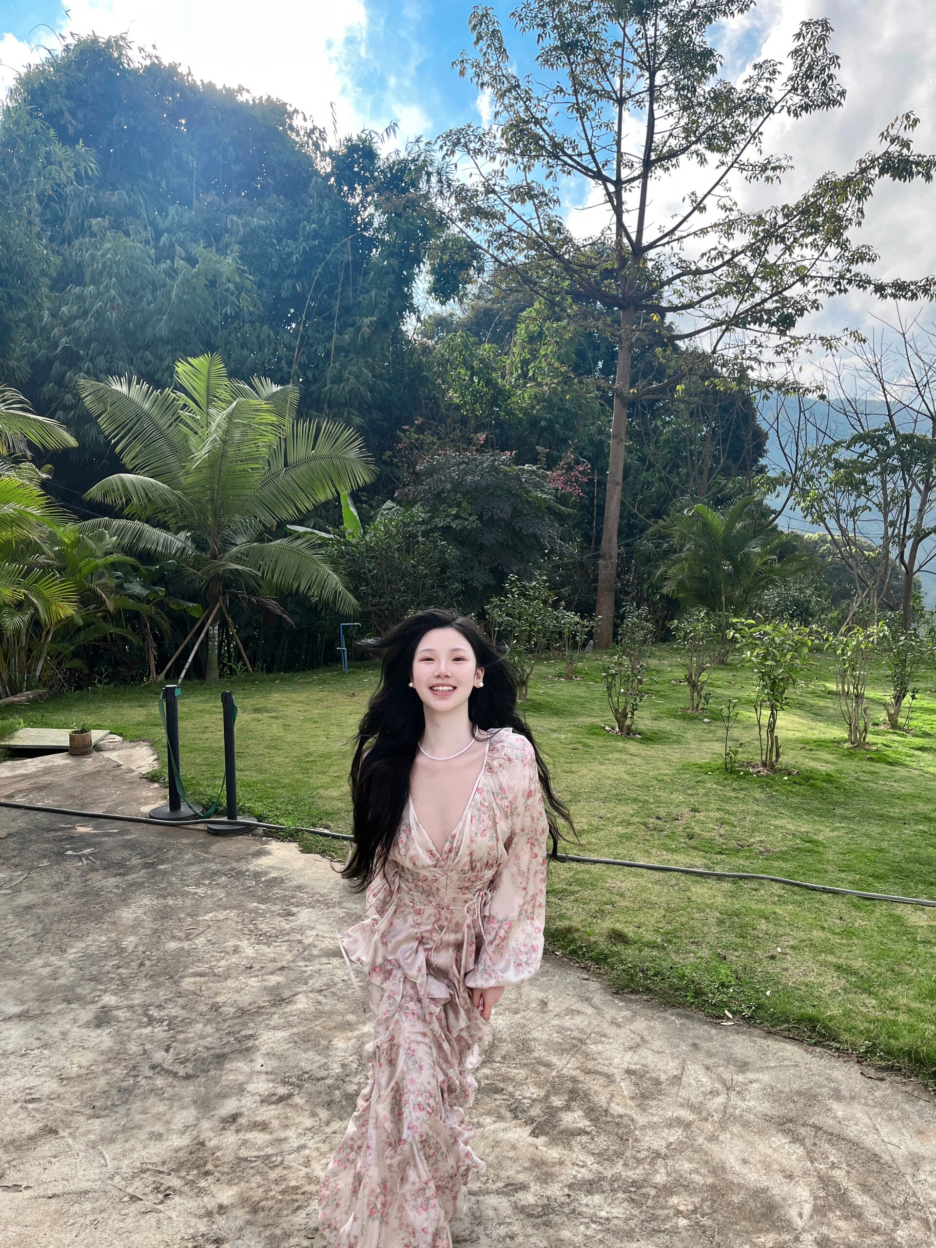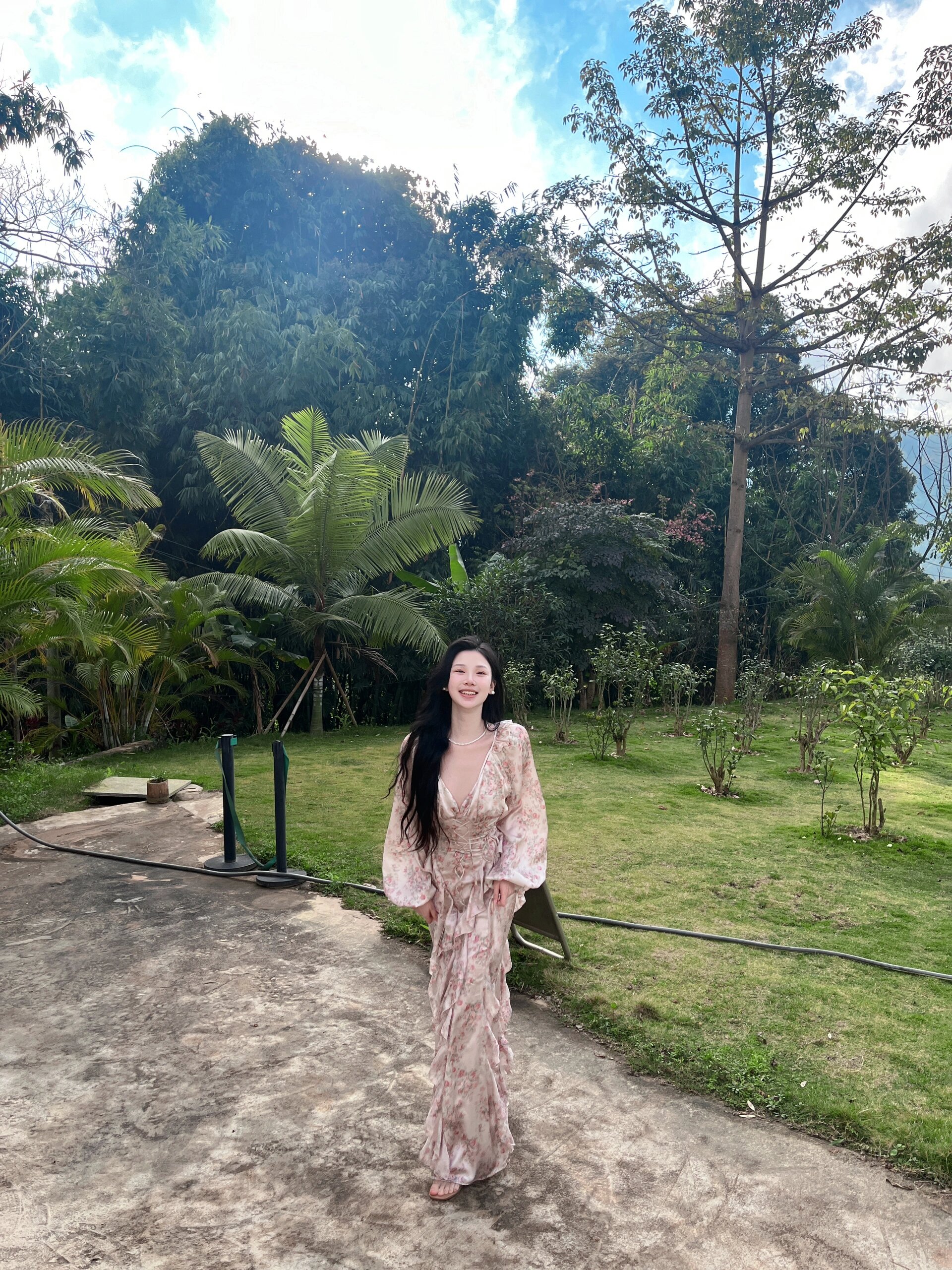 田园宫廷风交叉绑带层次感荷叶边连衣裙海边度假拍照沙滩长