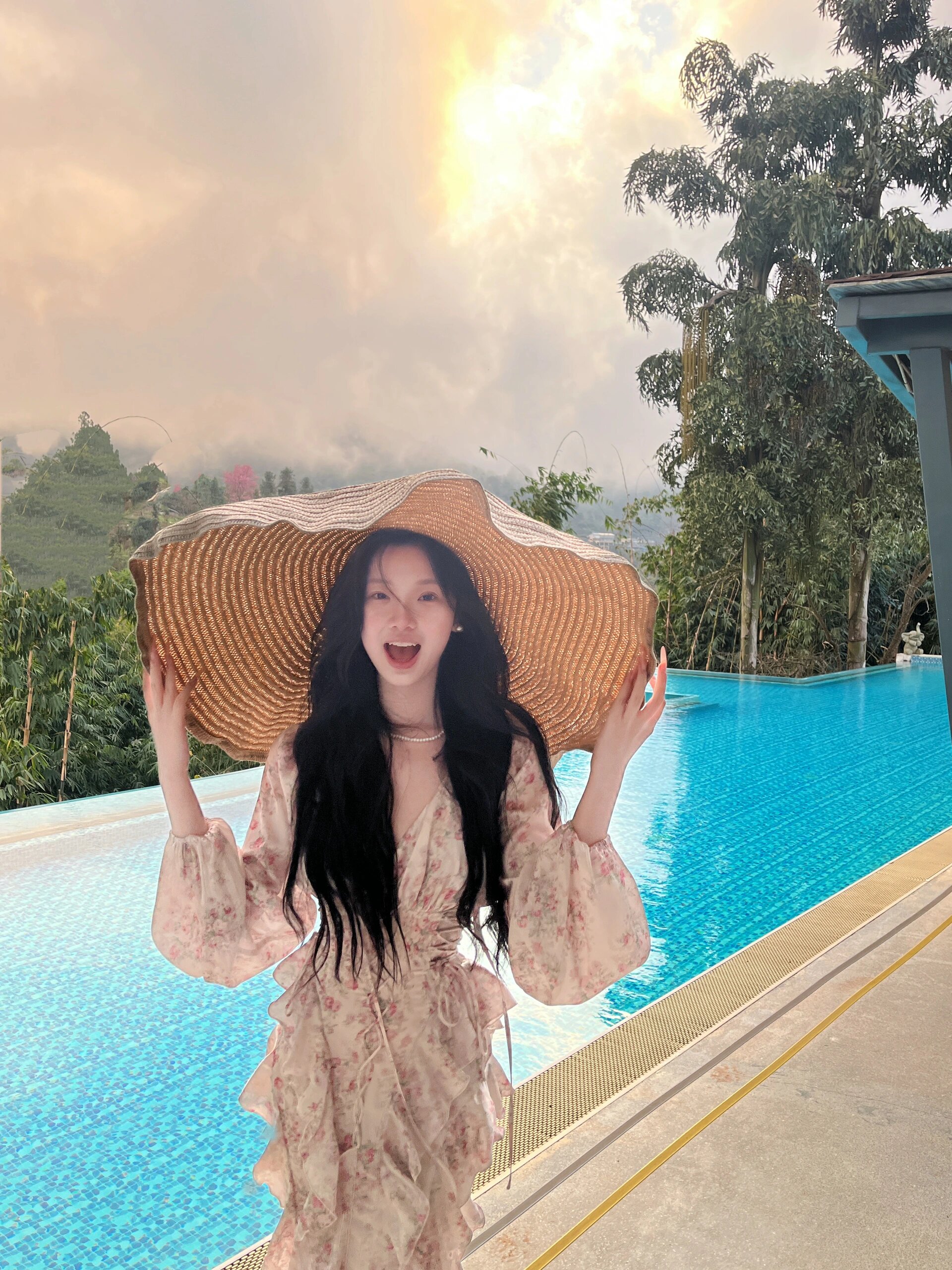 产品名称 | Product name: 田园宫廷风交叉绑带层次感荷叶边连衣裙海边度假拍照沙滩长