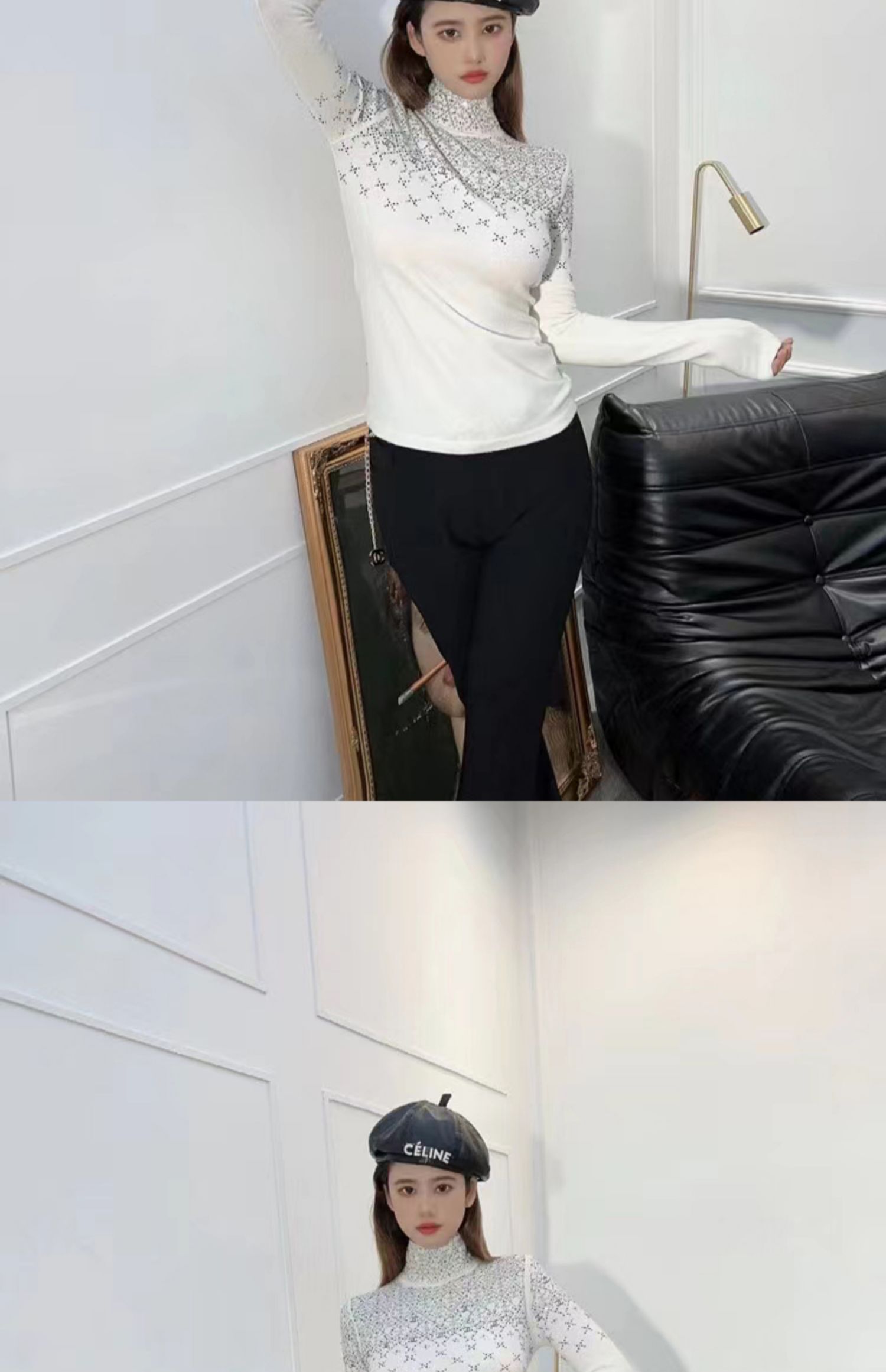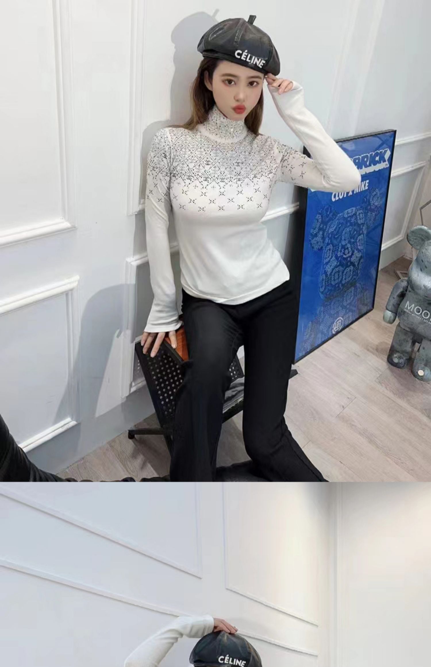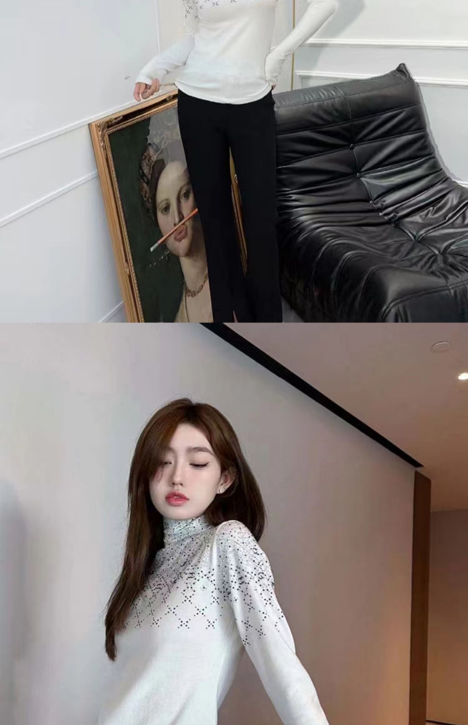 产品名称 | Product name: 秋冬新款时尚高领重工烫钻图案针织打底衫修身套头上衣女