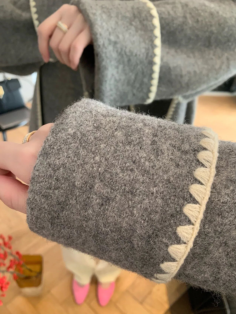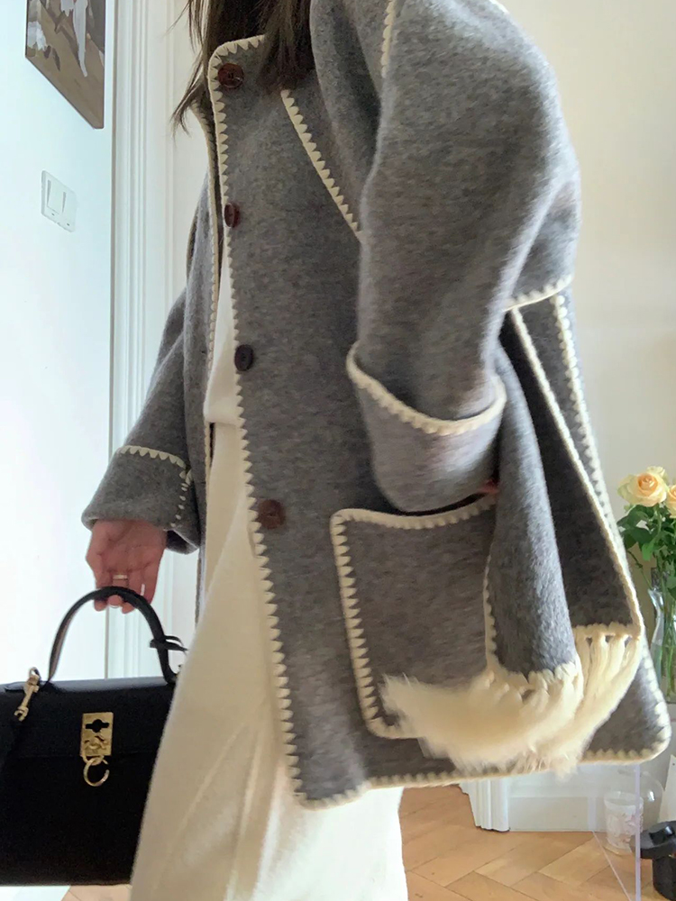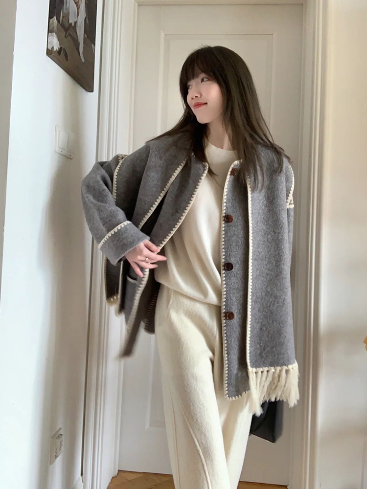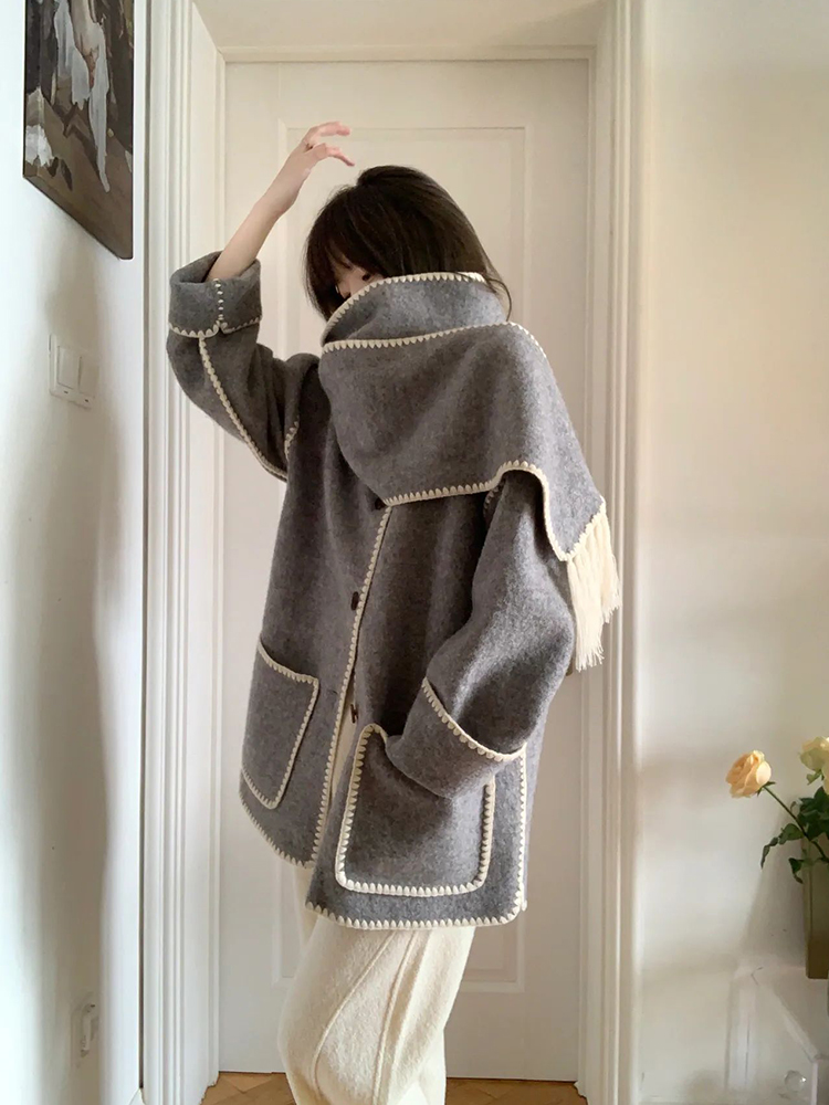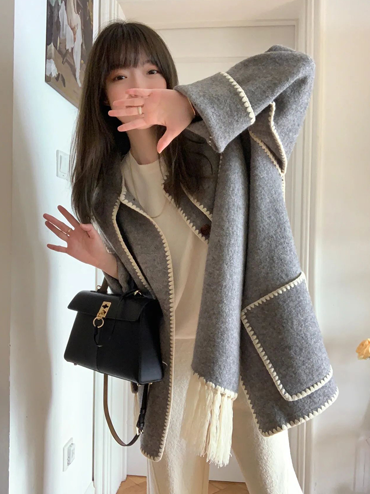 产品名称 | Product name: 夹克外套围巾两件套女2022秋冬新款时尚宽松单排扣气质长袖上衣潮