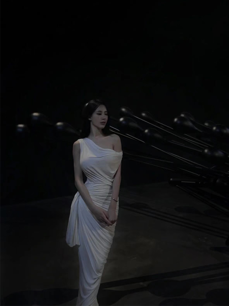 生日聚会名媛小礼服气质女神范褶皱修身显瘦高级感白色露肩连衣裙