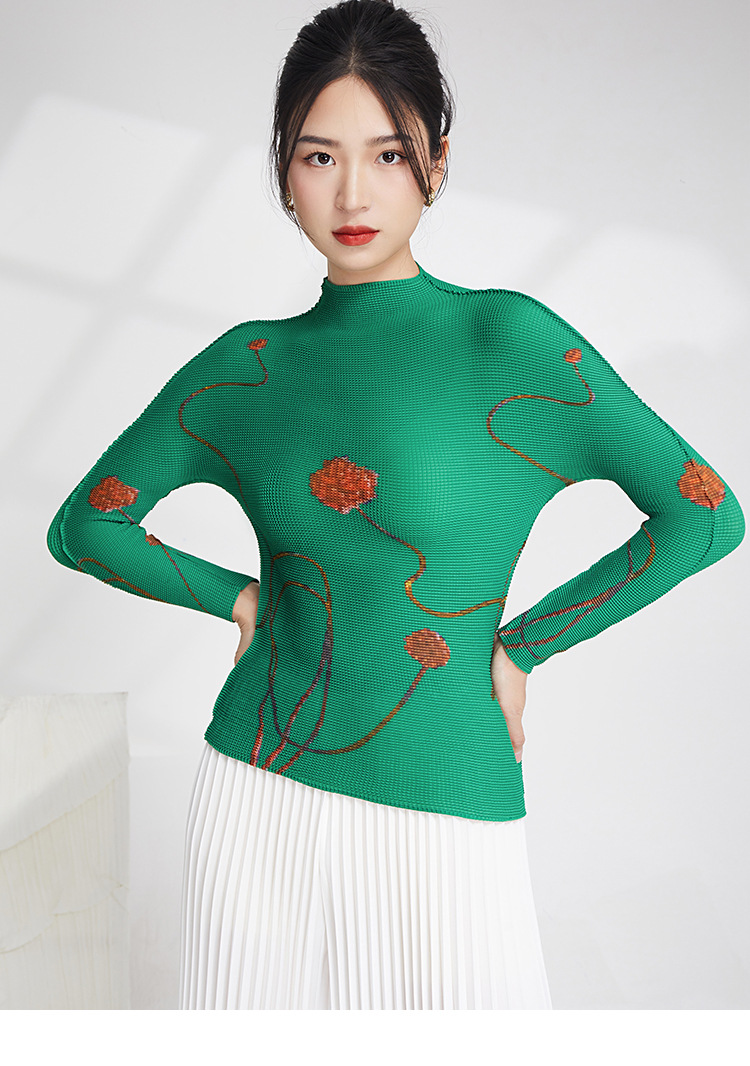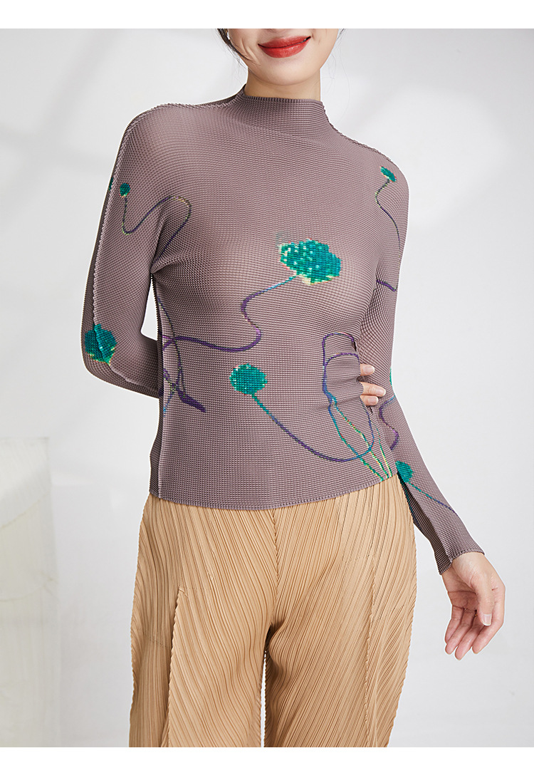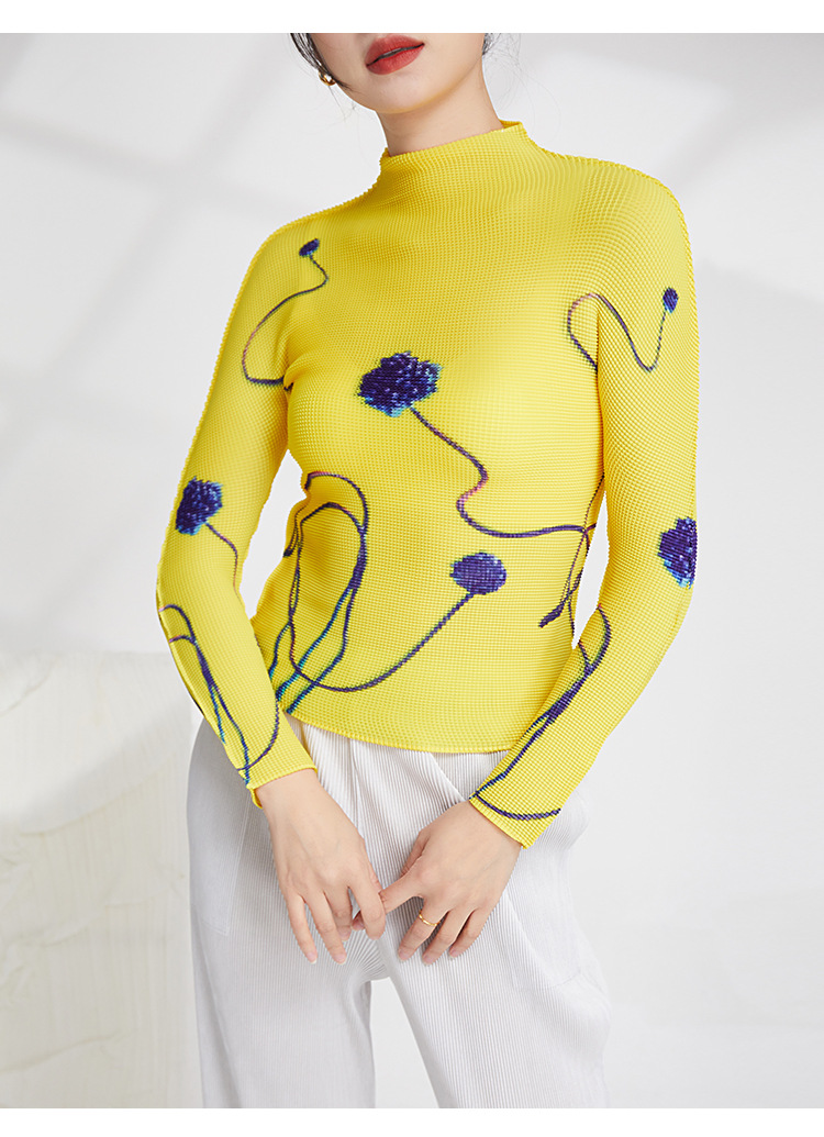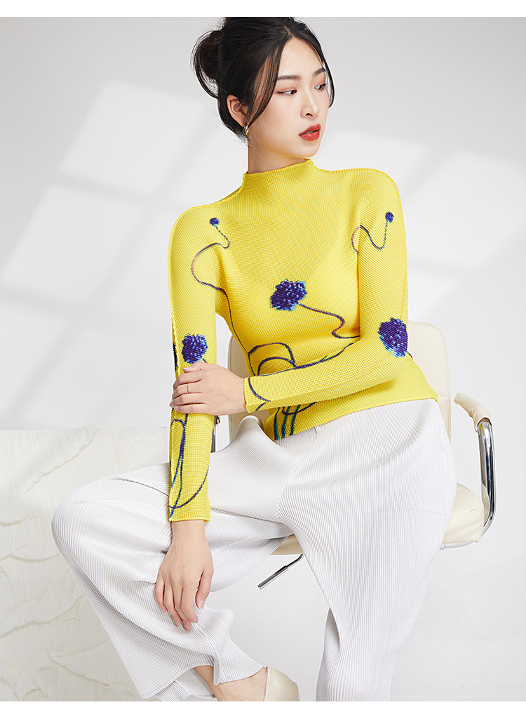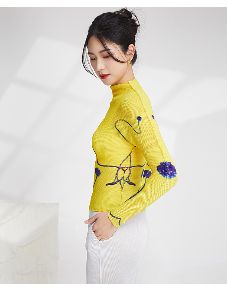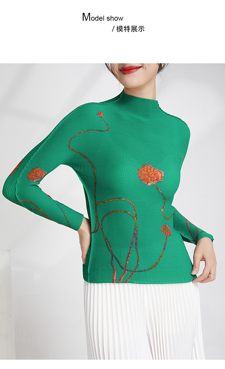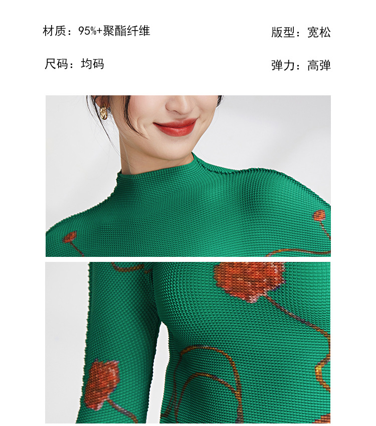 产品名称 | Product name: 23年春季新款三宅褶皱上衣气质高领印花修身显瘦ins风T恤