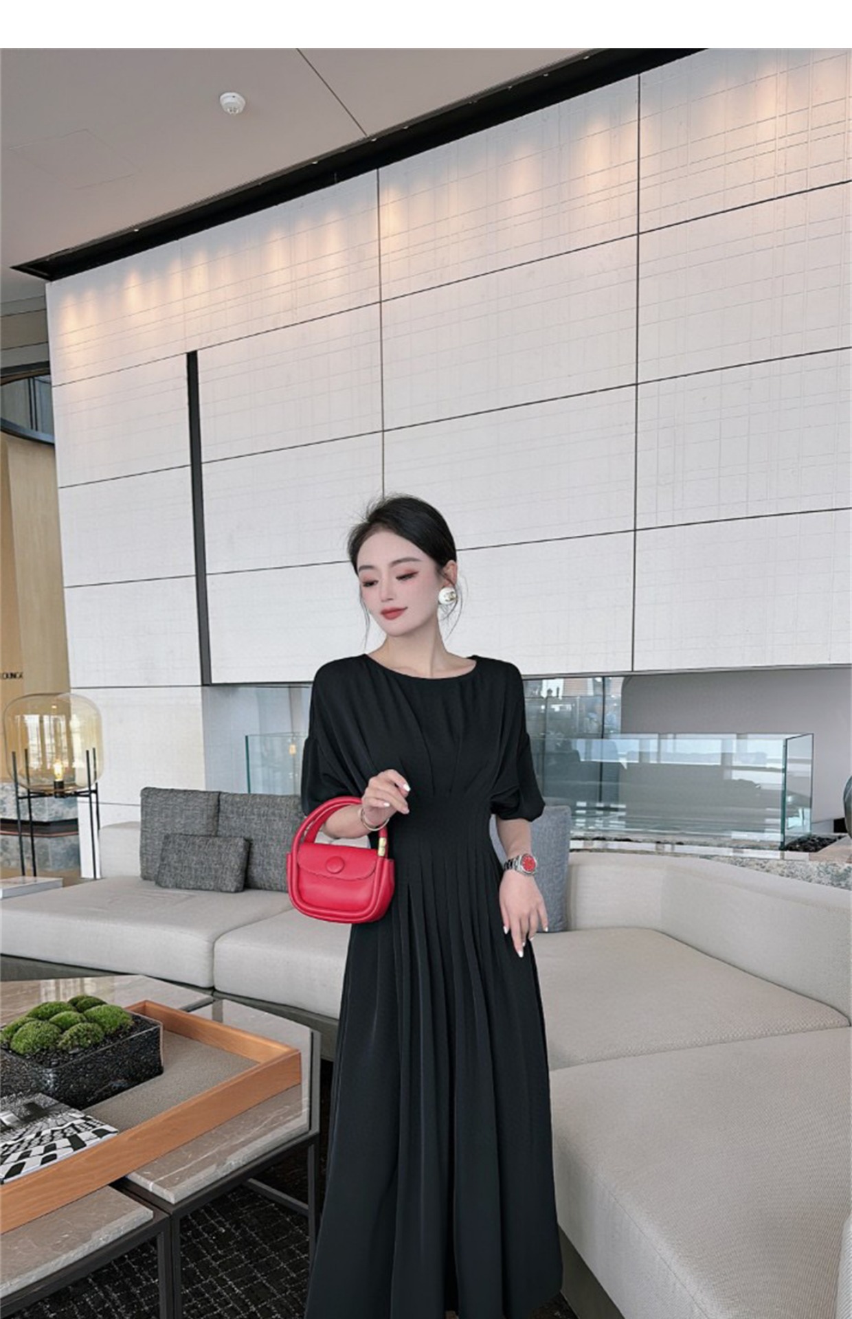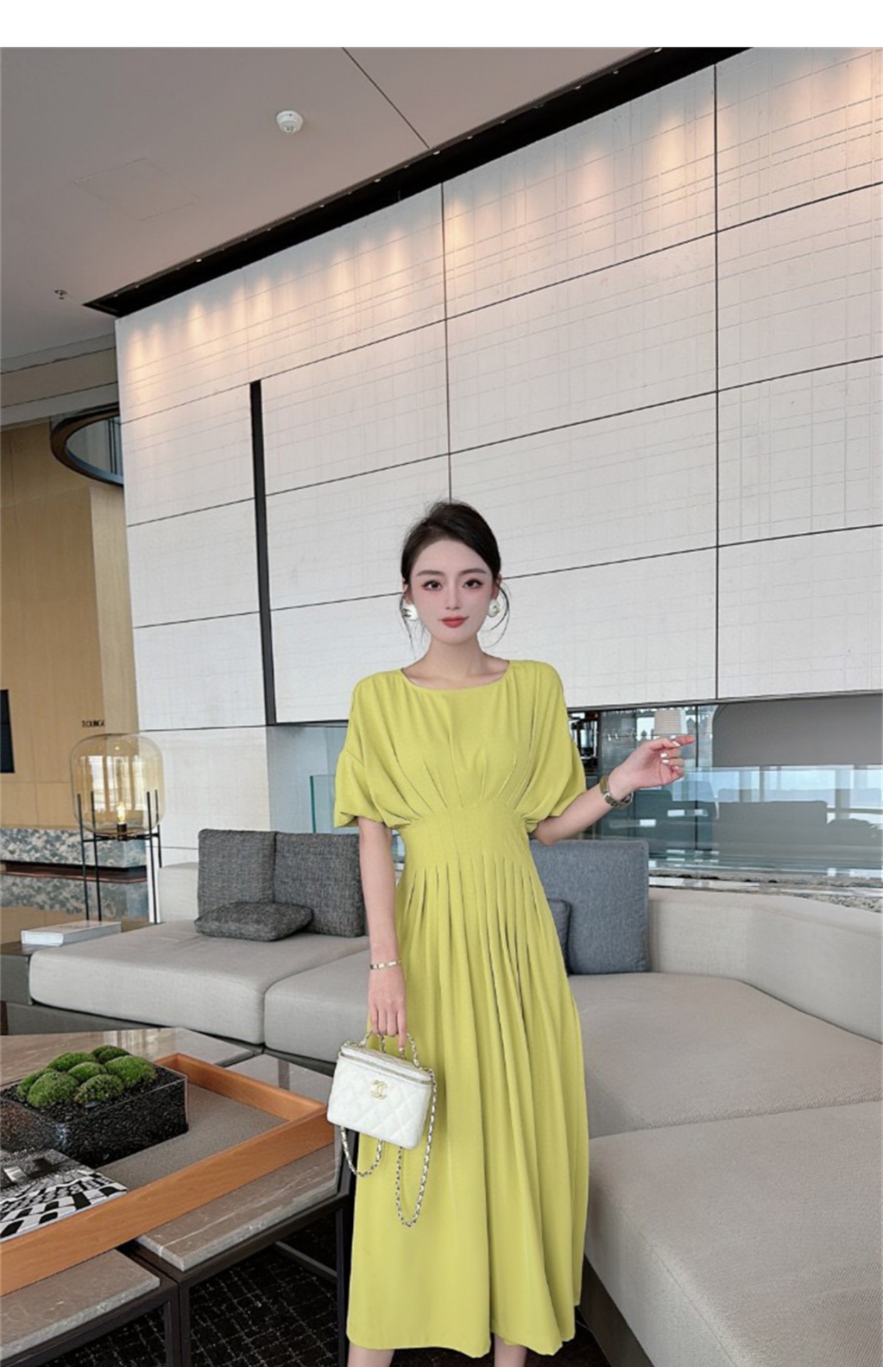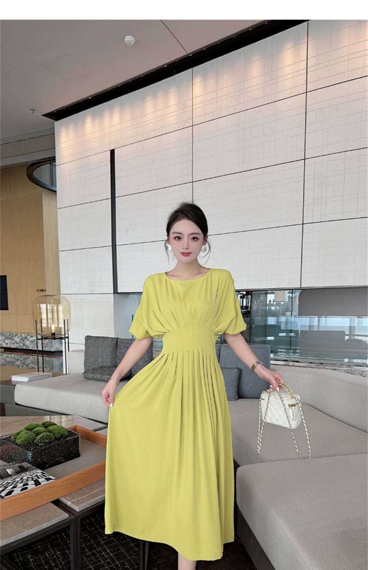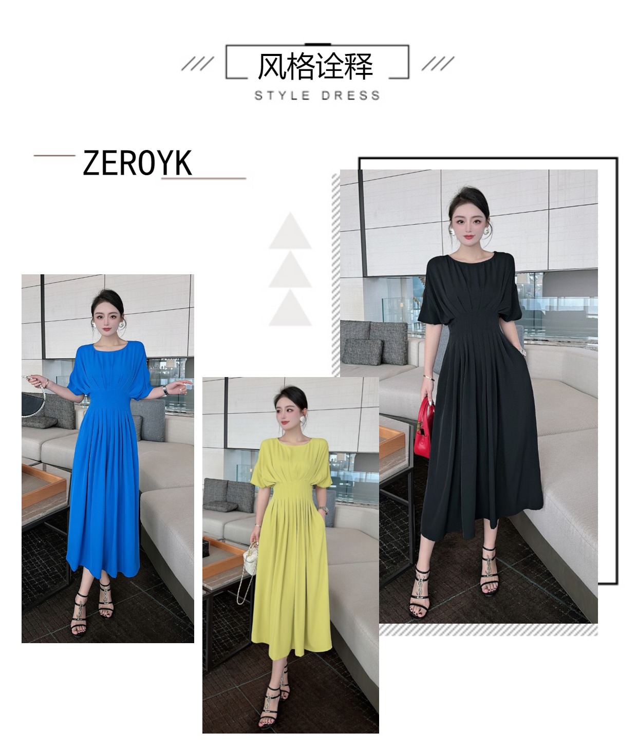产品名称 | Product name: 神范气质蝙蝠袖收腰褶皱大摆裙设计感慵懒风高腰连衣裙女