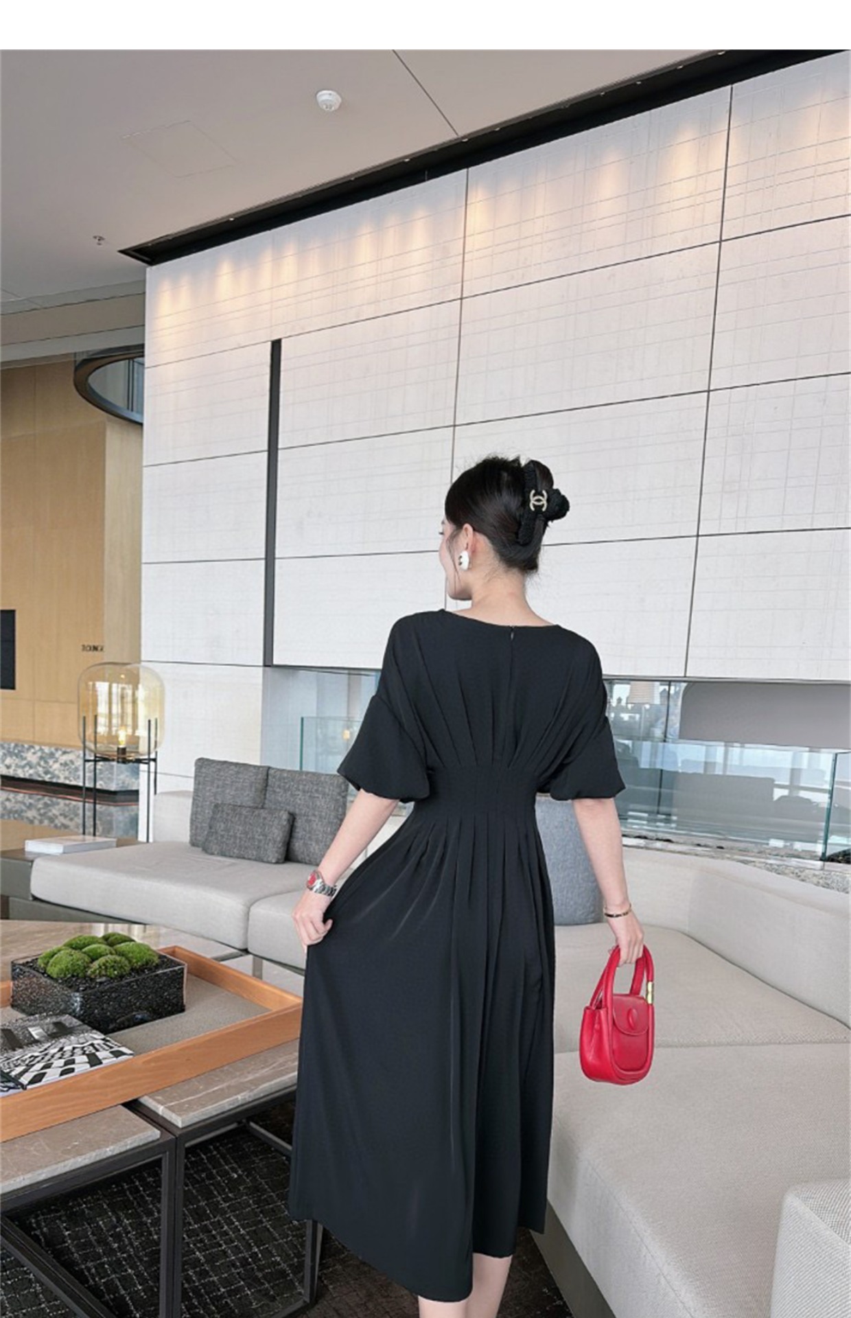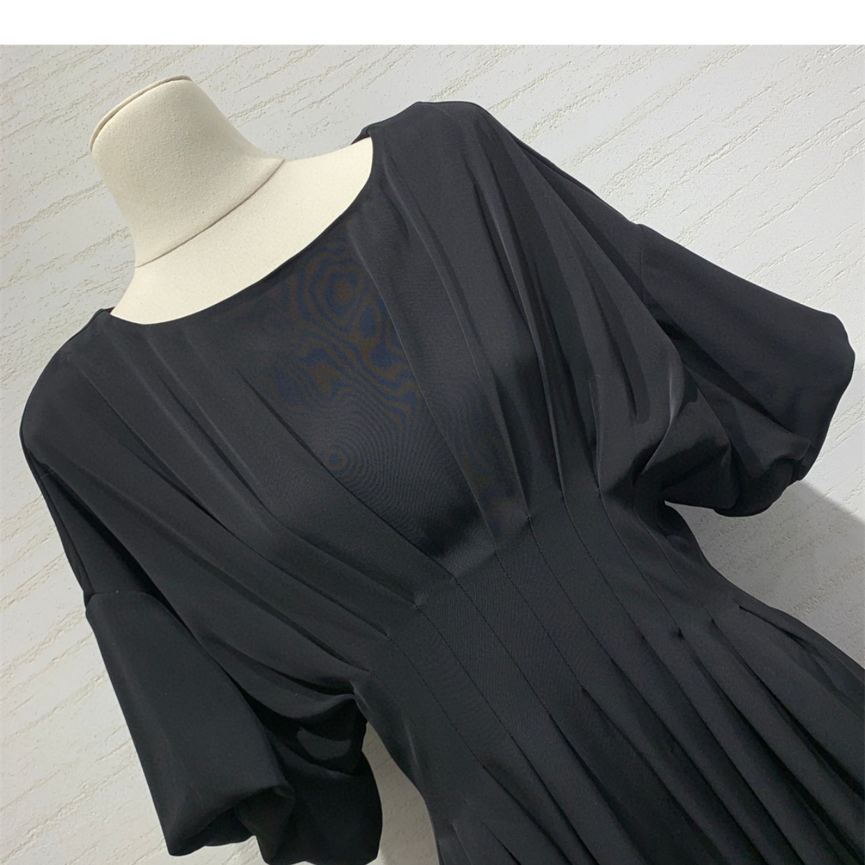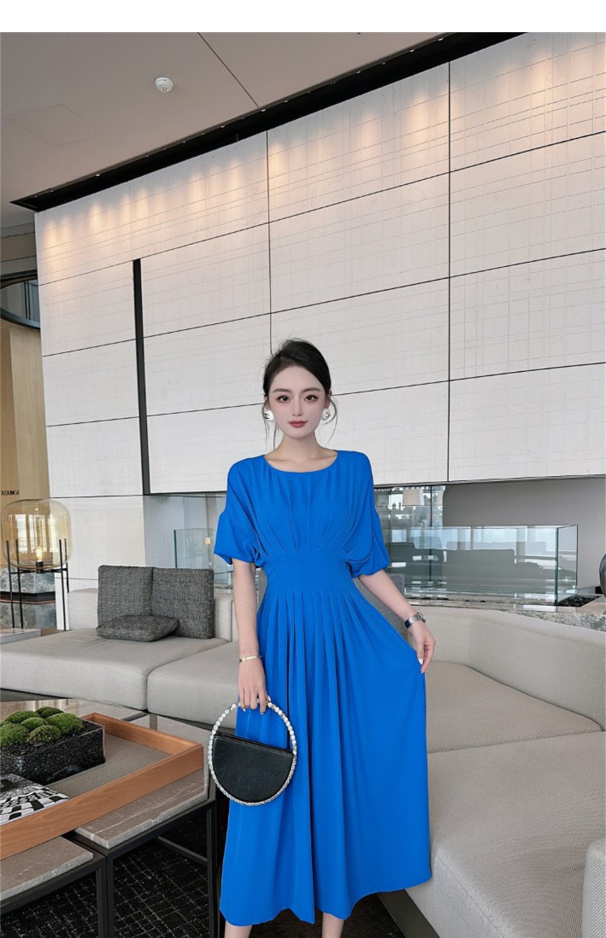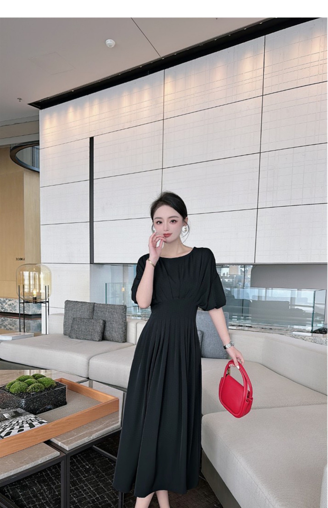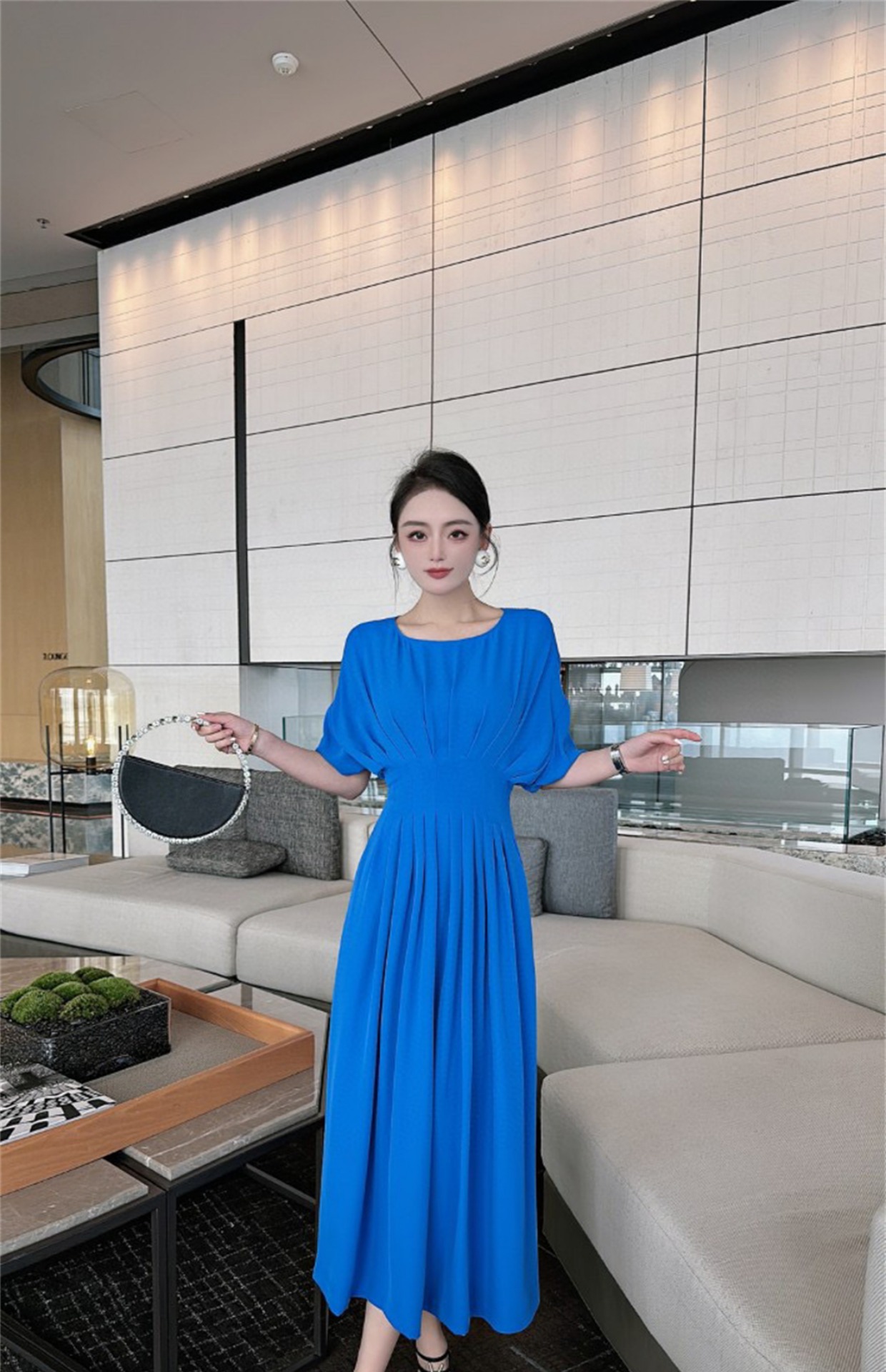 产品名称 | Product name: 神范气质蝙蝠袖收腰褶皱大摆裙设计感慵懒风高腰连衣裙女