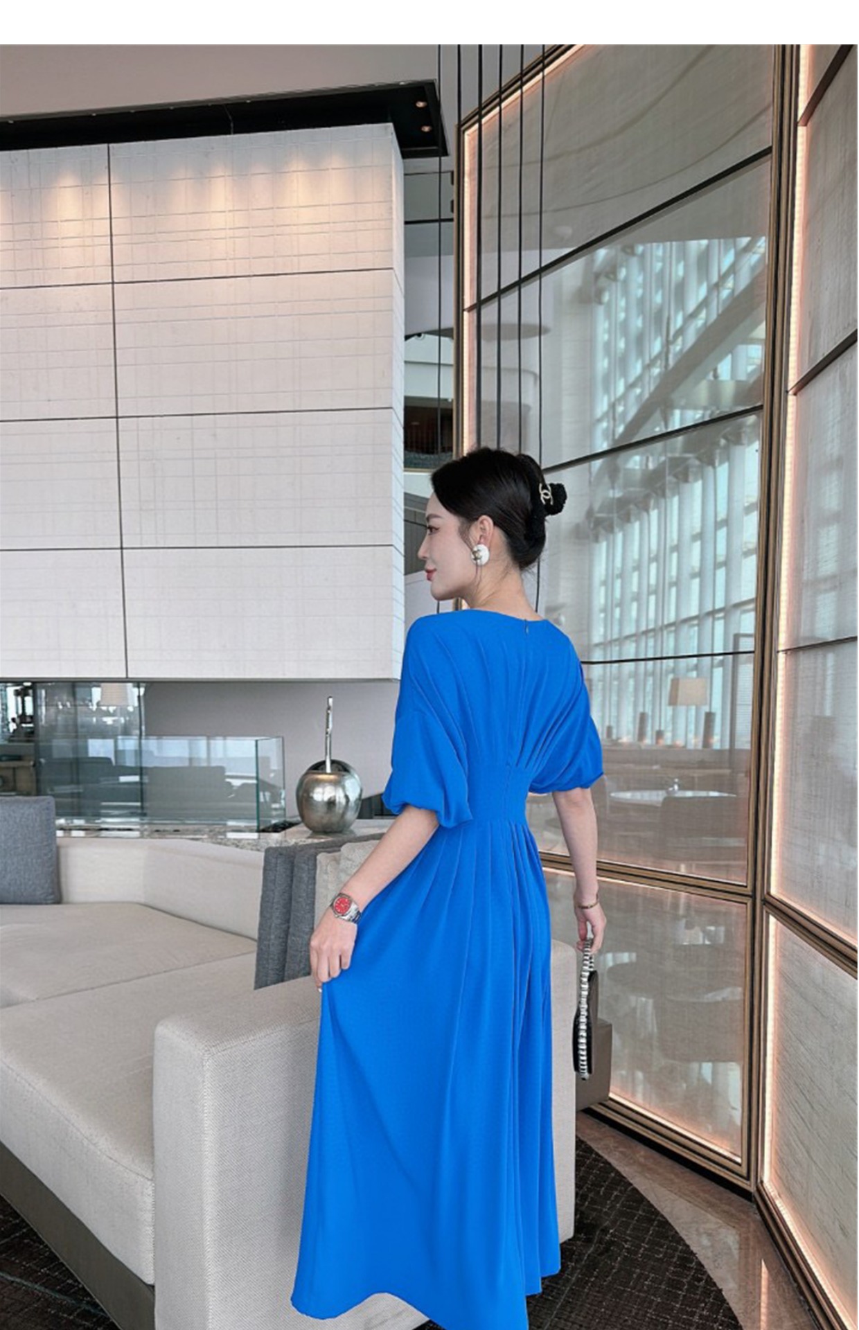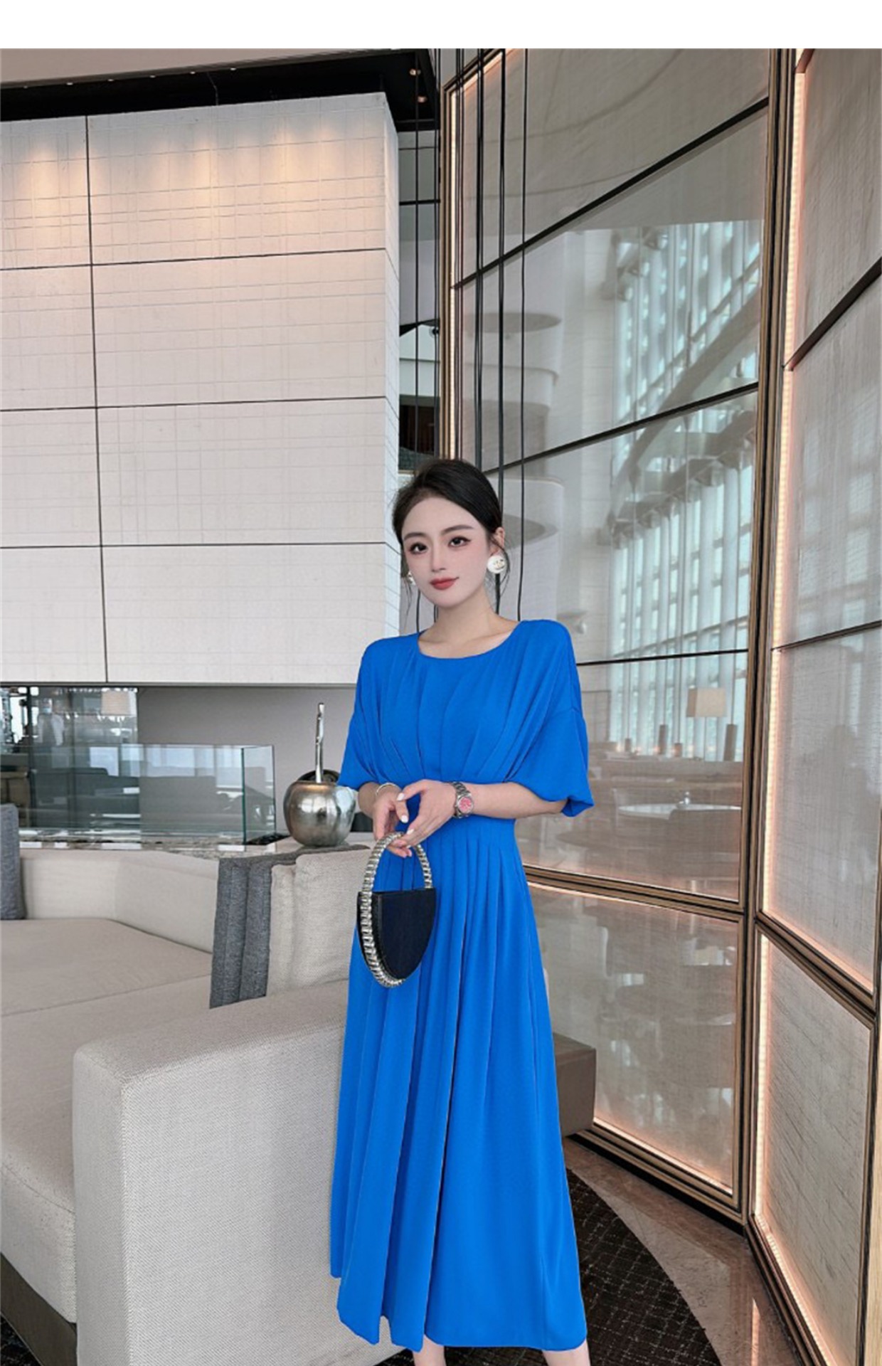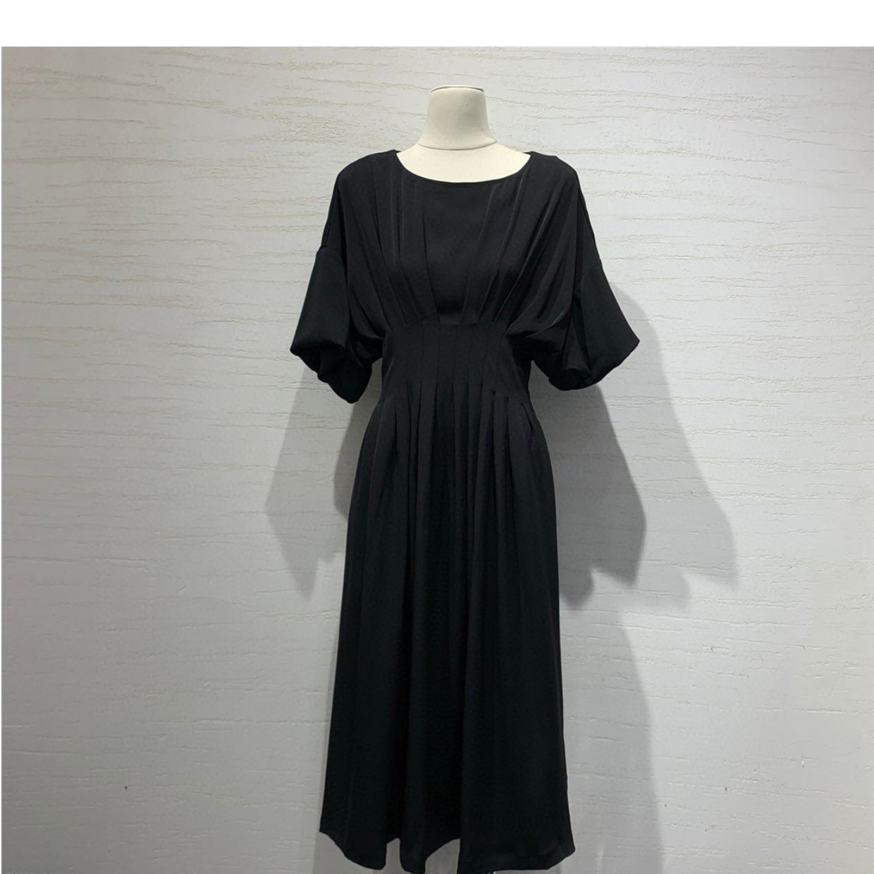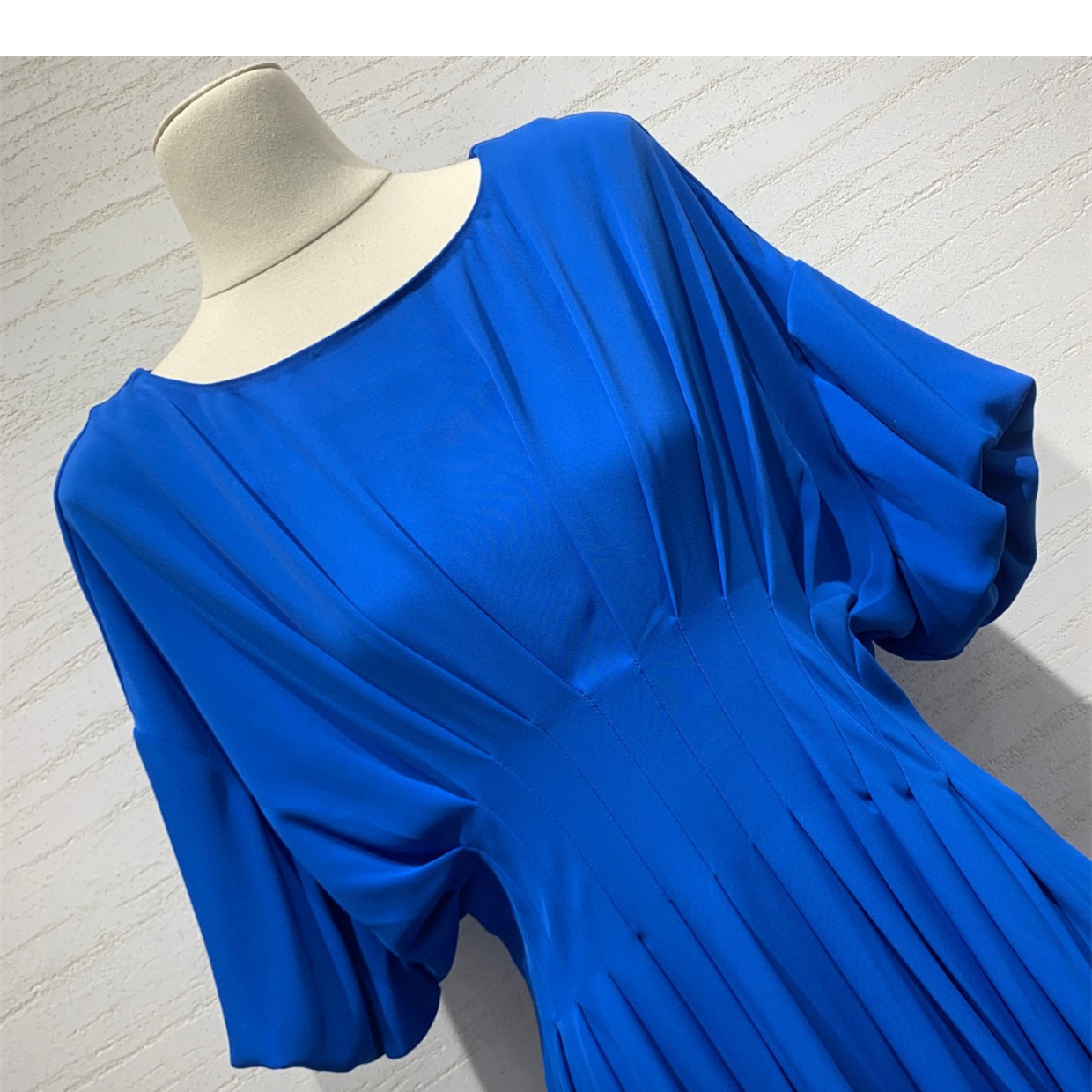 产品名称 | Product name: 神范气质蝙蝠袖收腰褶皱大摆裙设计感慵懒风高腰连衣裙女