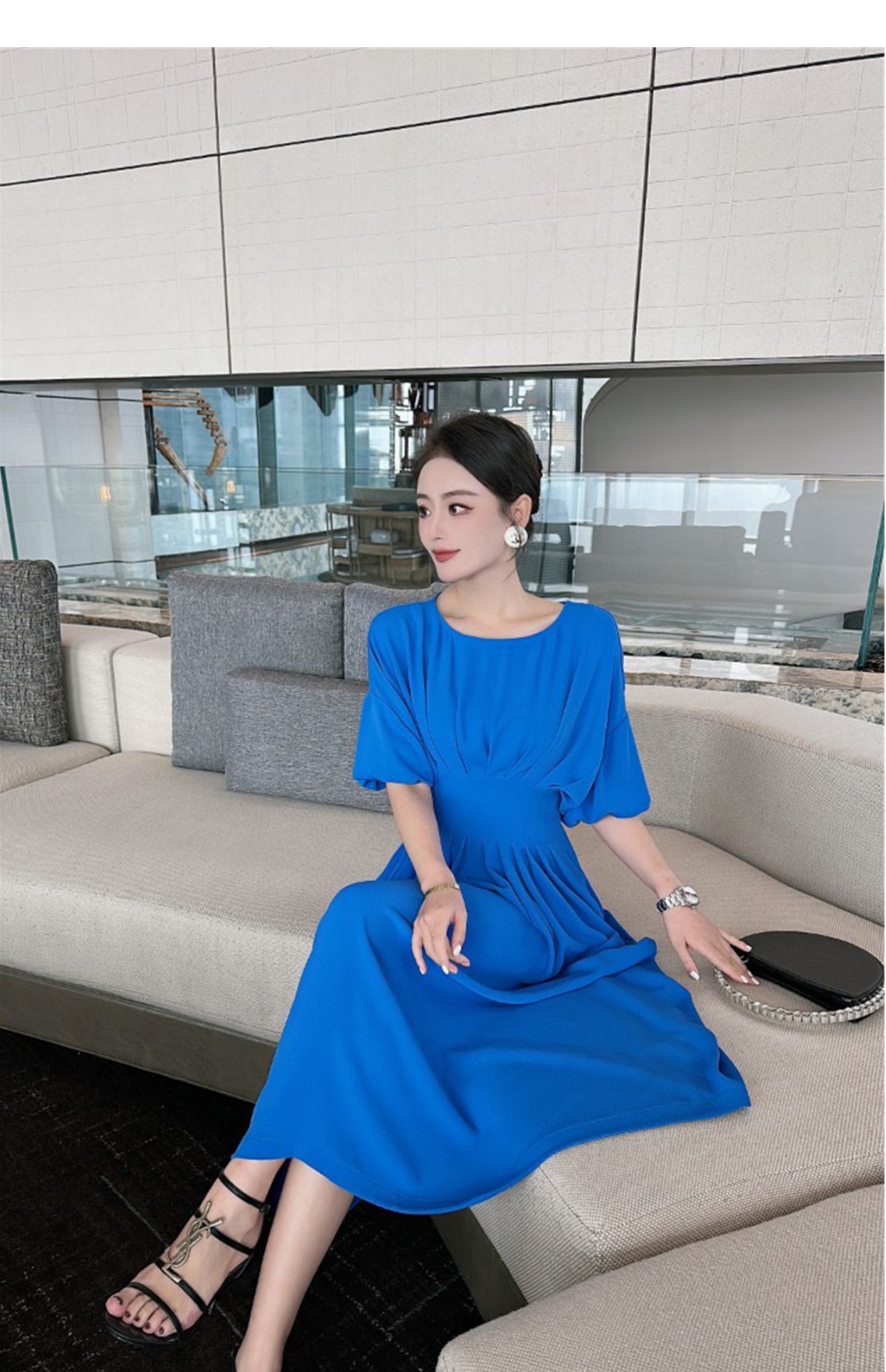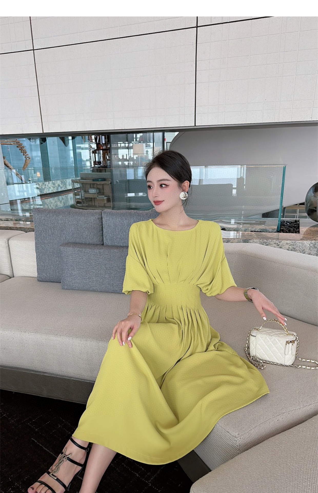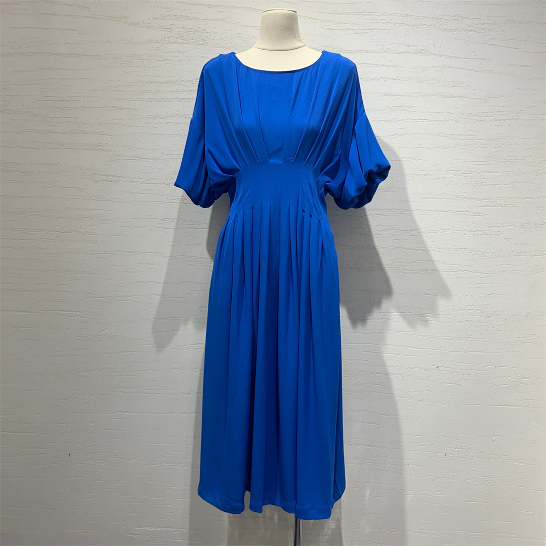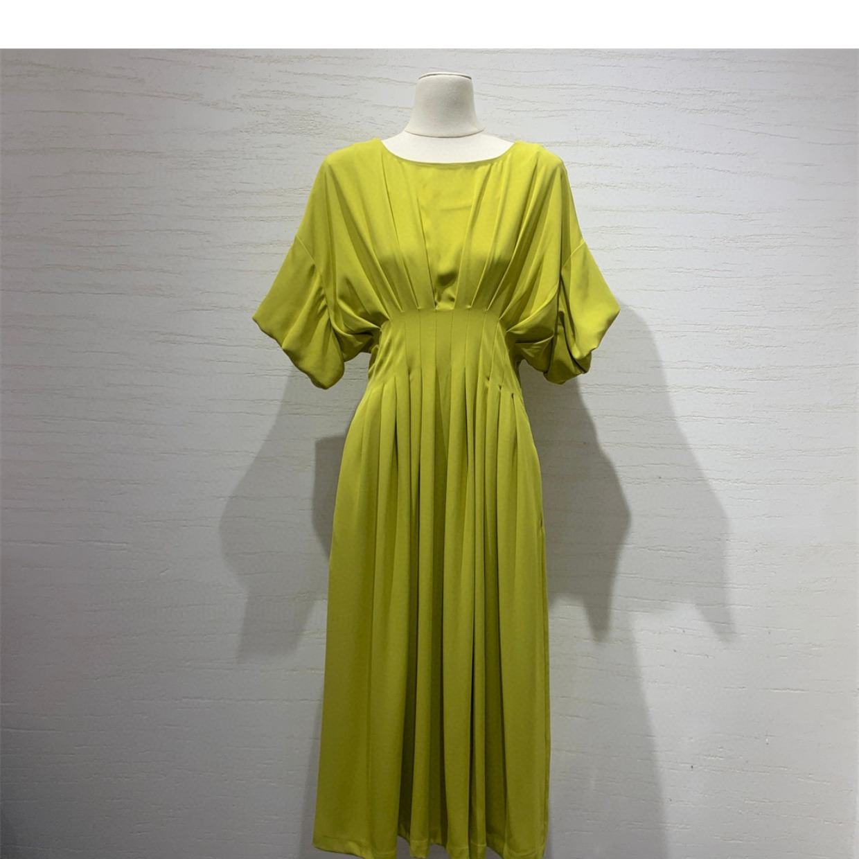 神范气质蝙蝠袖收腰褶皱大摆裙设计感慵懒风高腰连衣裙女