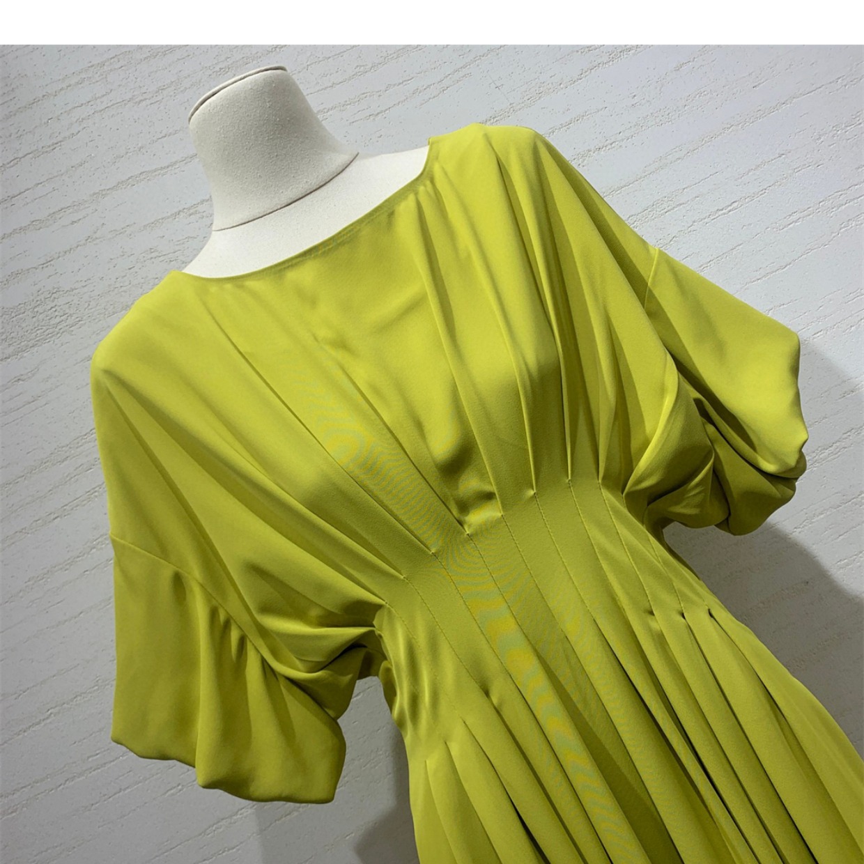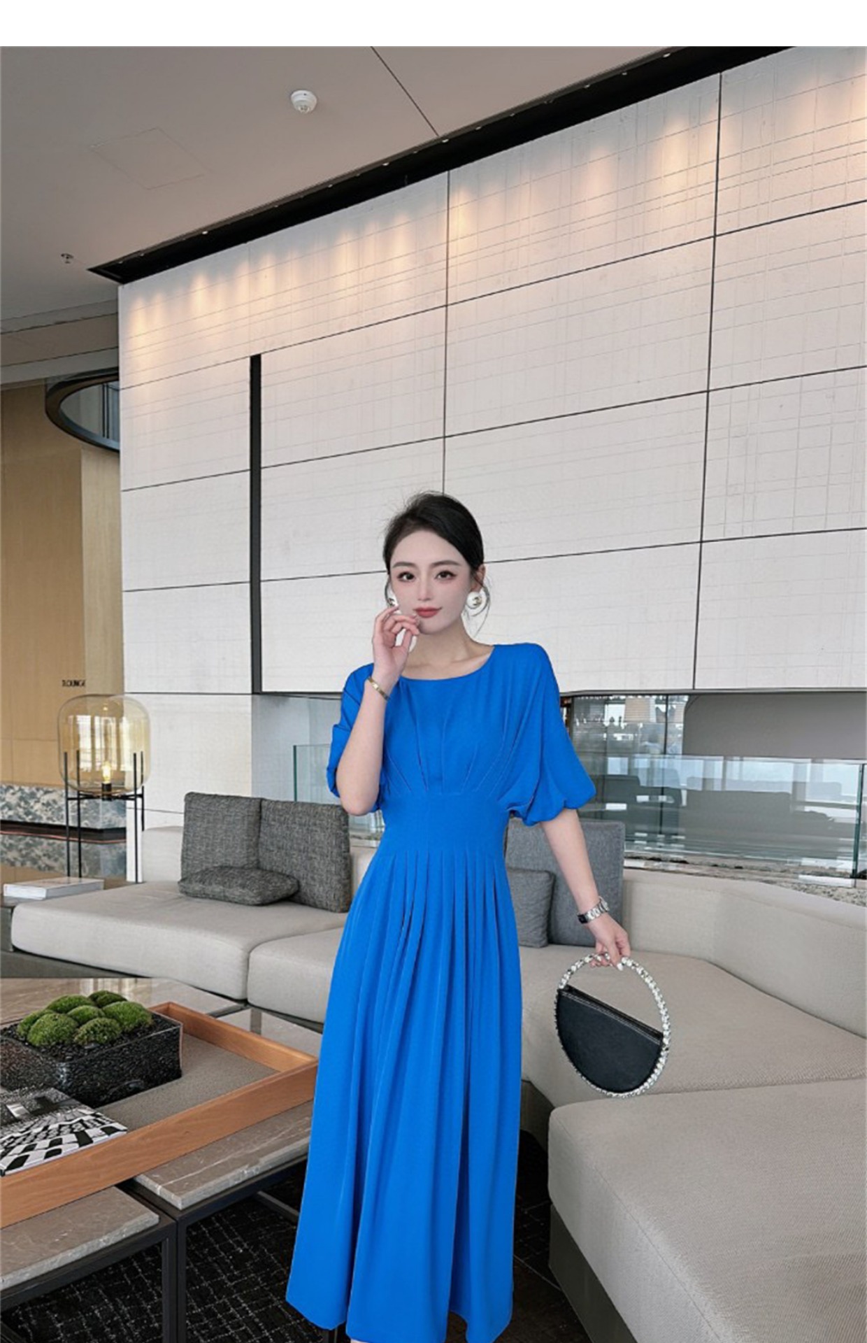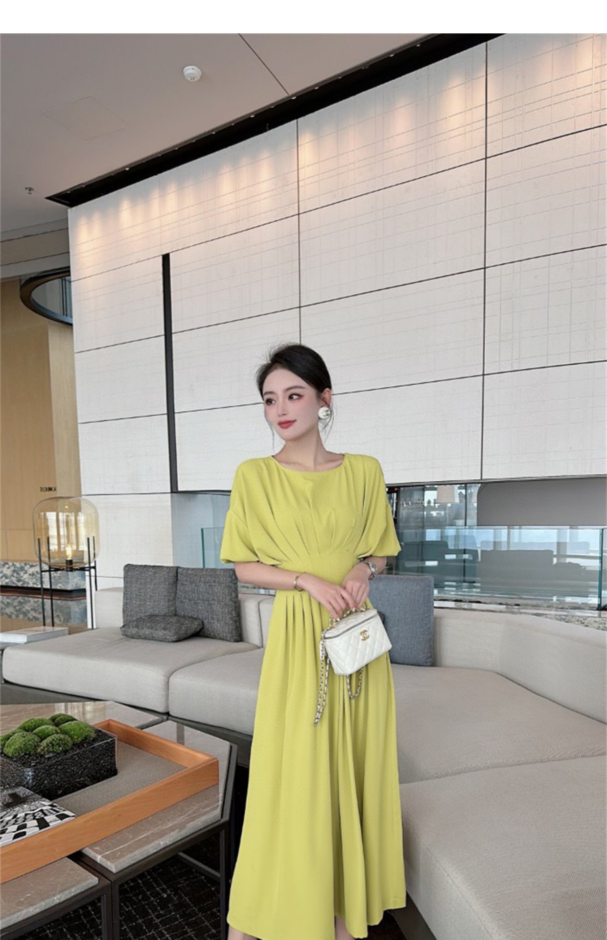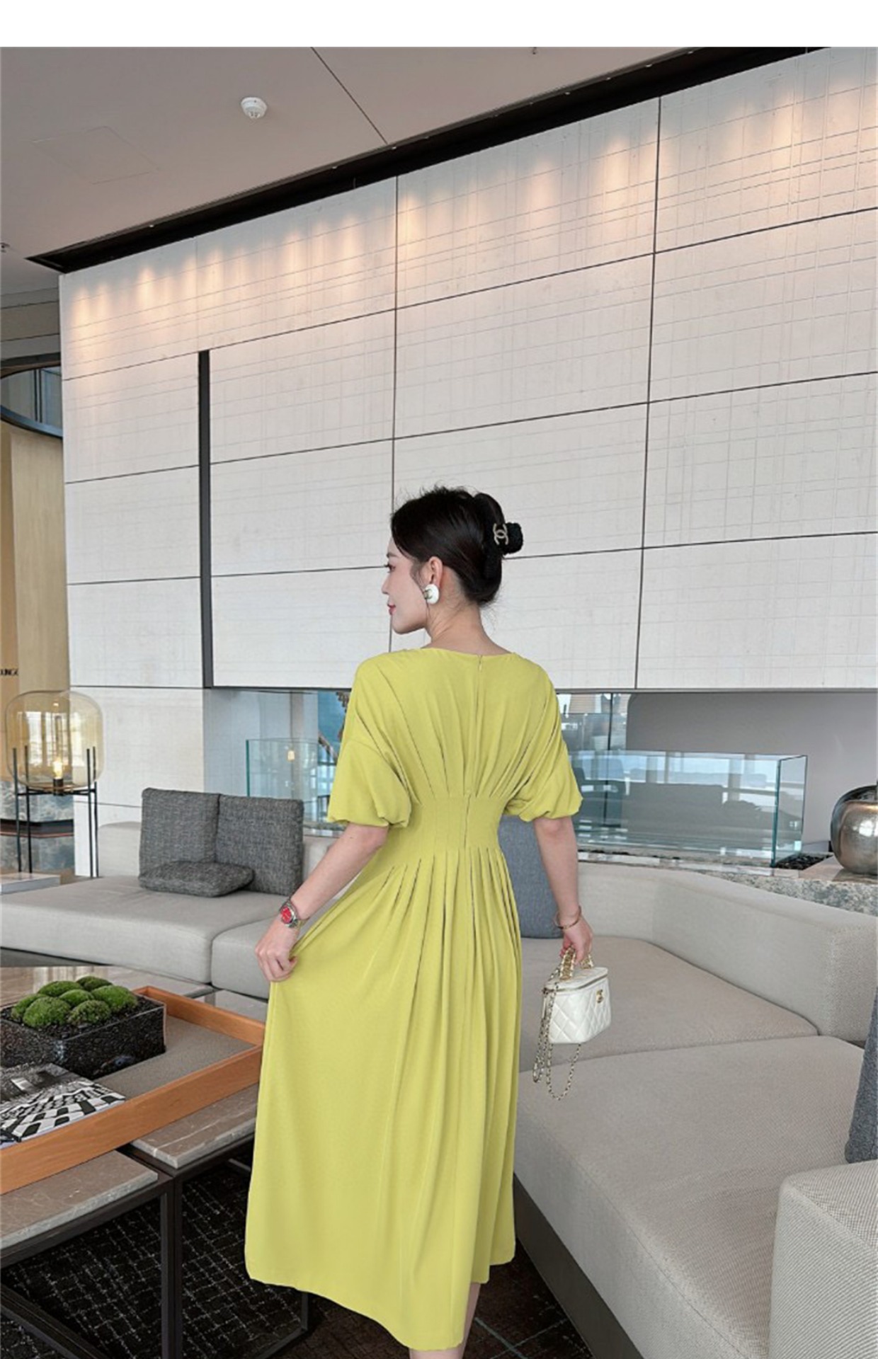 神范气质蝙蝠袖收腰褶皱大摆裙设计感慵懒风高腰连衣裙女