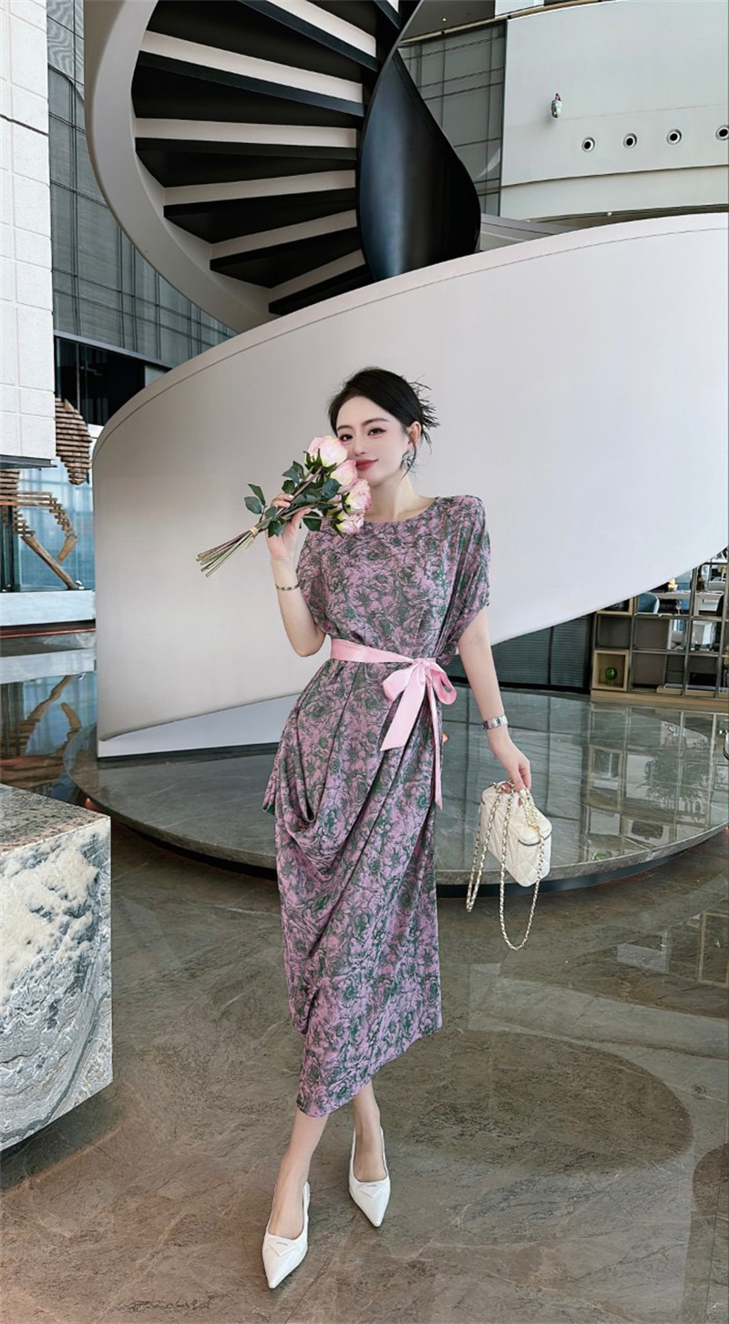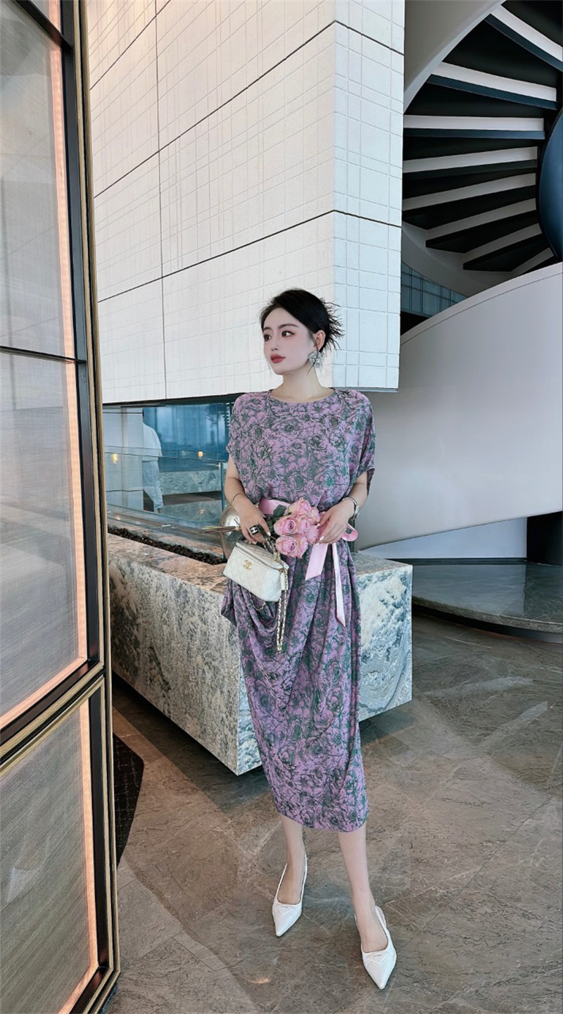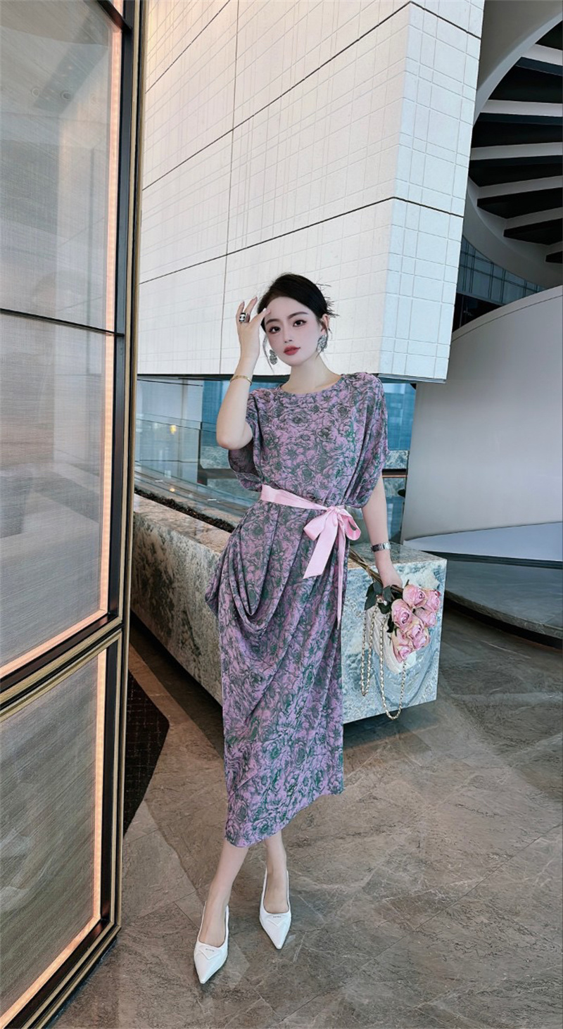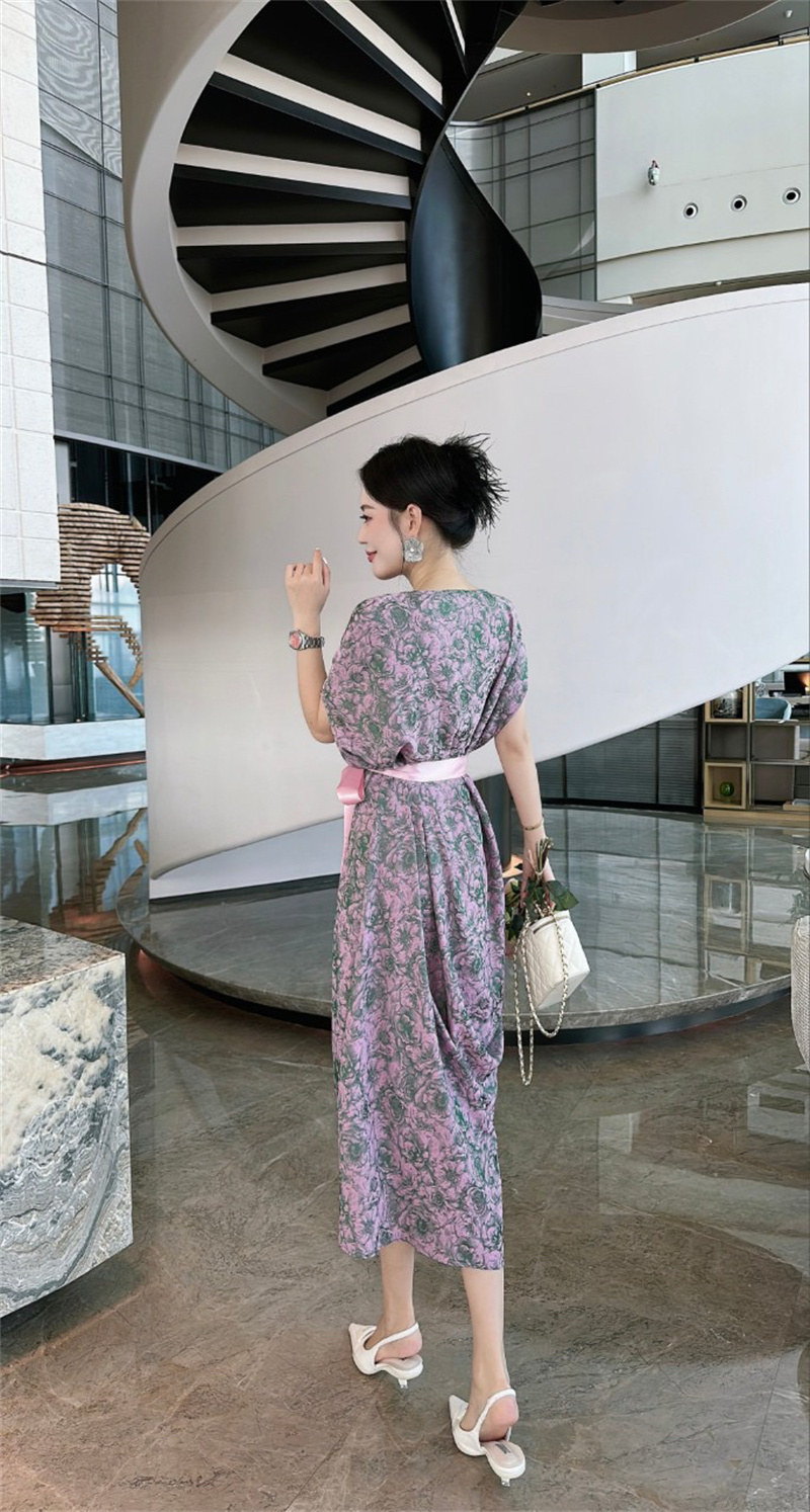 产品名称 | Product name: 2023高端定制设计款德国进口水印真丝印花连衣裙女