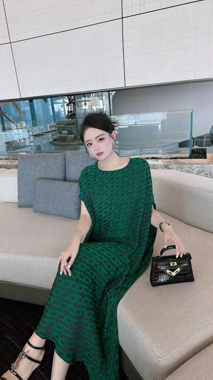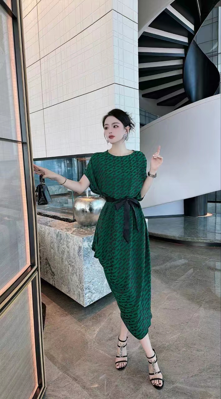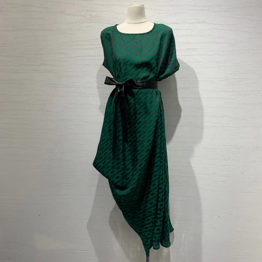 2023高端定制设计款德国进口水印真丝印花连衣裙女