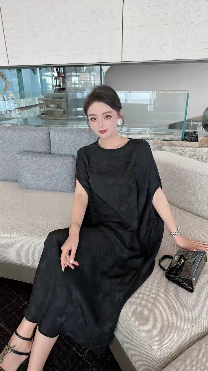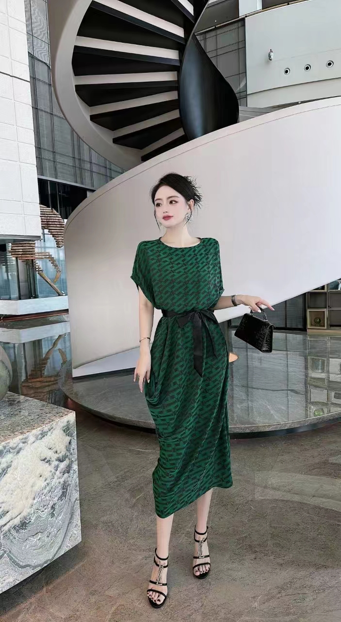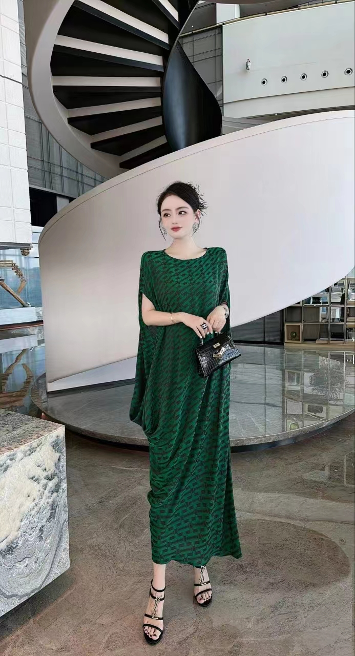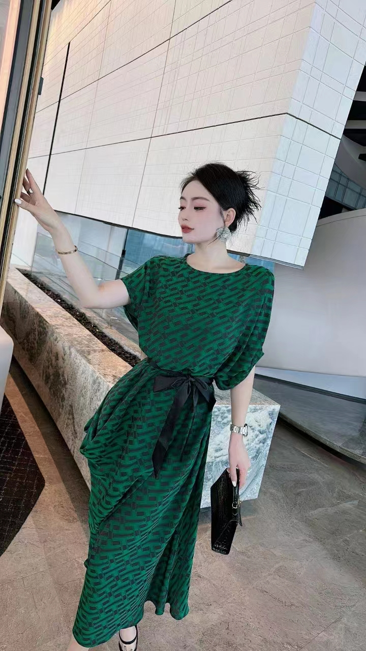 2023高端定制设计款德国进口水印真丝印花连衣裙女
