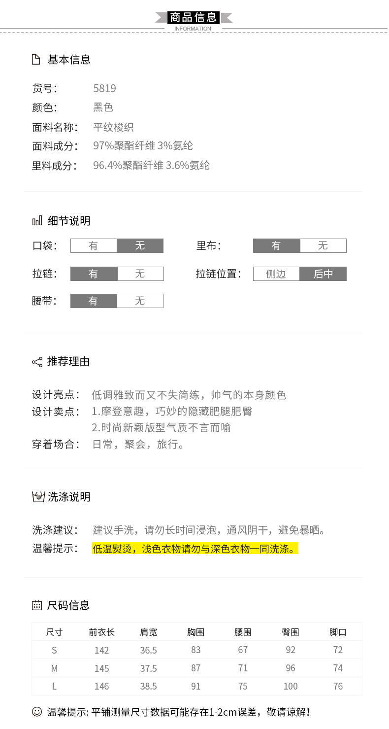 fabric: 97% polyester 3%spandex
