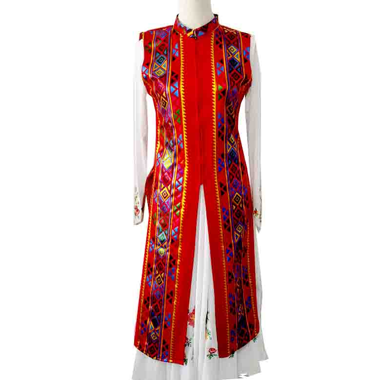 产品名称 | Product name: 新疆舞蹈舞台表演练功麦西来普表演服装长马甲袷袢新款维吾尔族