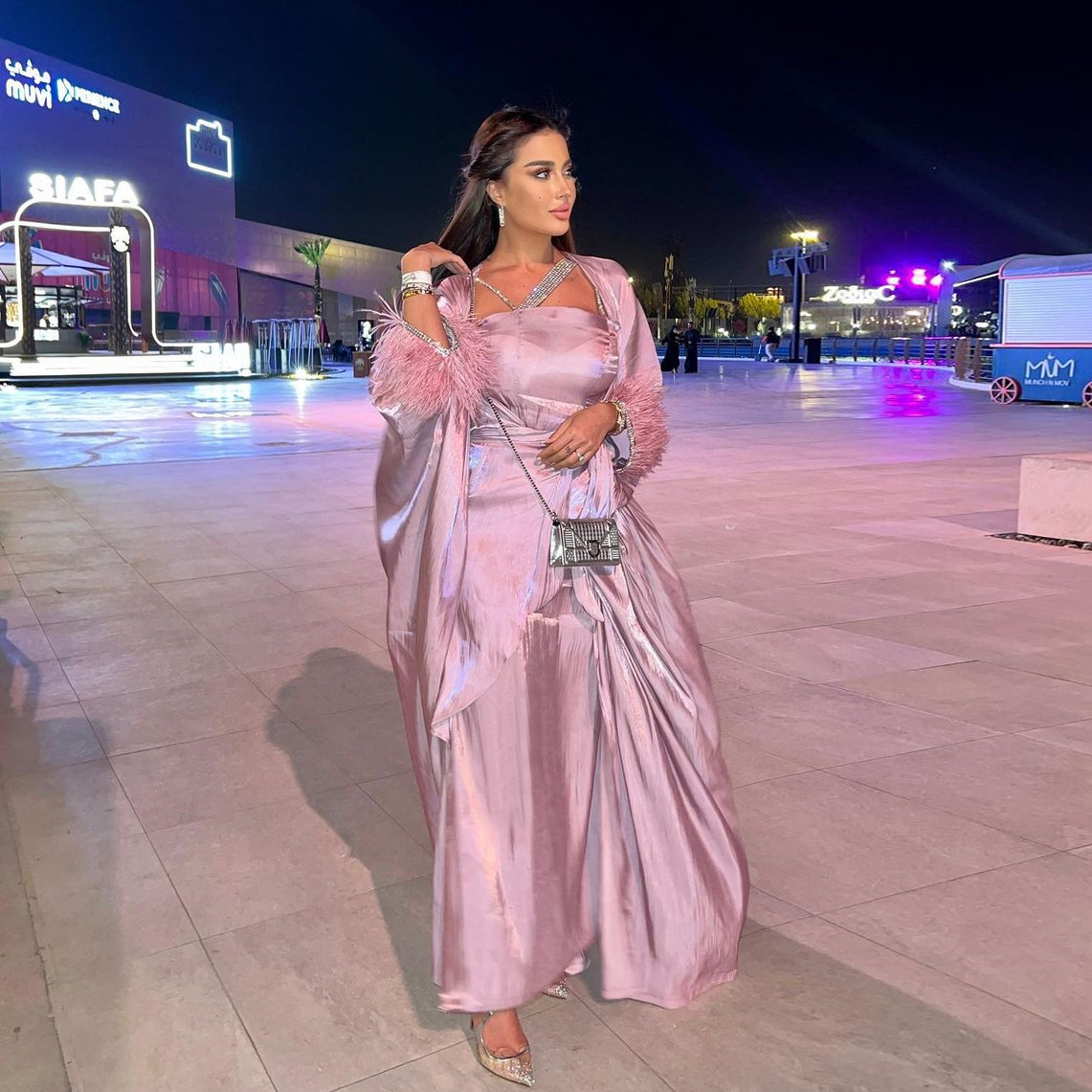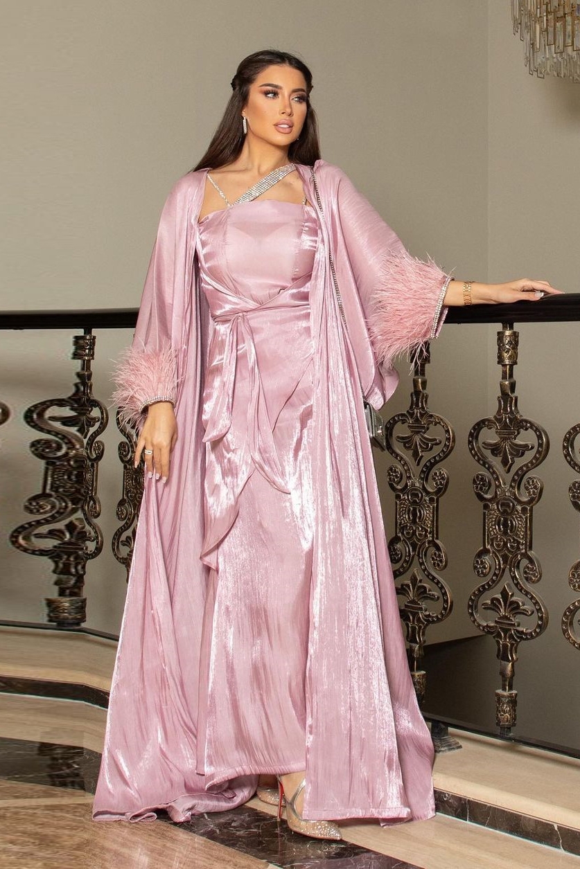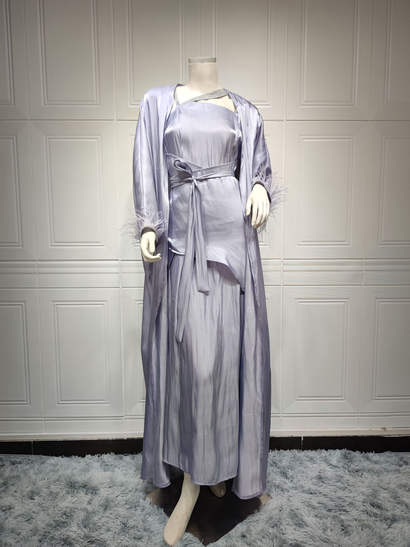 产品名称 | Product name: 中东穆斯迪拜女装羽毛烫钻三件套连衣裙Women Musliam Eid Dubai