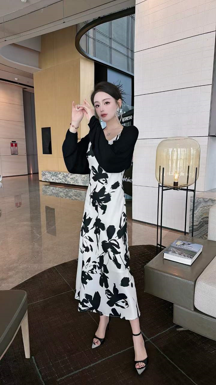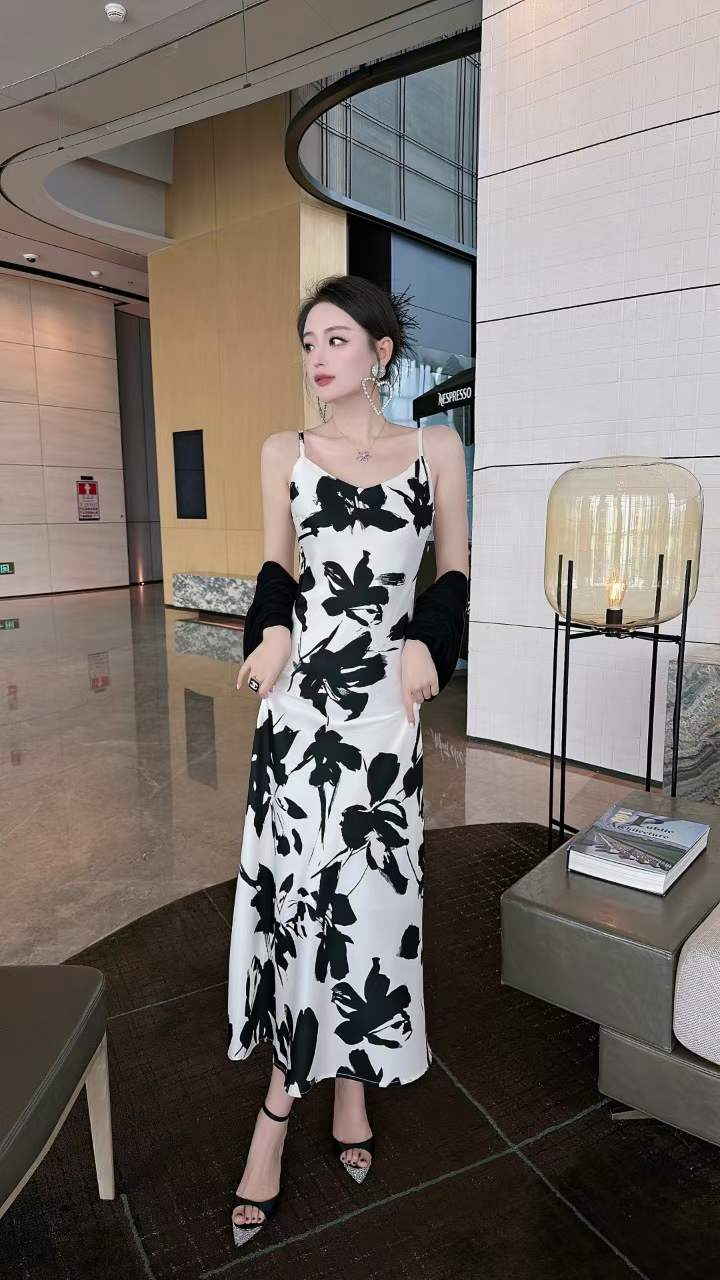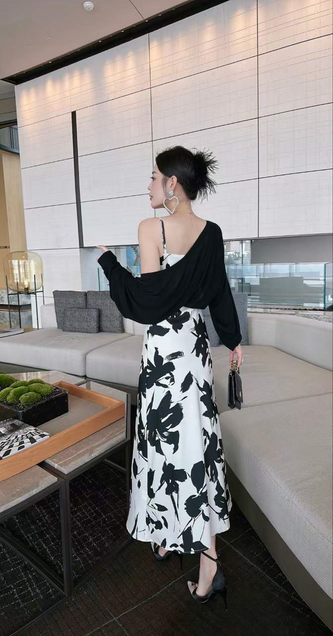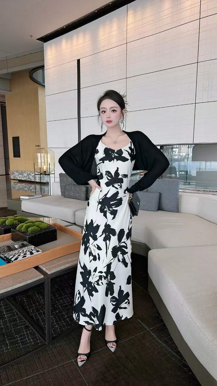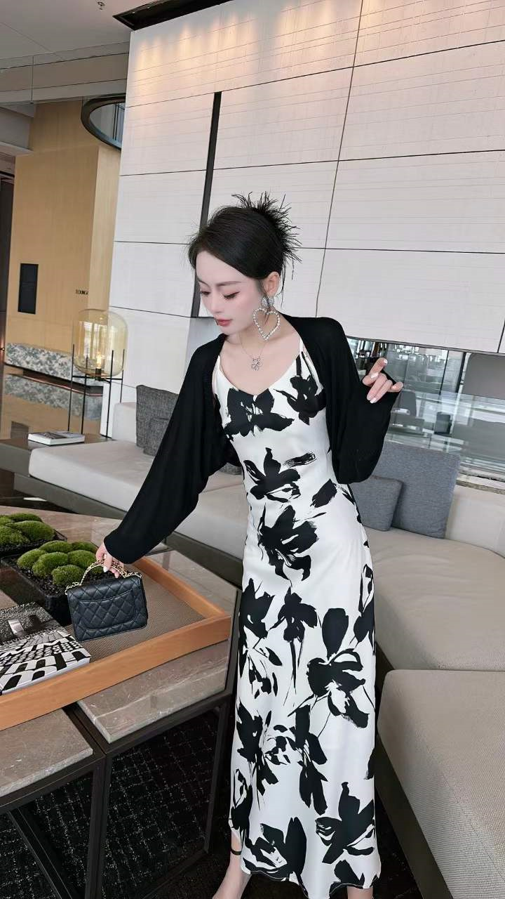 产品名称 | Product name: 百搭针织披肩小外套+醋酸麻印花吊带连衣裙2pcs