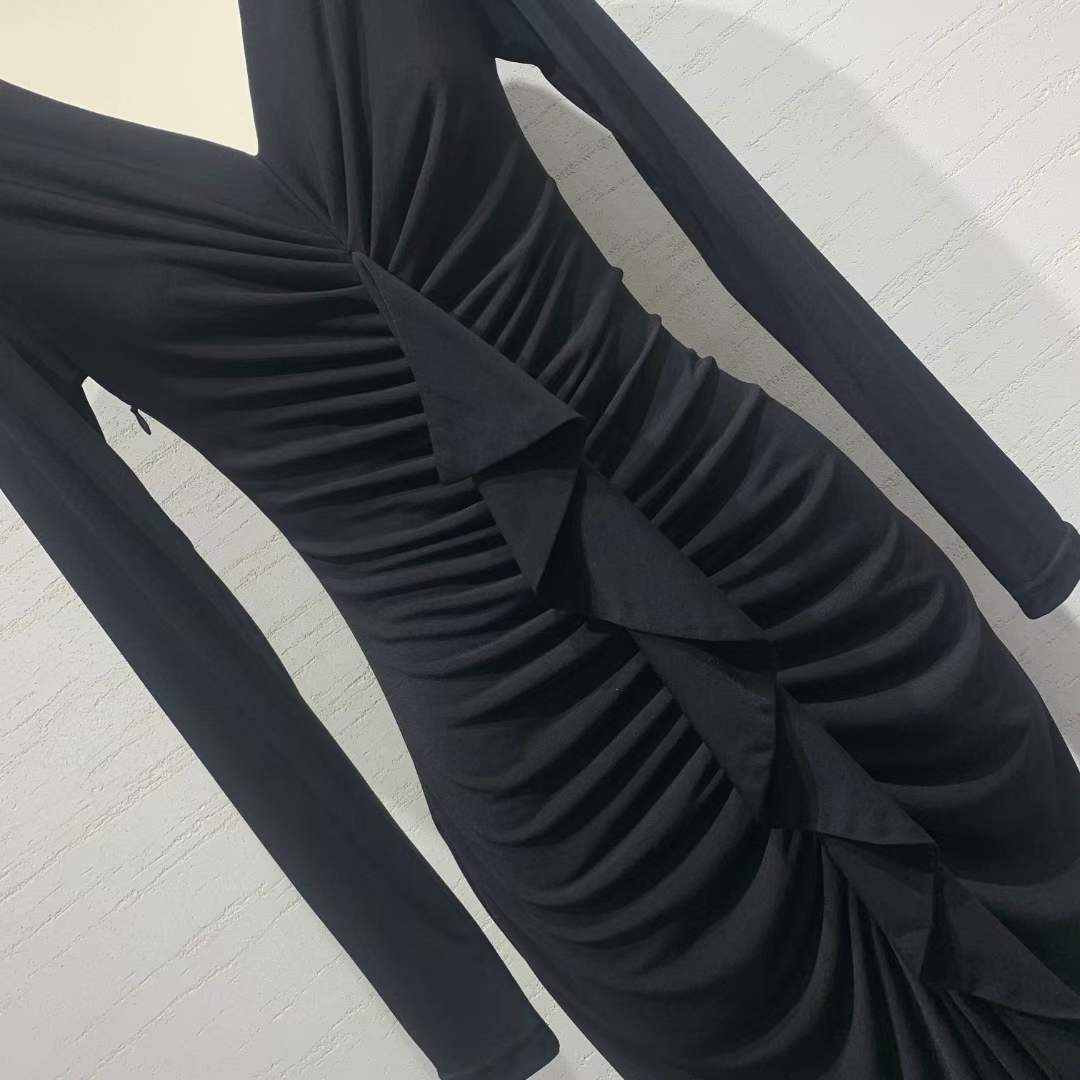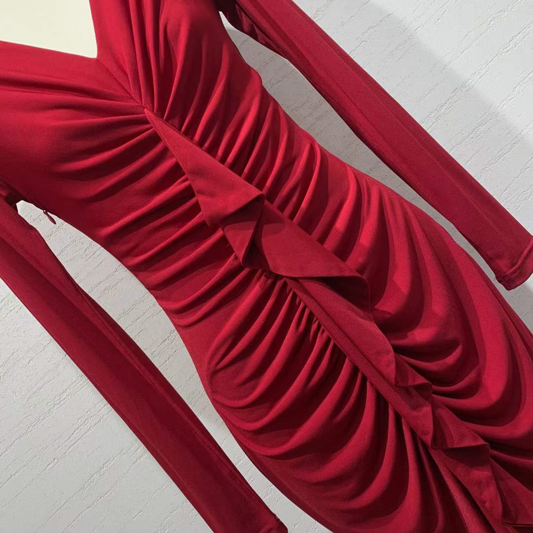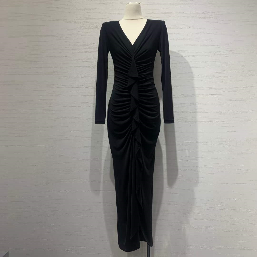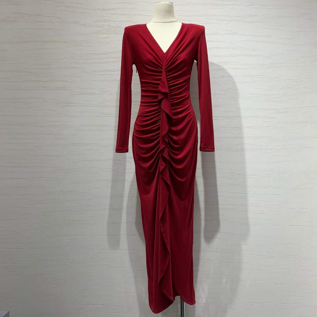 产品名称 | Product name: 高端欧洲高定水晶麻紗气质显瘦抽褶荷叶边鱼尾连衣裙长款礼服裙