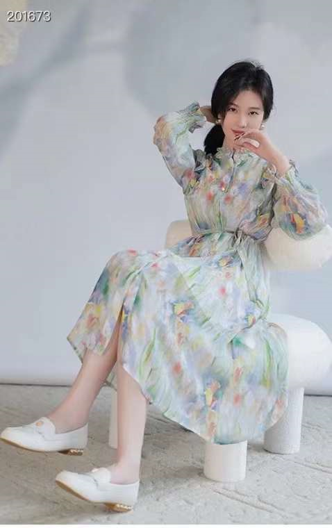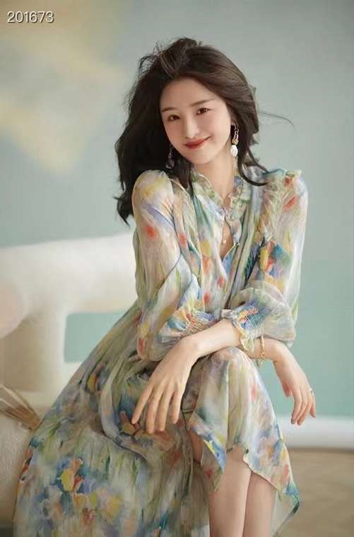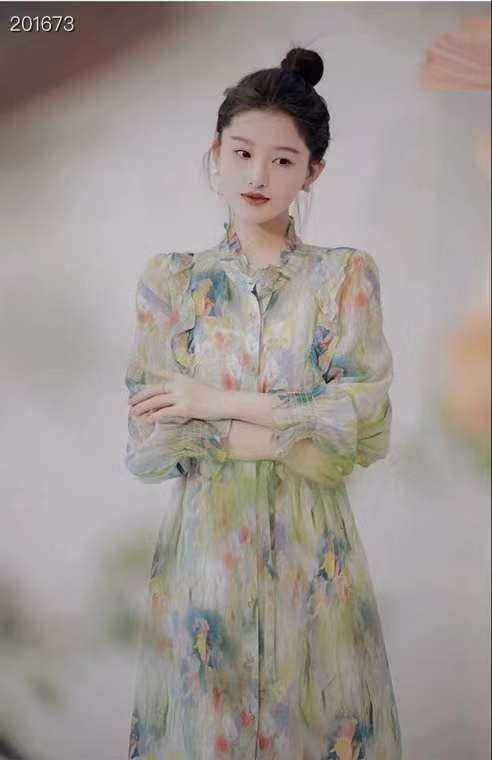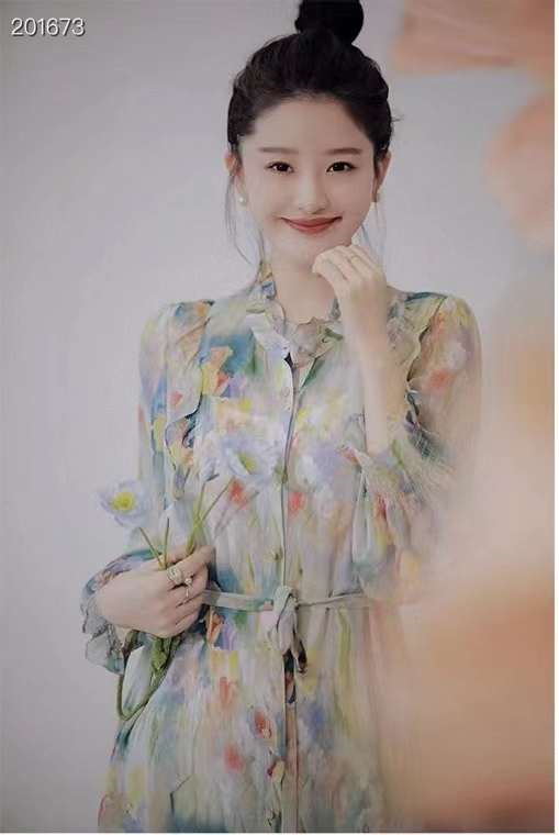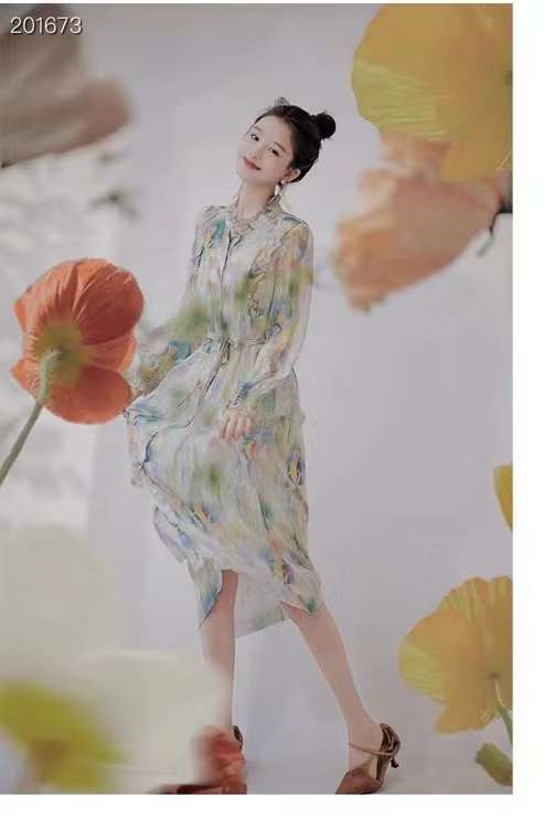 产品名称 | Product name: 花开富贵印花系列|宽松时尚衬衫裙2023新款真丝混纺连衣裙