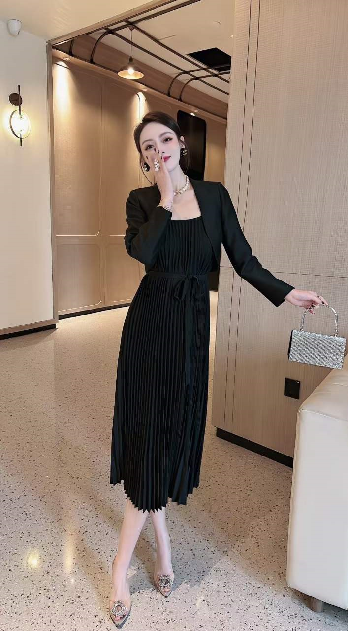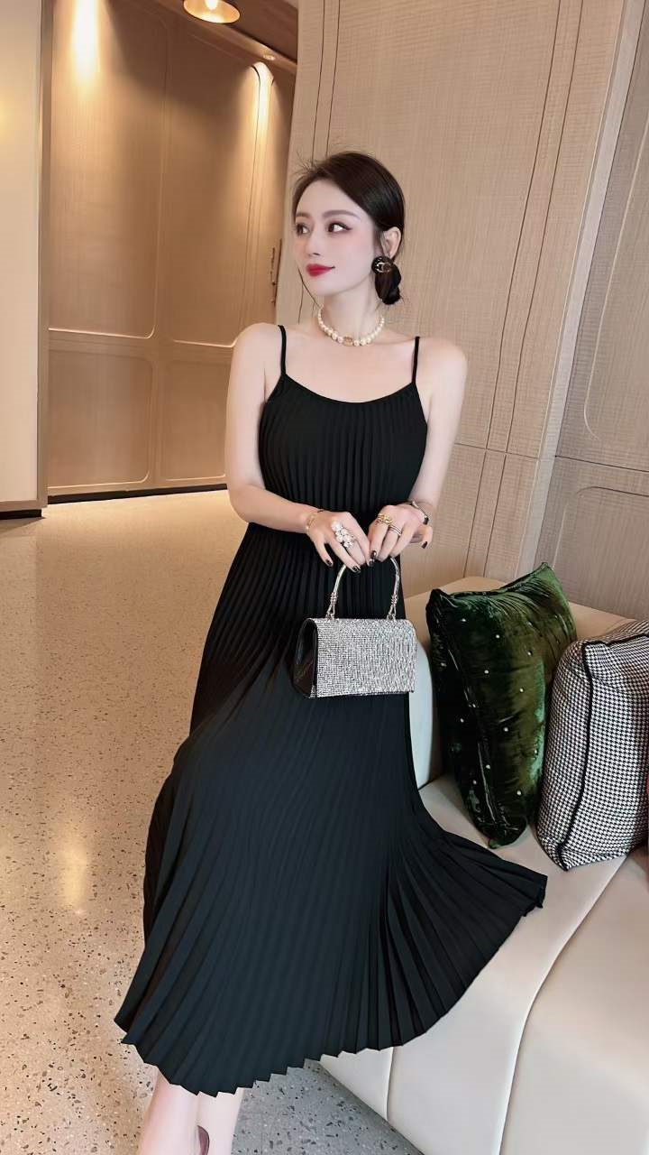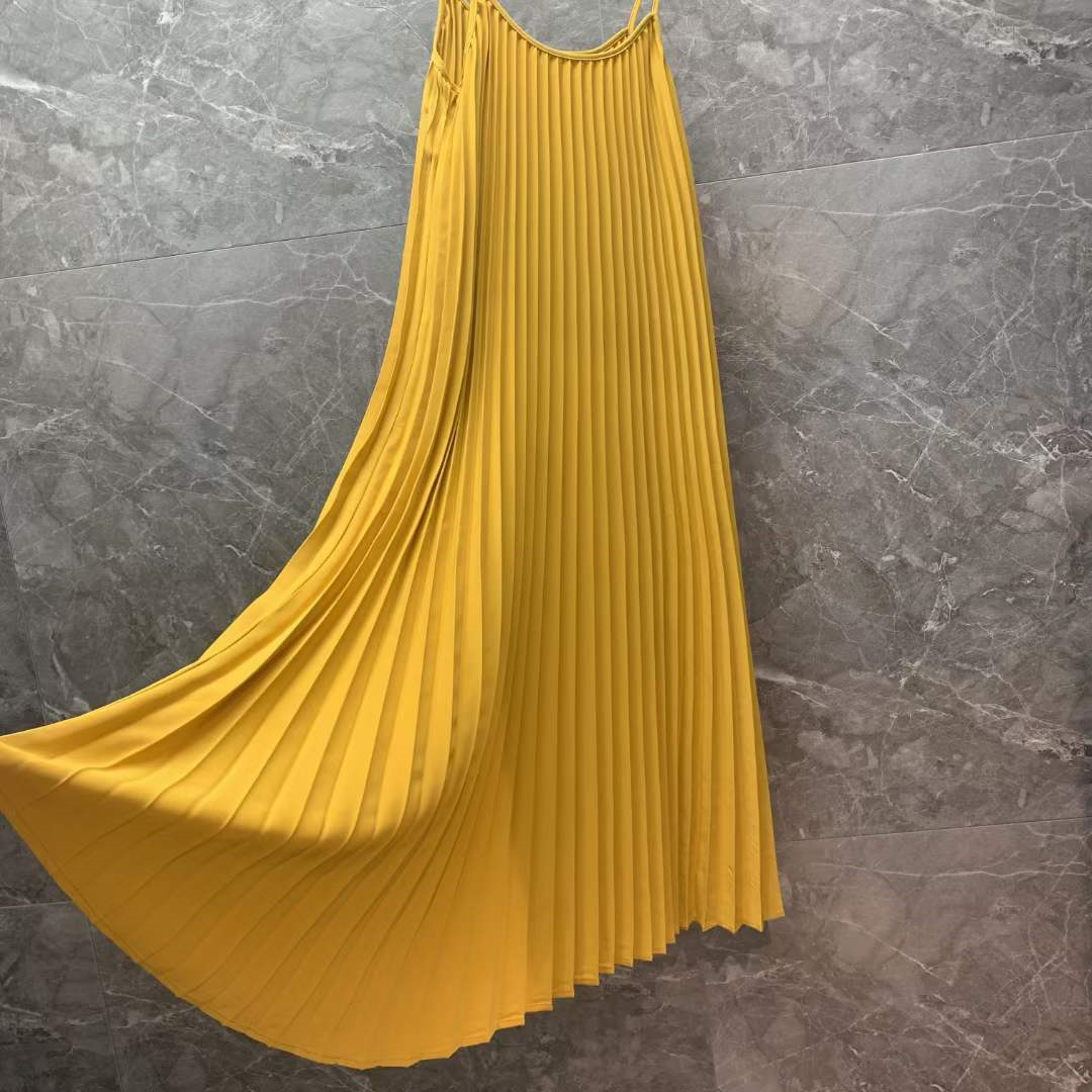 2023春夏高定定位压褶吊带连衣裙女气质百搭