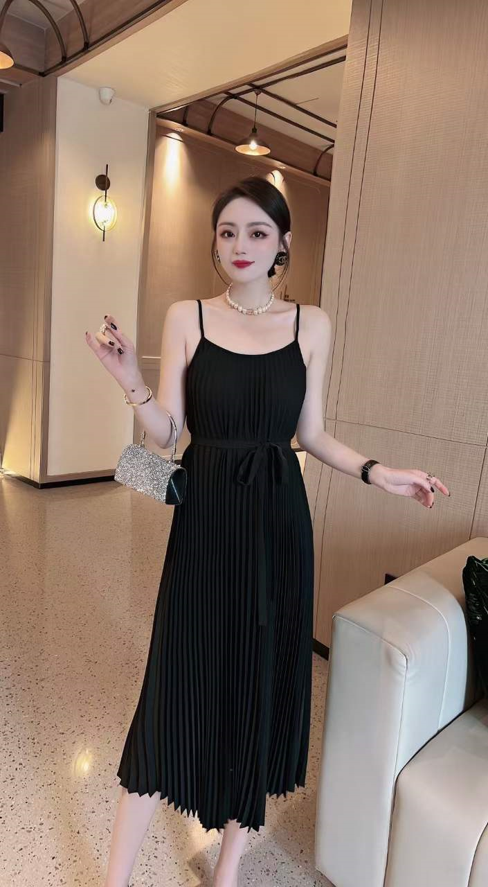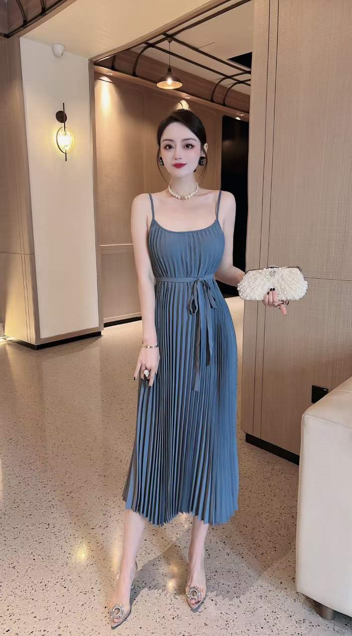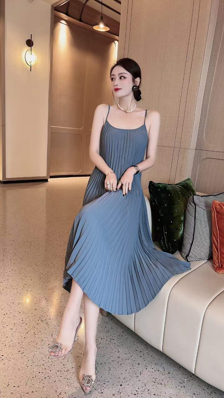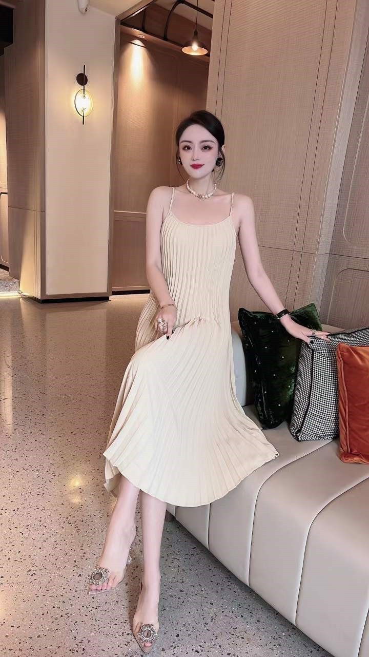 产品名称 | Product name: 2023春夏高定定位压褶吊带连衣裙女气质百搭