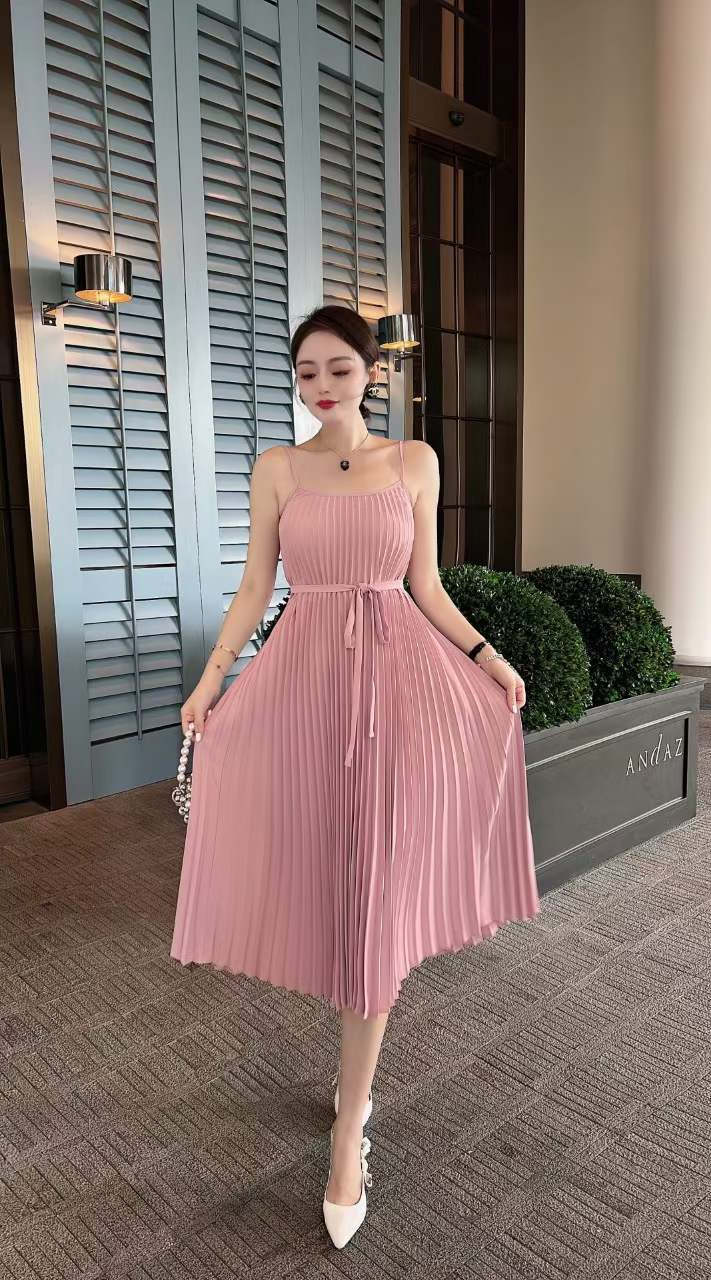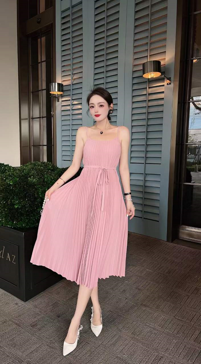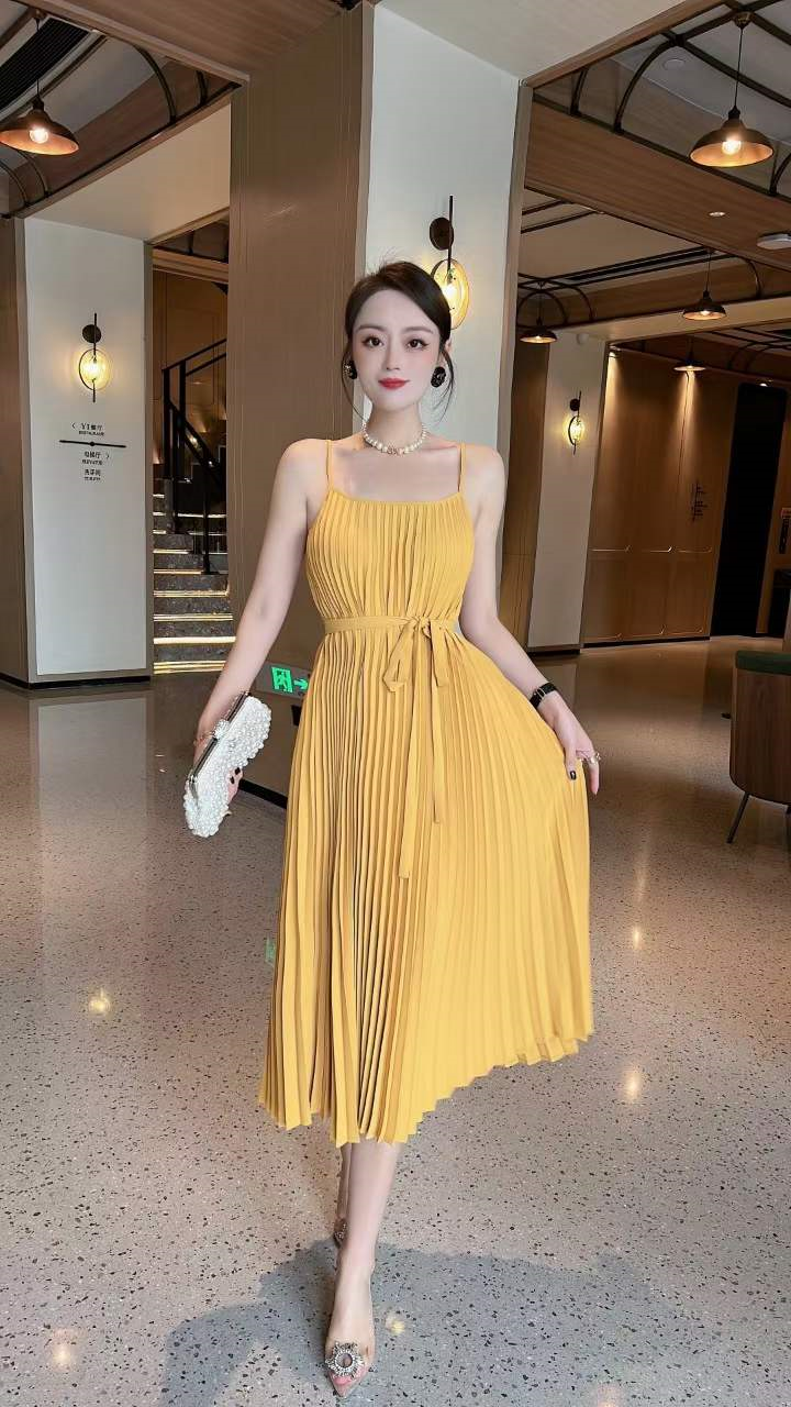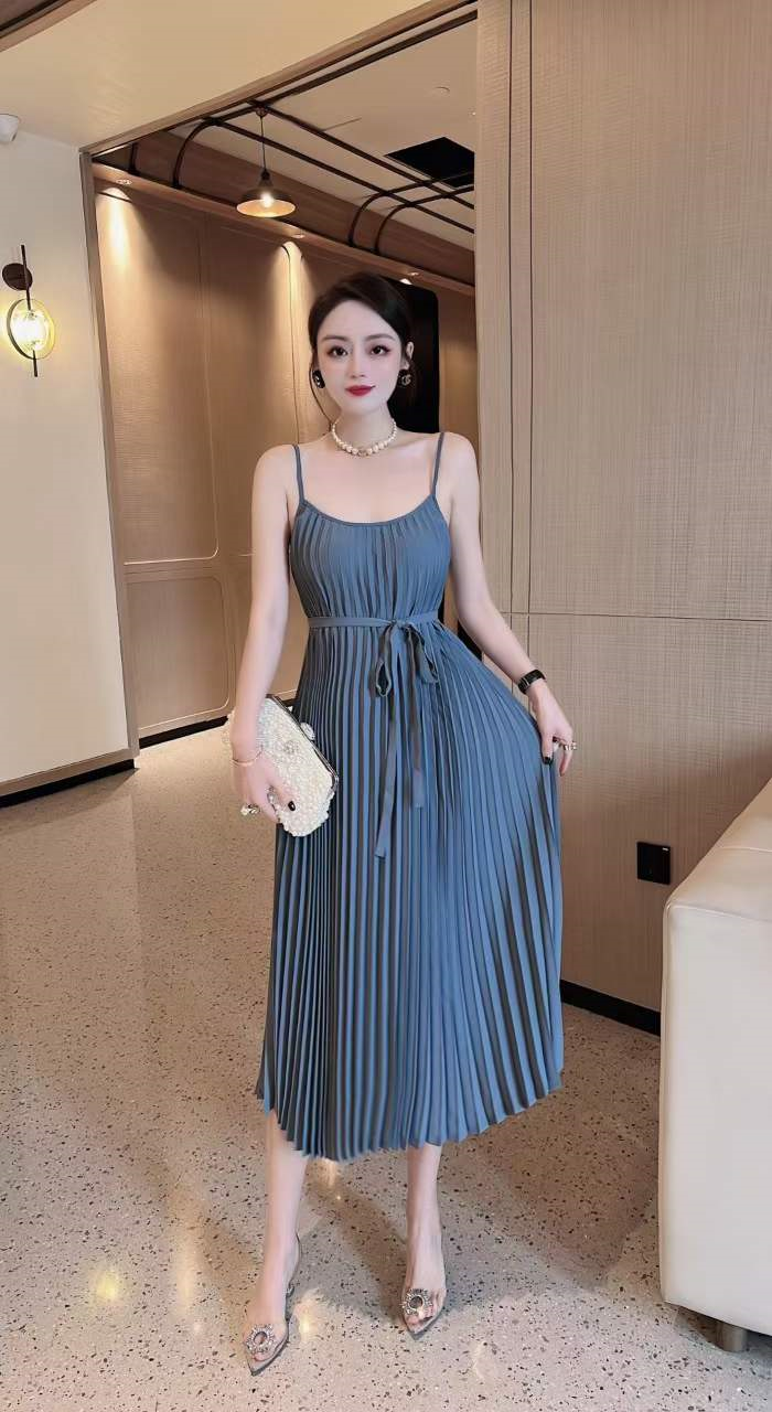 产品名称 | Product name: 2023春夏高定定位压褶吊带连衣裙女气质百搭