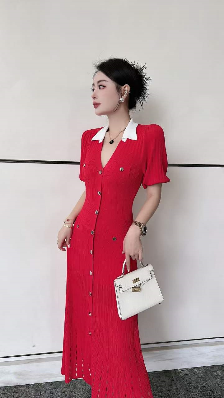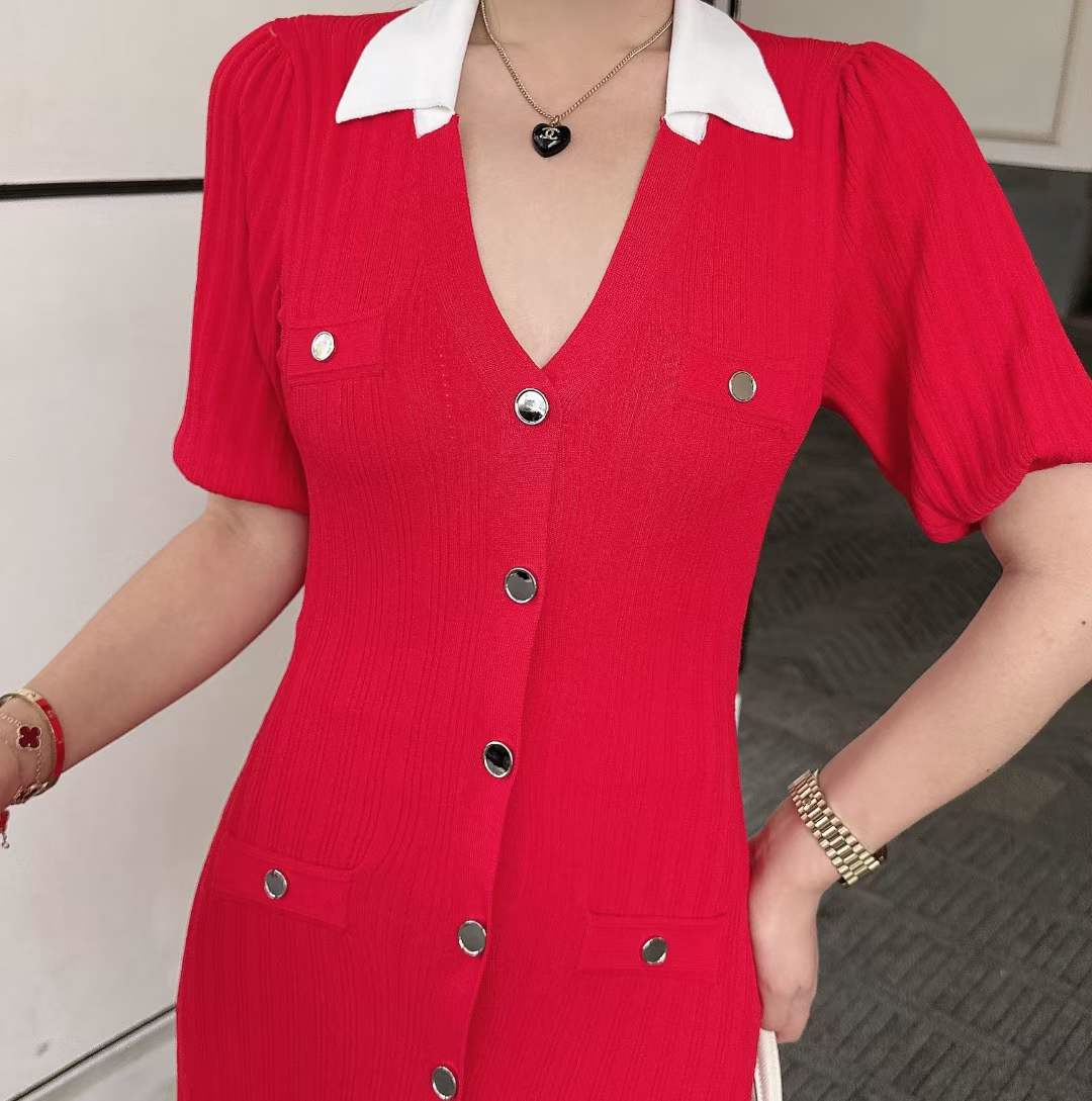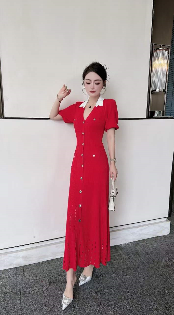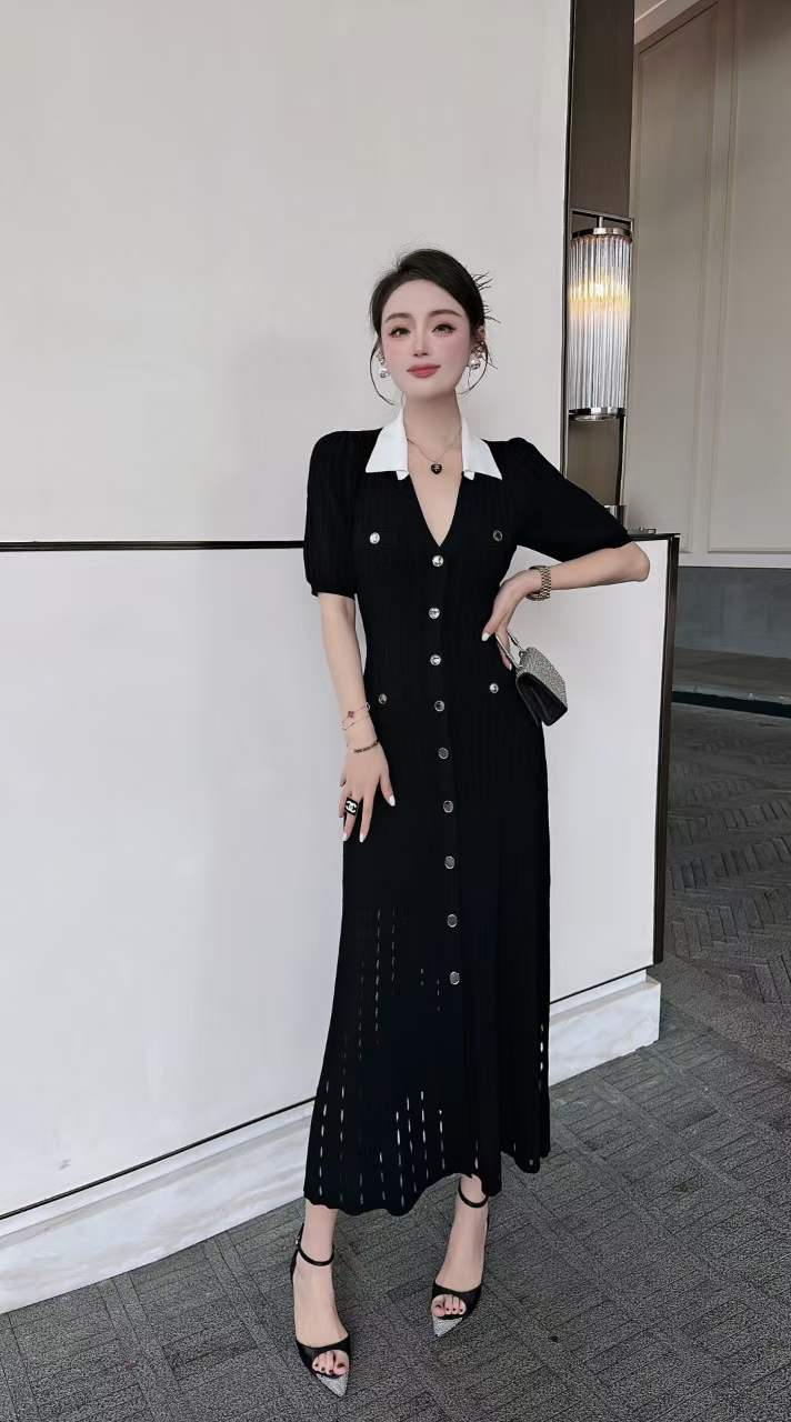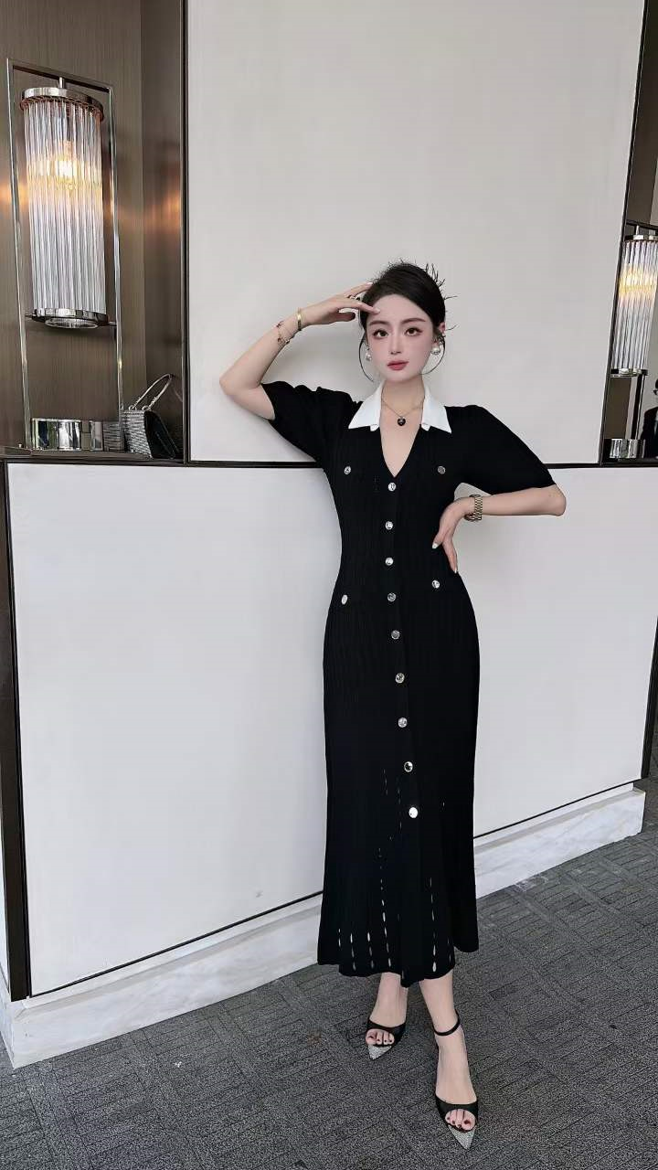 产品名称 | Product name: 火爆上新高端系列高定高密织数POLO领钉扣针织连衣裙