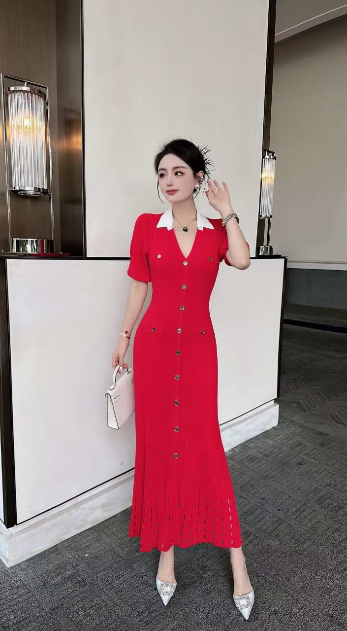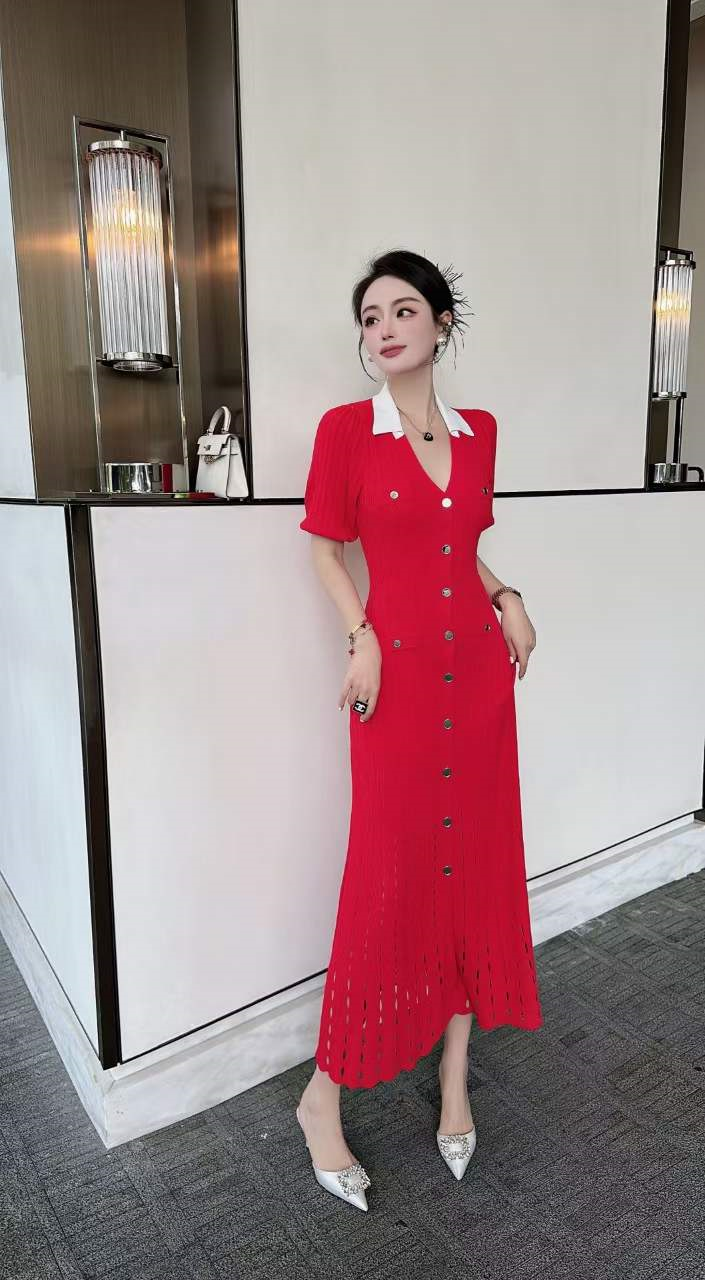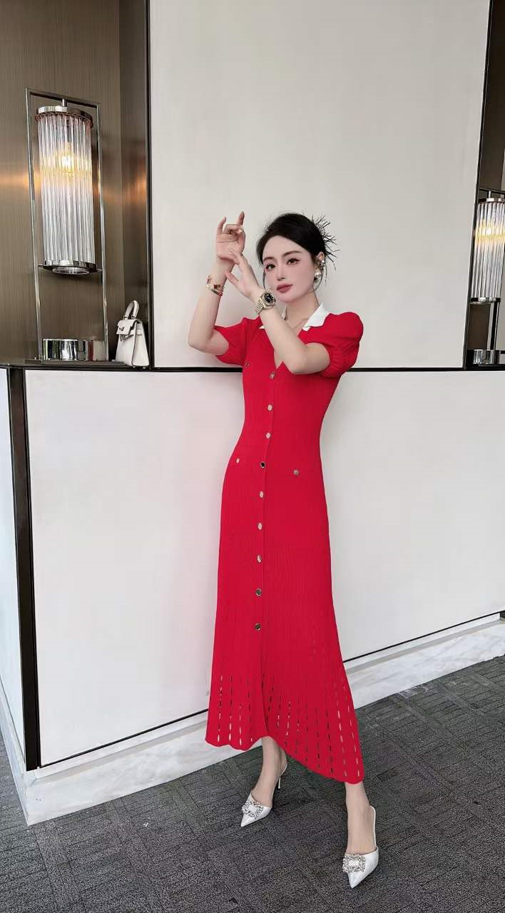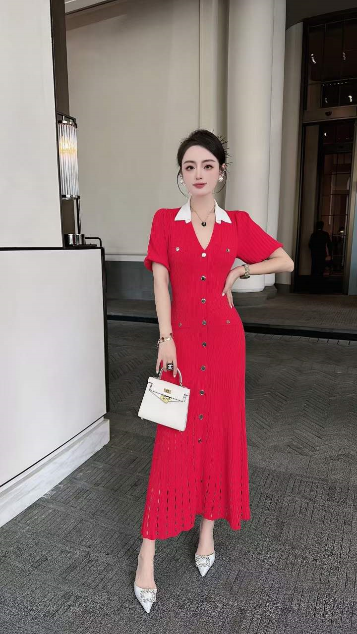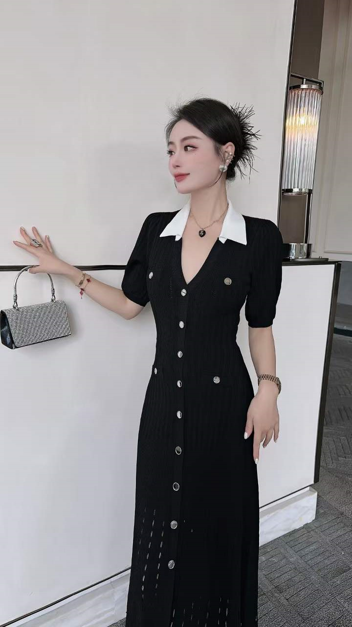 产品名称 | Product name: 火爆上新高端系列高定高密织数POLO领钉扣针织连衣裙
