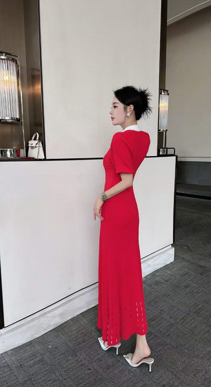 火爆上新高端狠货系列高定高密织数针织,定织定染,轻薄舒适百搭,极佳的垂感面料,上身效果显瘦不挑人,拼色领设计整体干净典雅,剪裁干净利落,很显档次,包缝效果既穿着更舒适,️有防止面料脱线,针脚细腻,做工仔细,下摆镂空花设计,编织精工细致,美观大方,弹力很大,包容性极强,两色入!黑色,红色,均码
