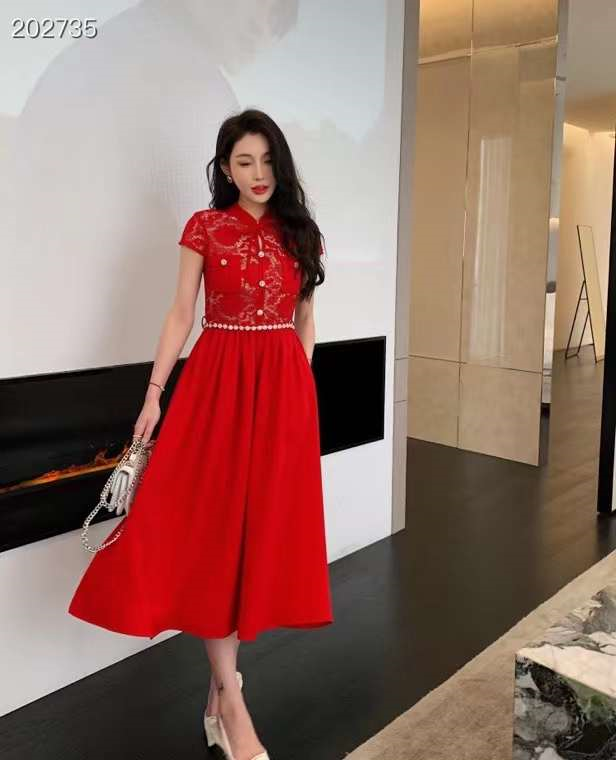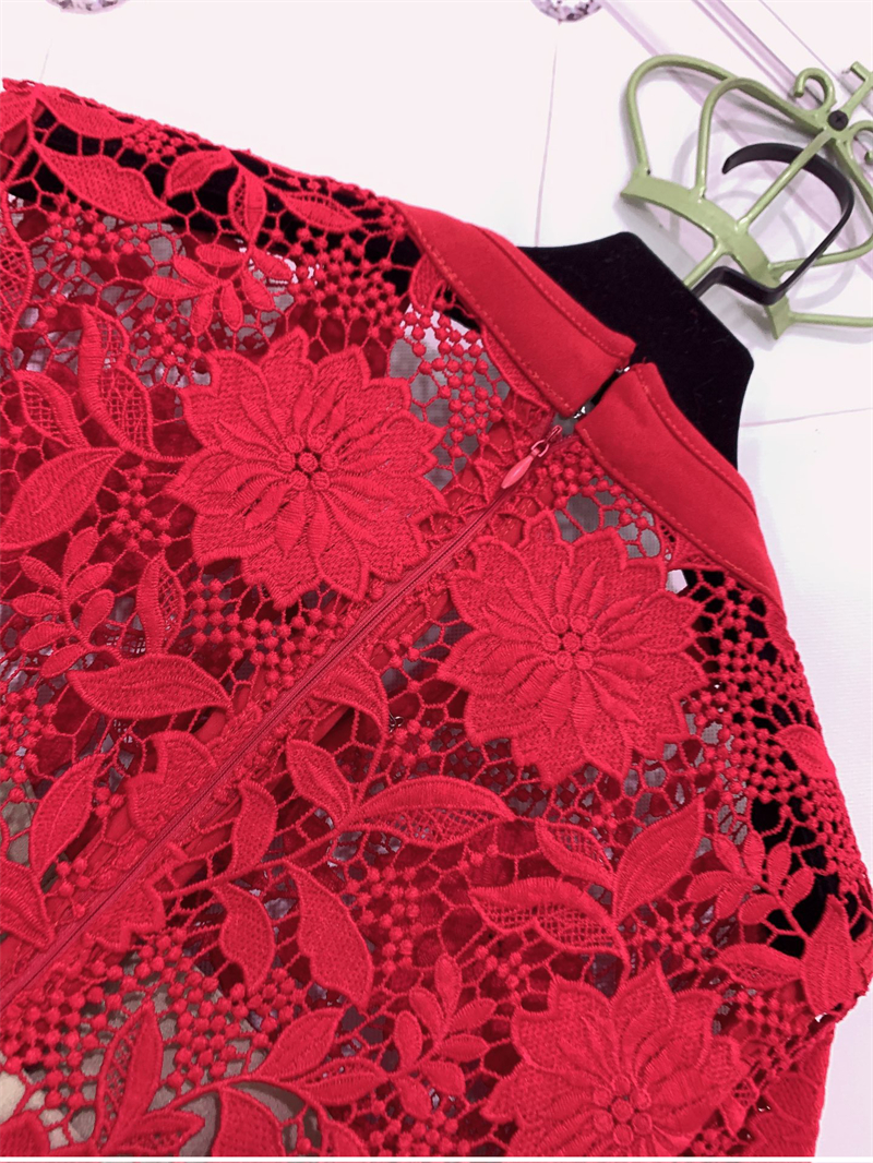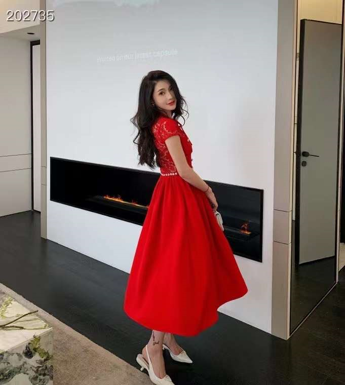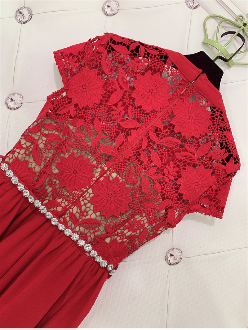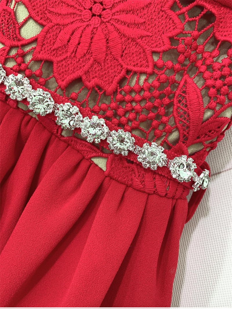 产品名称 | Product name: 高端尚重工刺绣蕾丝镶钻系带连衣裙女欧货夏季新款法式气质长裙