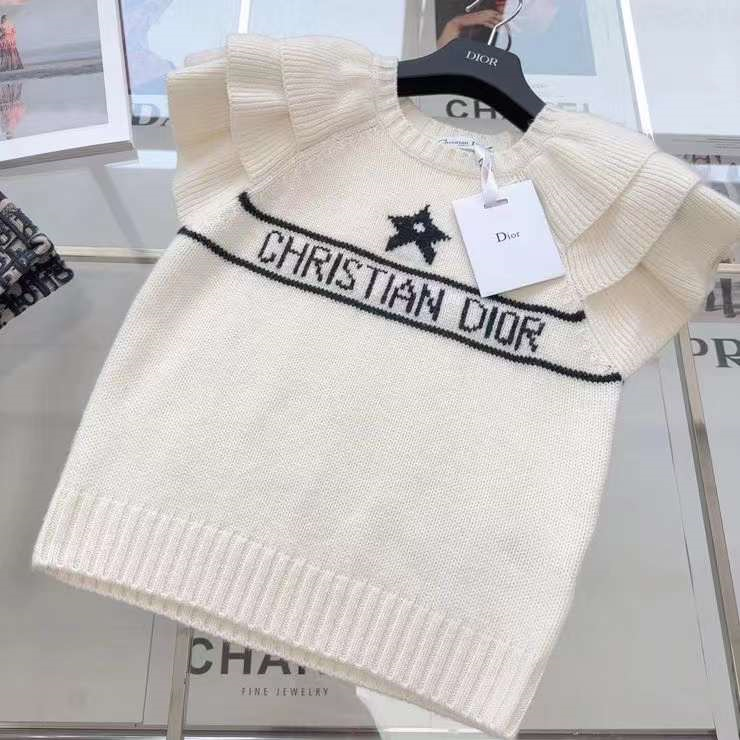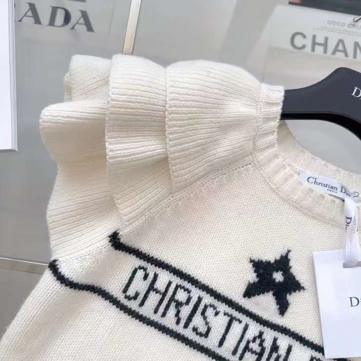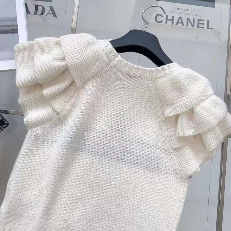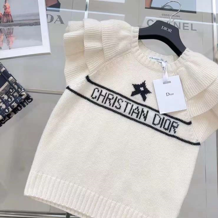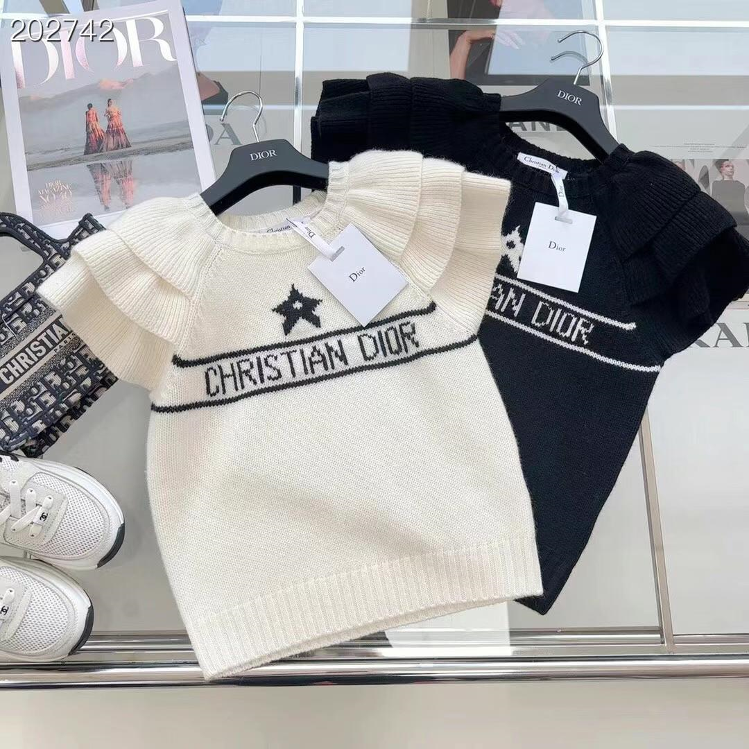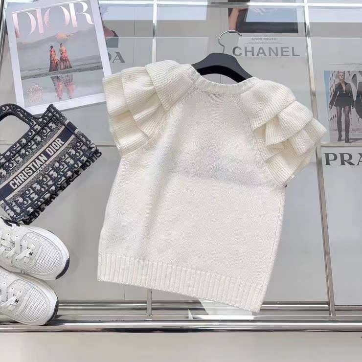 爆单推荐 CD23SS——早春新款幸运星提花短袖针织毛衣🖤🤍原版定制泡泡花边袖设计更加调皮灵动 经典版型百搭不挑人 白富美必入高级单品 两色三码 SML.