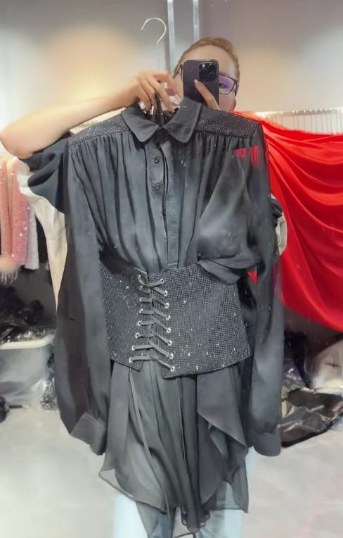 产品名称 | Product name: Yultuzum高端新款宽腰封系带修身衬衫连衣裙女