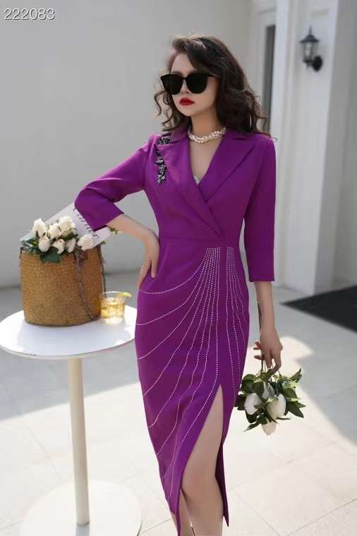 爆款重工订珠烫钻西装连衣裙  2色 紫色 黑色 码数SMLXLXXL