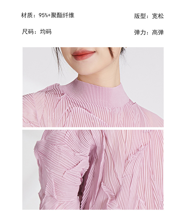 产品名称 | Product name: 薄款气质雪纺衫女设计感小众宽松显瘦不规则长袖高端褶皱T恤上衣
