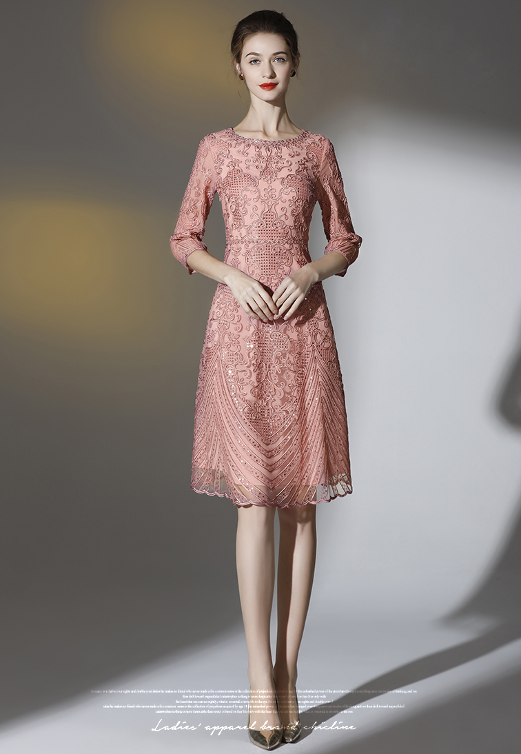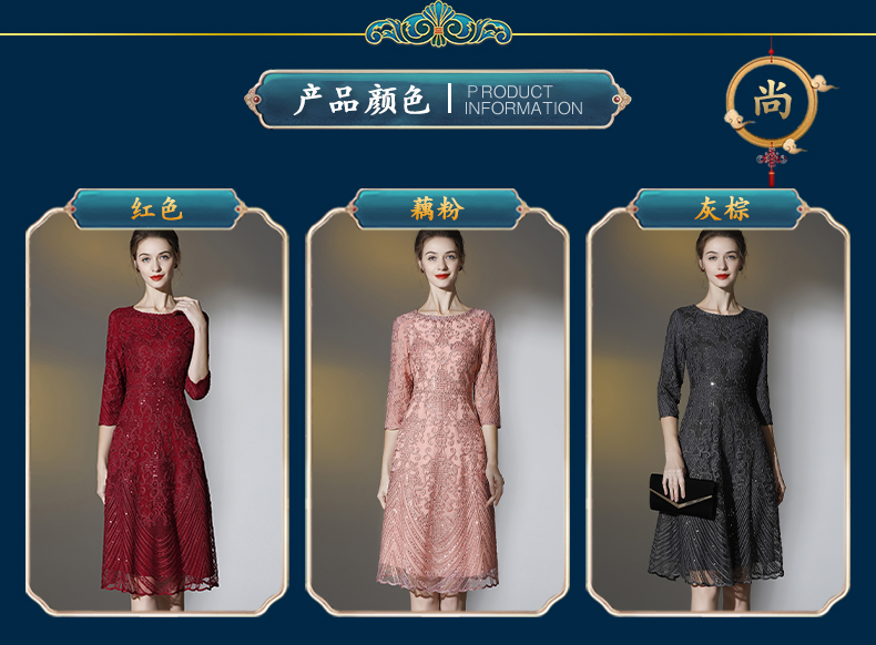 产品名称 | Product name: 爆款重工圆领中袖蕾丝连衣裙女婚礼妈妈装春秋平时可穿喜婆婆婚宴装中长款礼服连衣裙