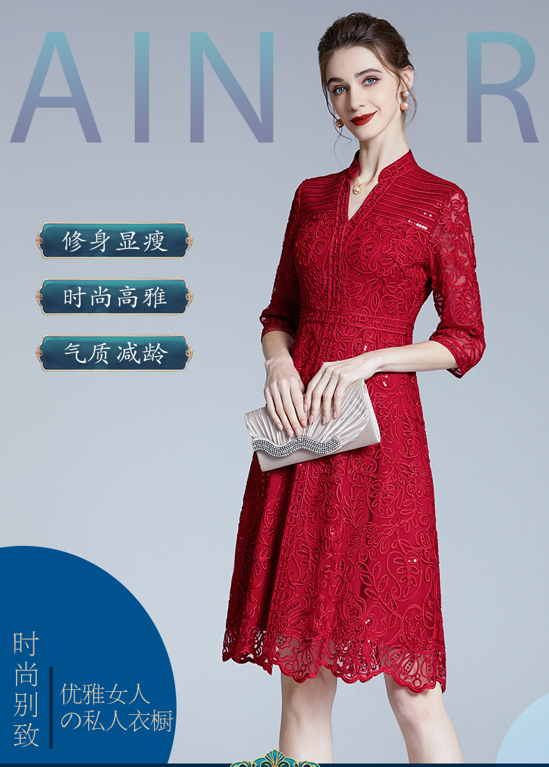 产品名称 | Product name: 喜婆婆婚宴装礼服2023春装新款高贵喜妈妈红色婚礼连衣裙