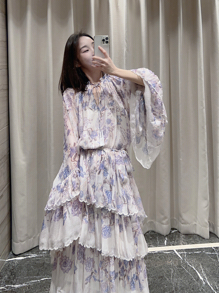 2023春装茶歇法式小众绝美高级感仙女雪纺度假连衣裙女显瘦长裙