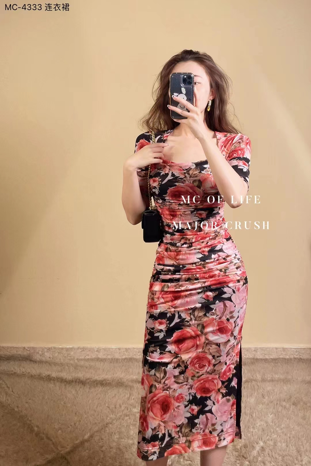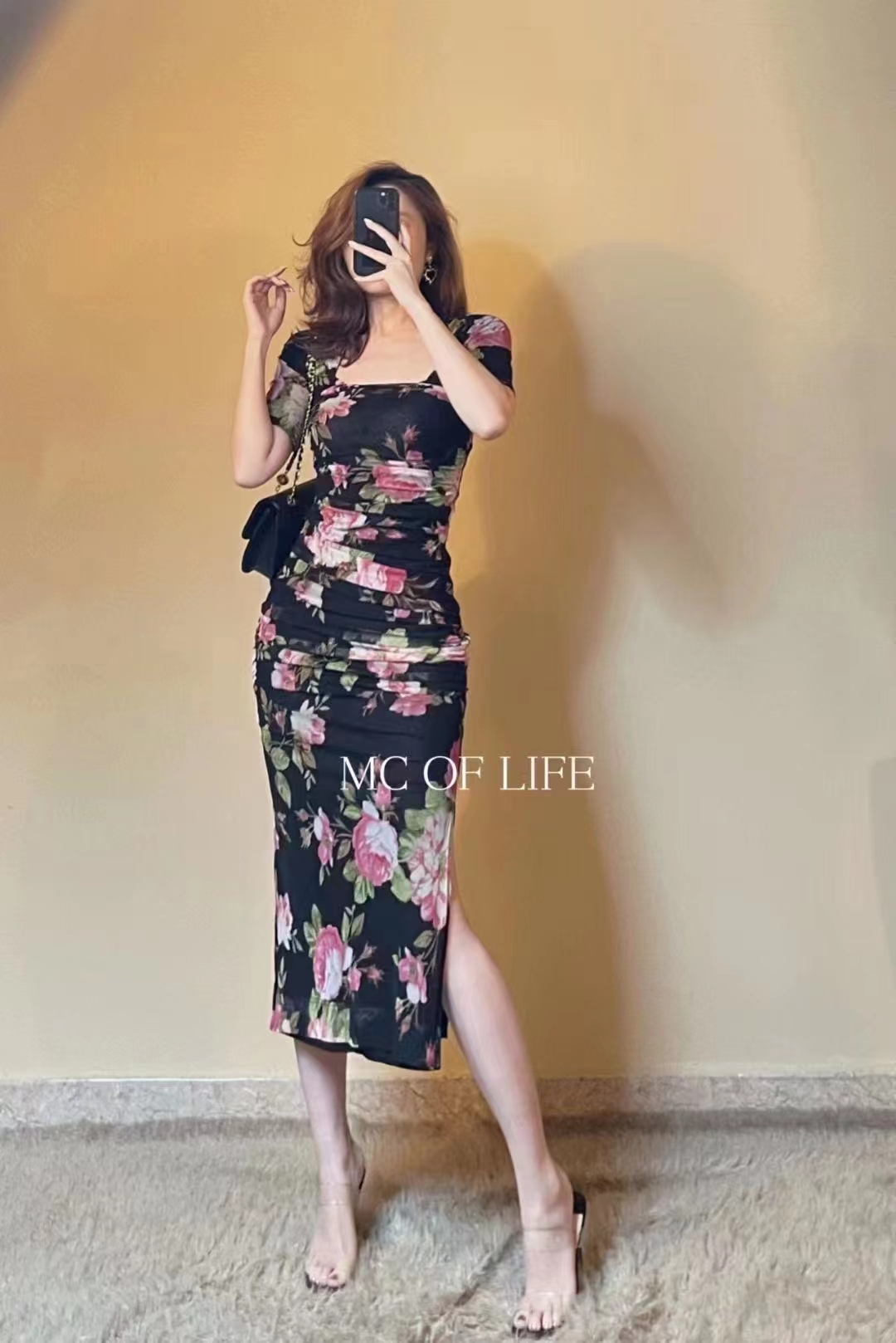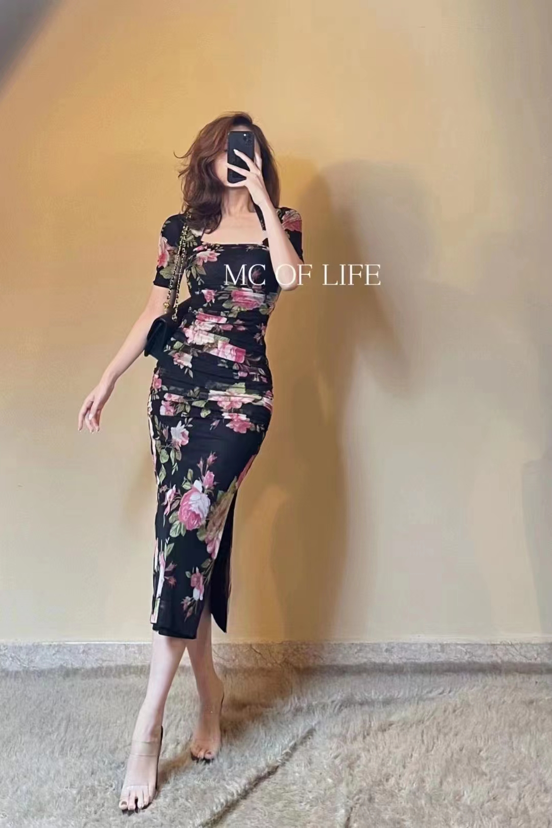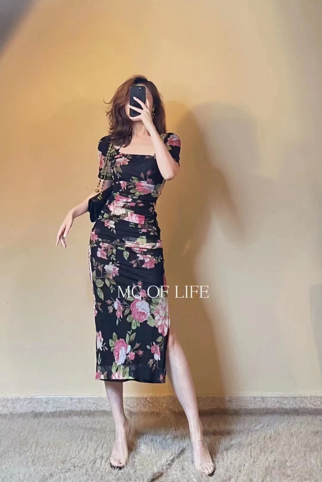 产品名称 | Product name: MC超仙春季新款一字领碎花茶歇法式连衣裙23年新款原创小众设计