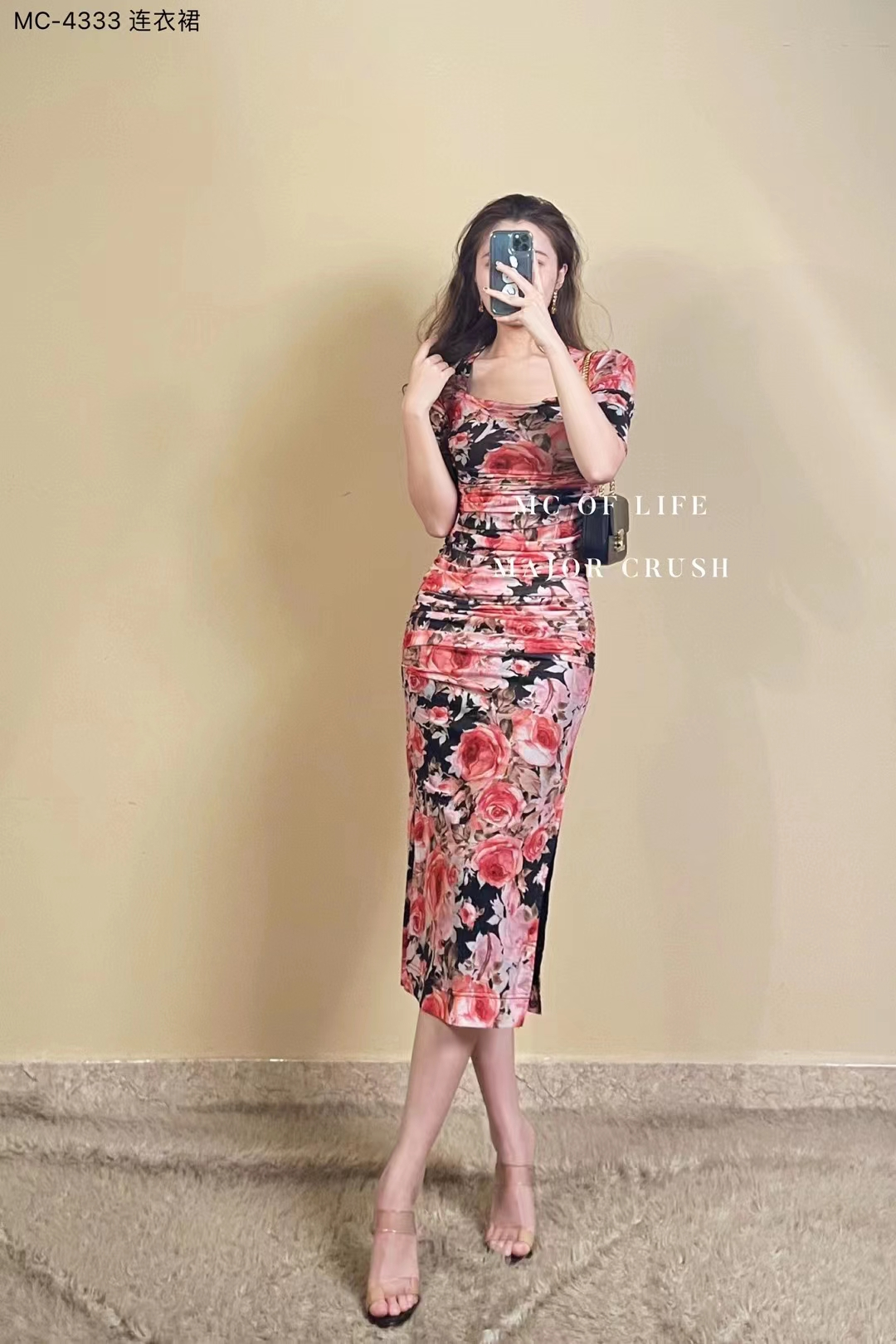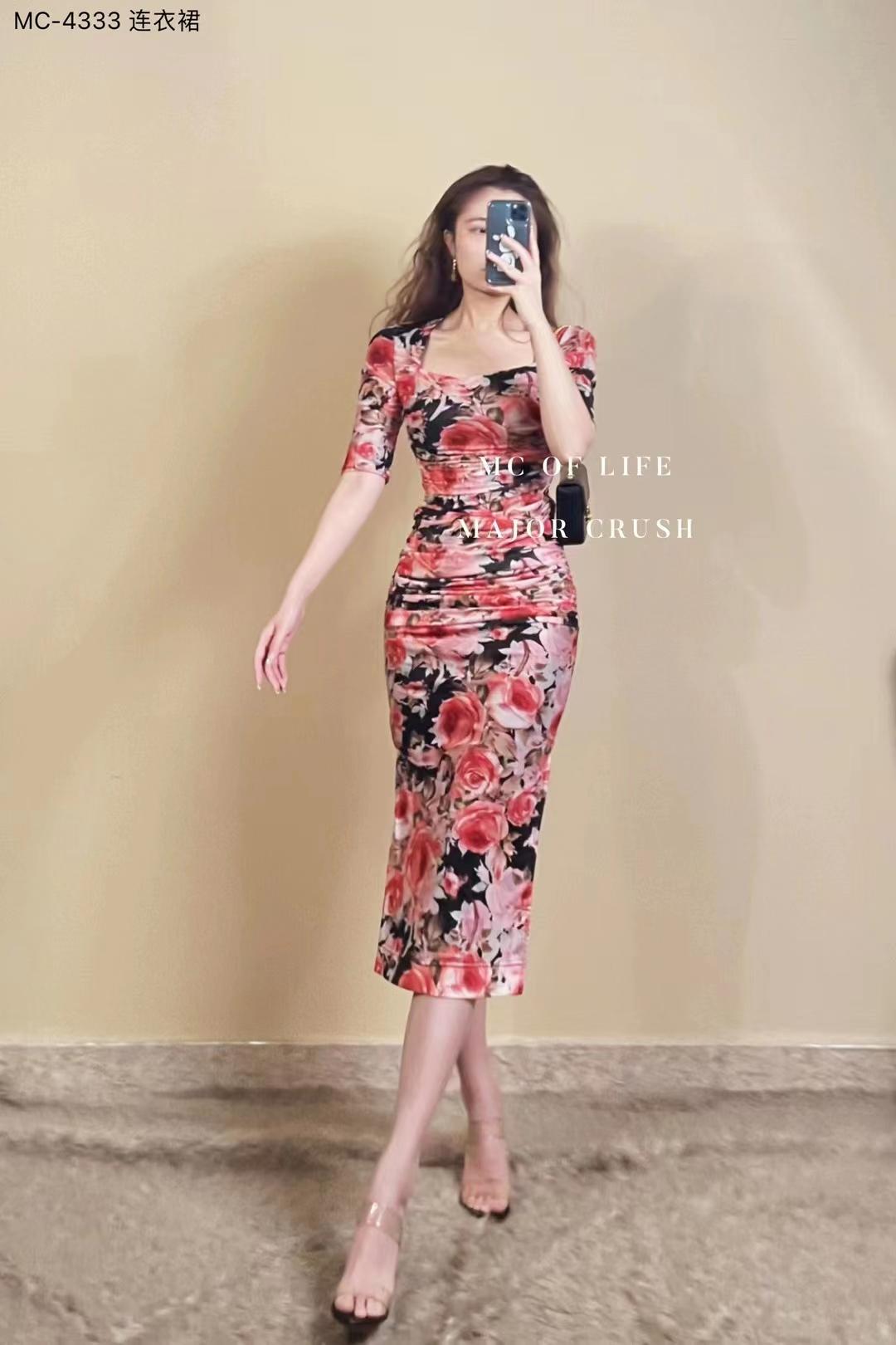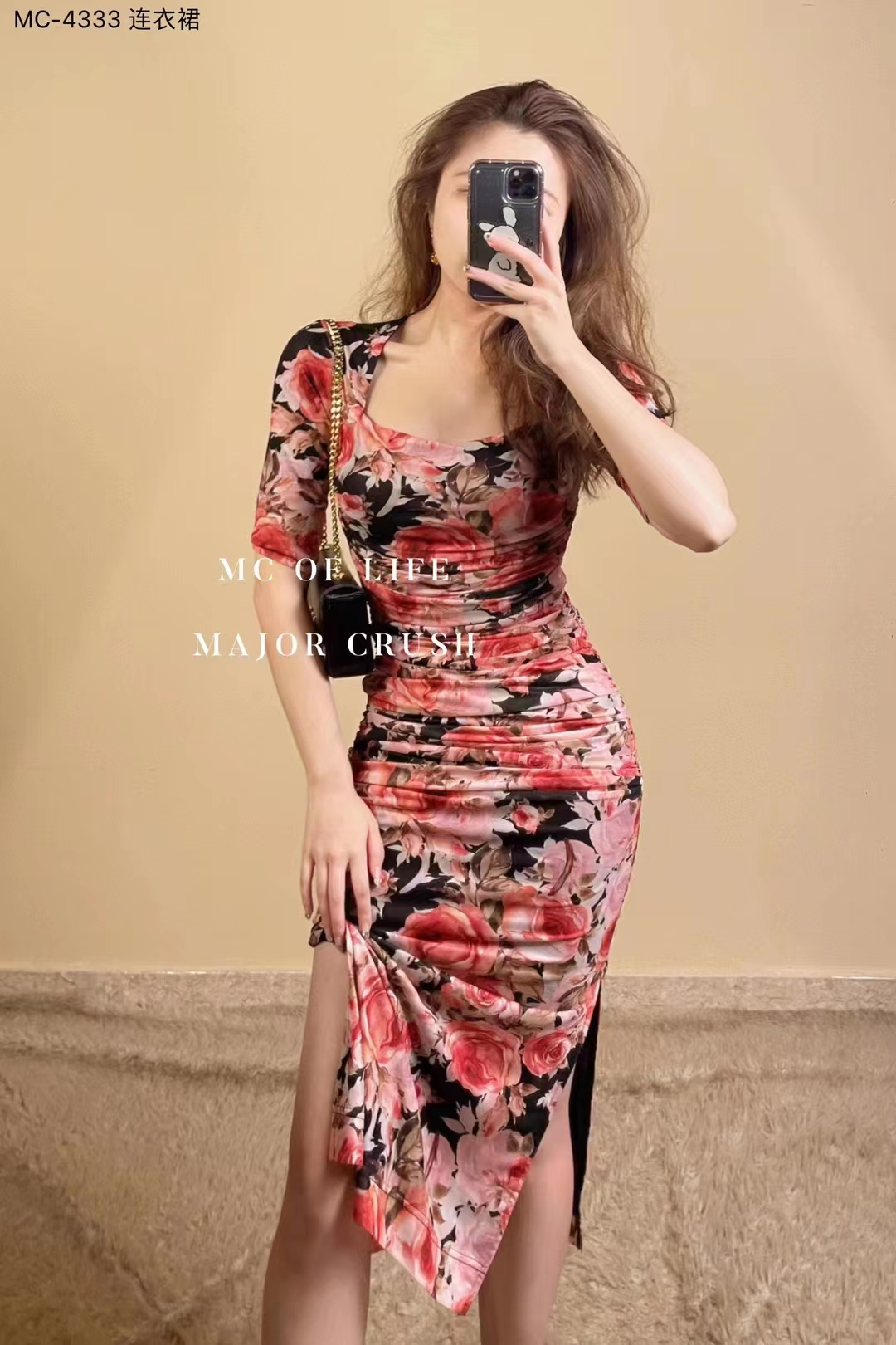 产品名称 | Product name: MC超仙春季新款一字领碎花茶歇法式连衣裙23年新款原创小众设计