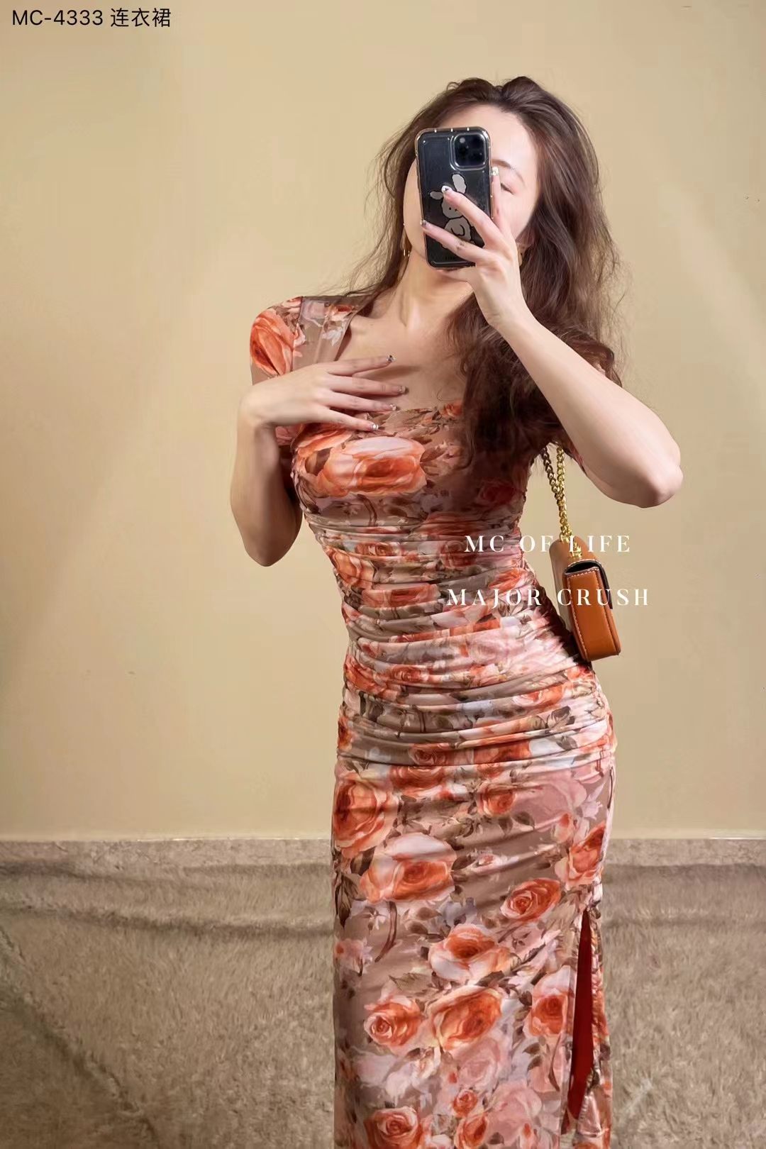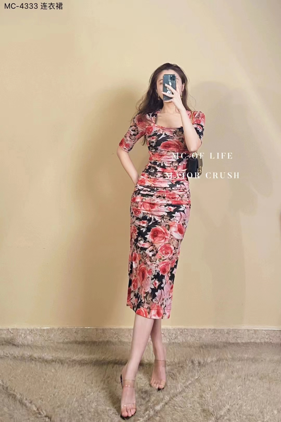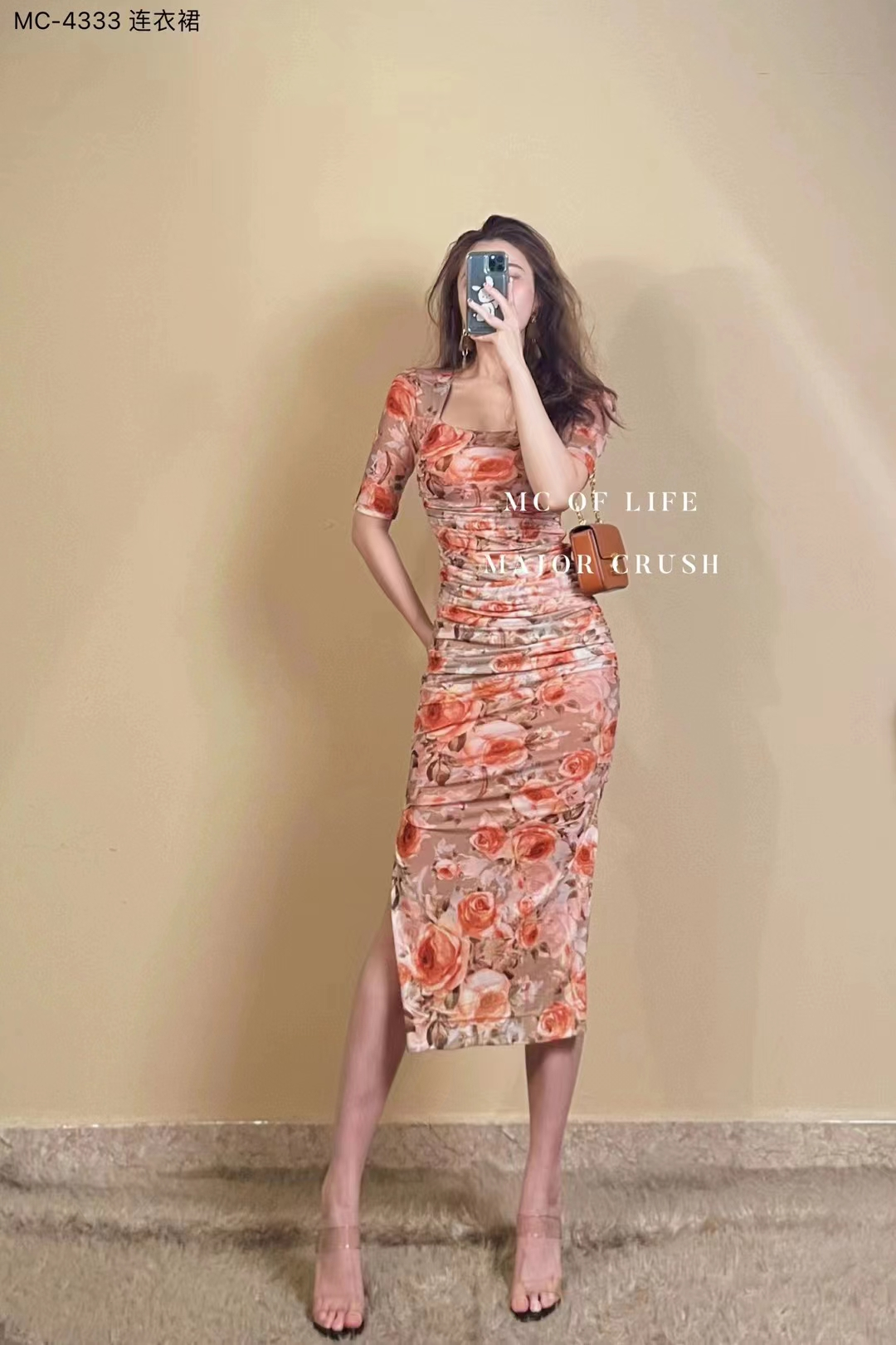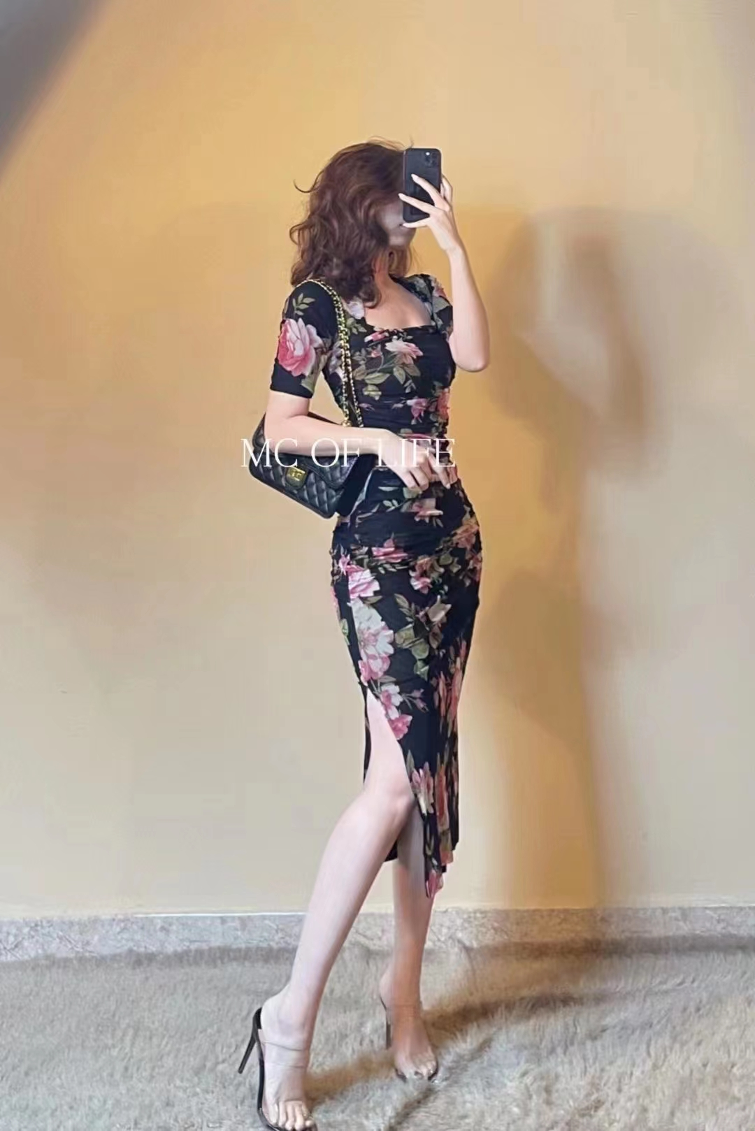 产品名称 | Product name: MC超仙春季新款一字领碎花茶歇法式连衣裙23年新款原创小众设计