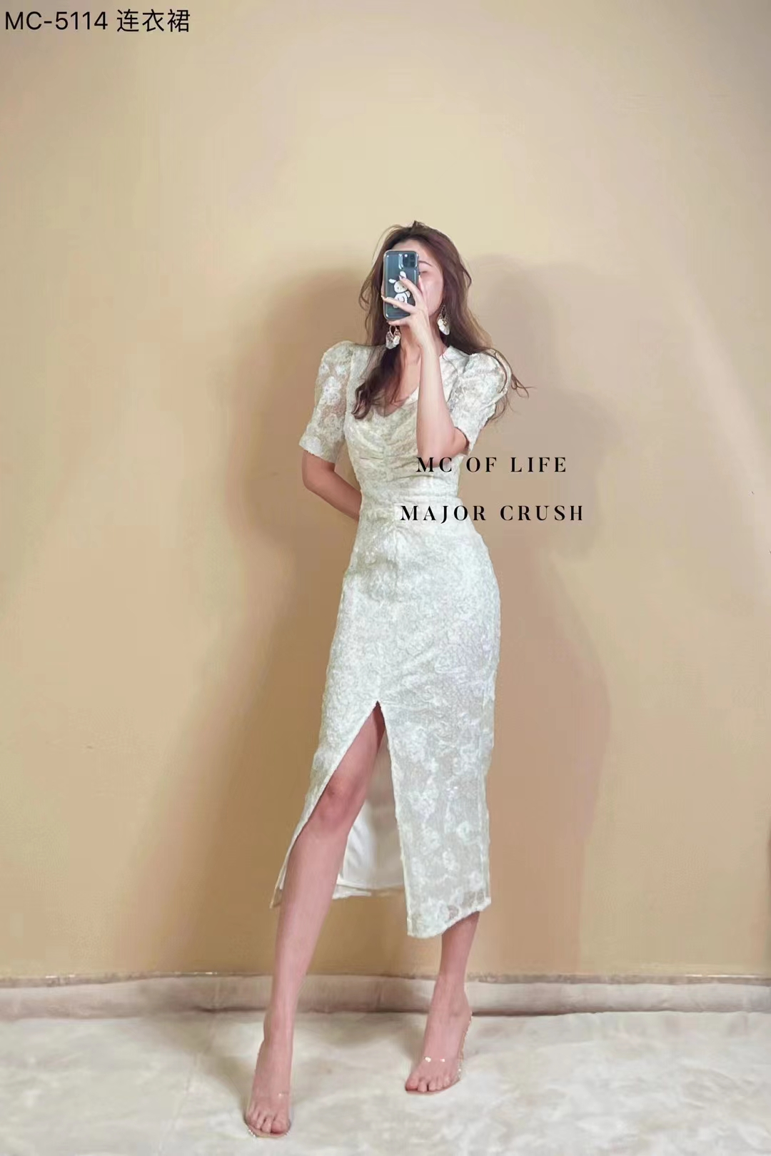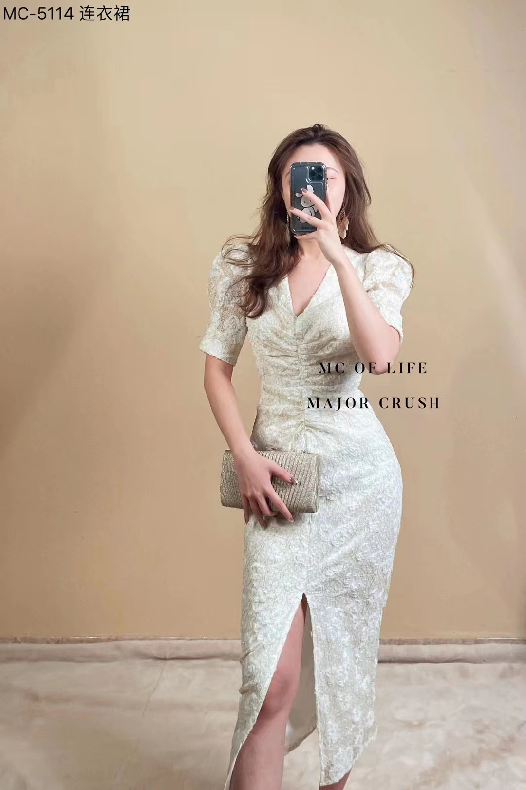 产品名称 | Product name: MC轻奢高级感立体提花精美连衣裙v领简约高腰显瘦23年春夏新款原创