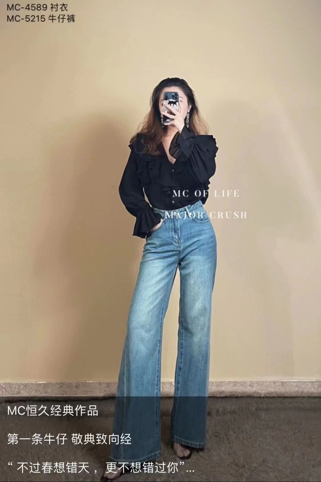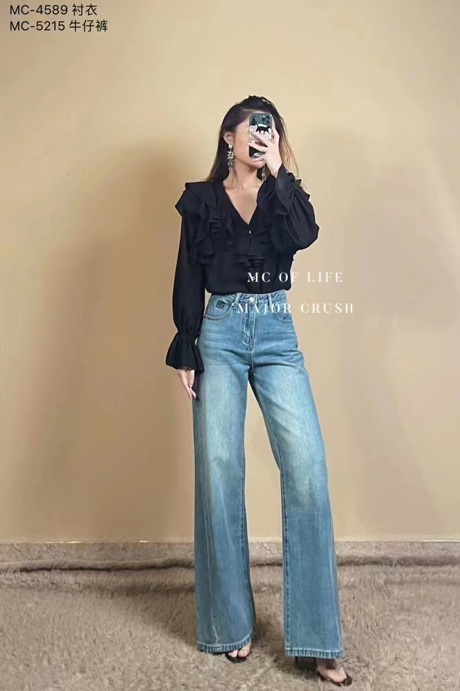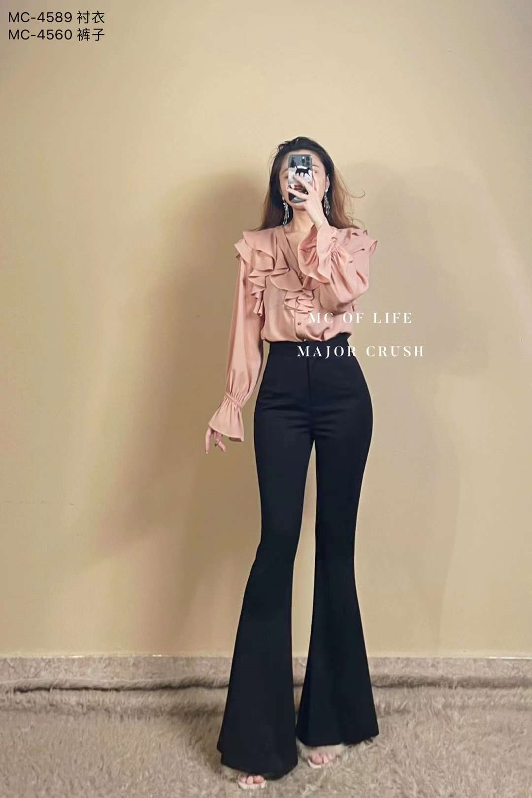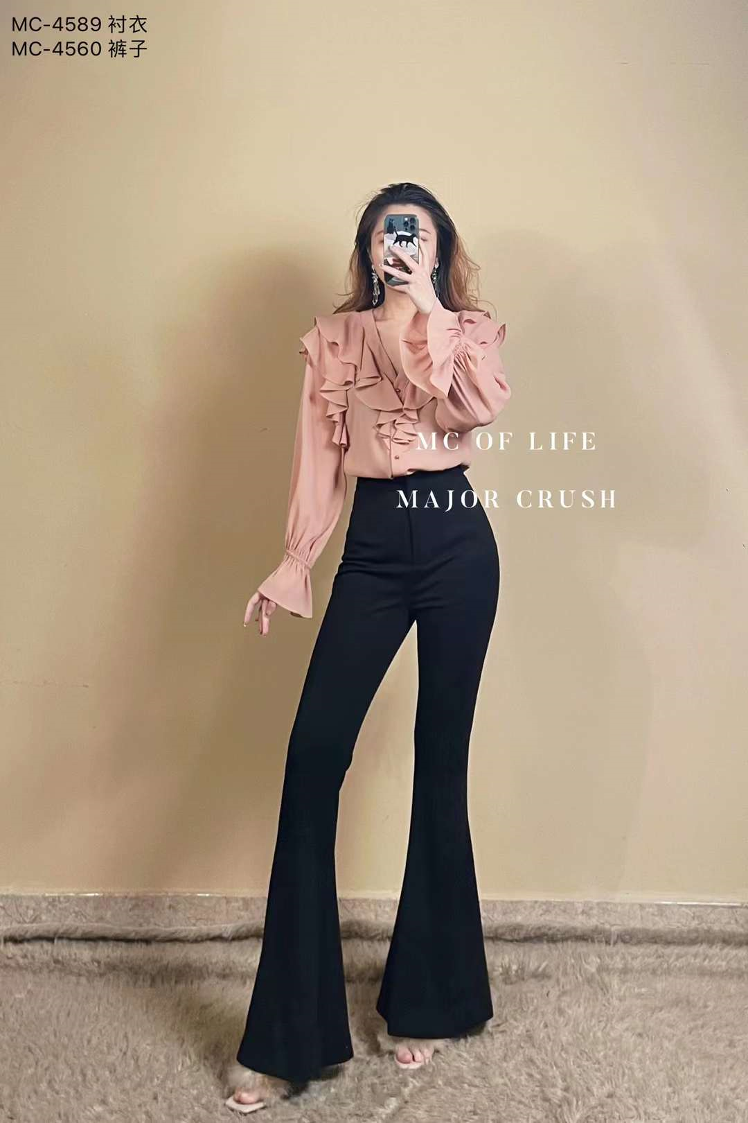 产品名称 | Product name: MC原创2023荷叶边V领长袖衬衫女气质显瘦