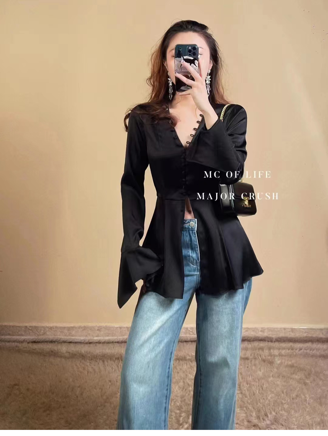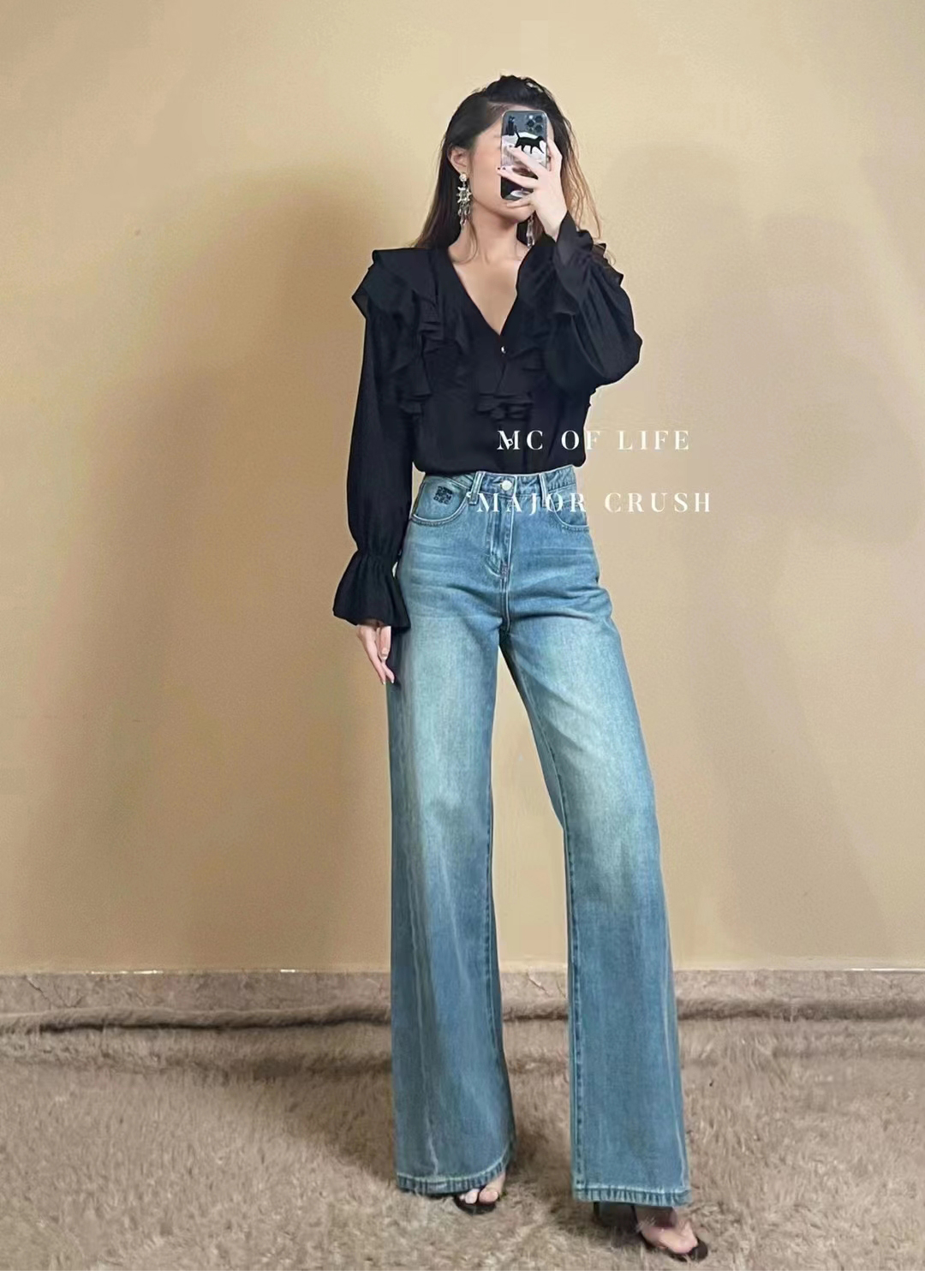 产品名称 | Product name: MC春夏新款高端原创小众重工牛仔裤女高腰百搭喇叭裤阔腿裤