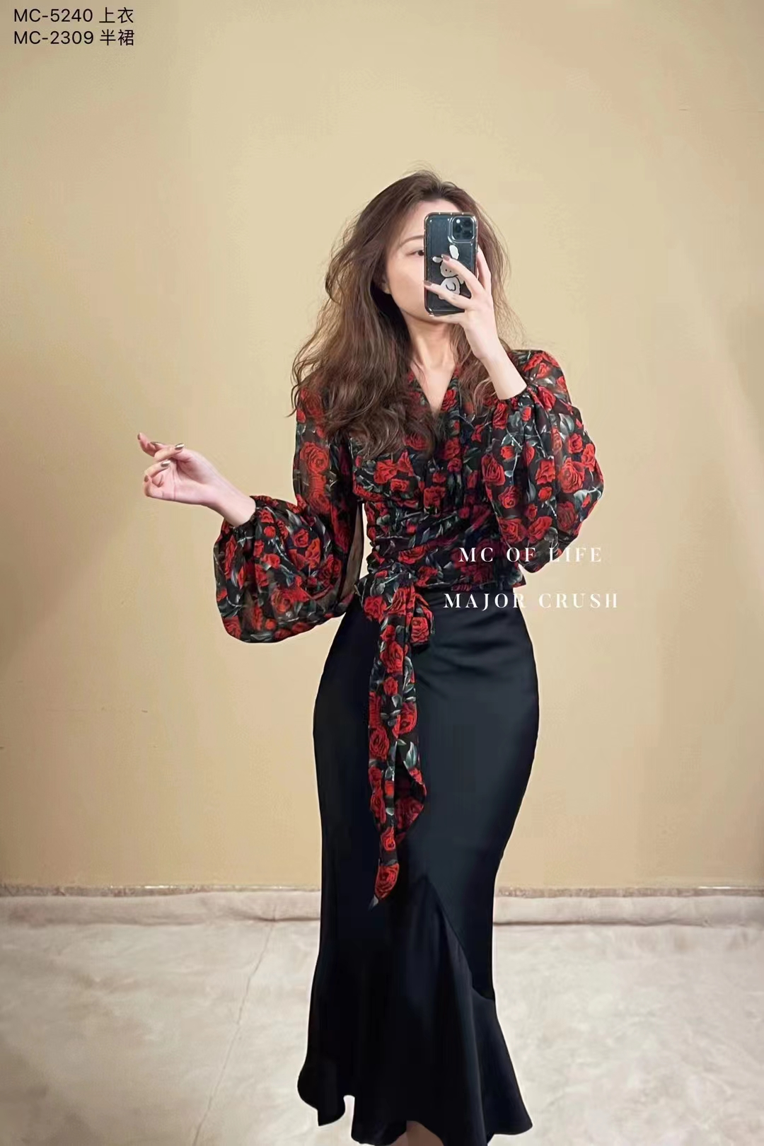 产品名称 | Product name: MC原创设计师 2023春夏新品灯笼袖气质高雅印花真丝衬衫女