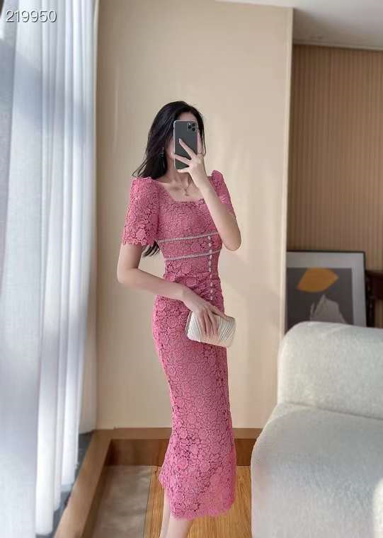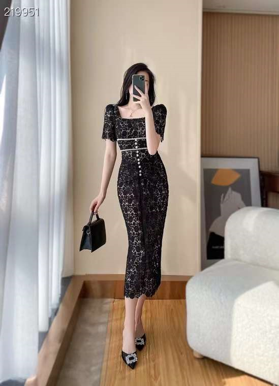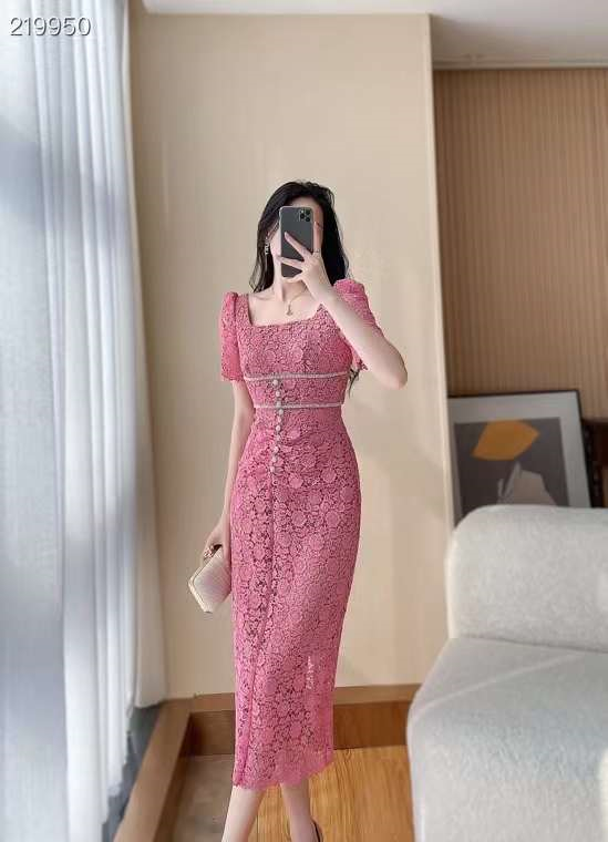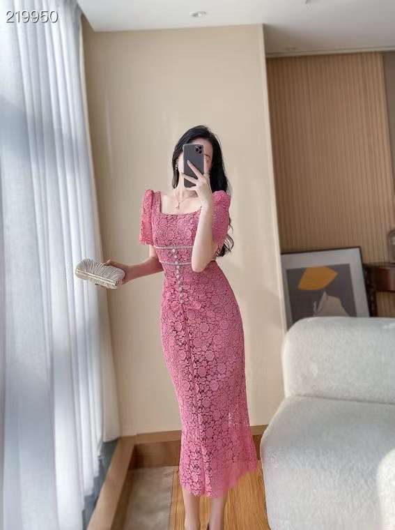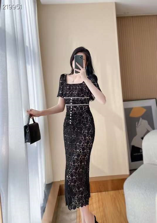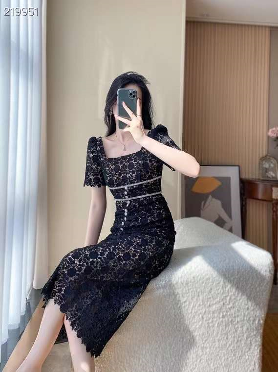 产品名称 | Product name: 2023夏季新品方领泡泡袖水溶蕾丝连衣裙
