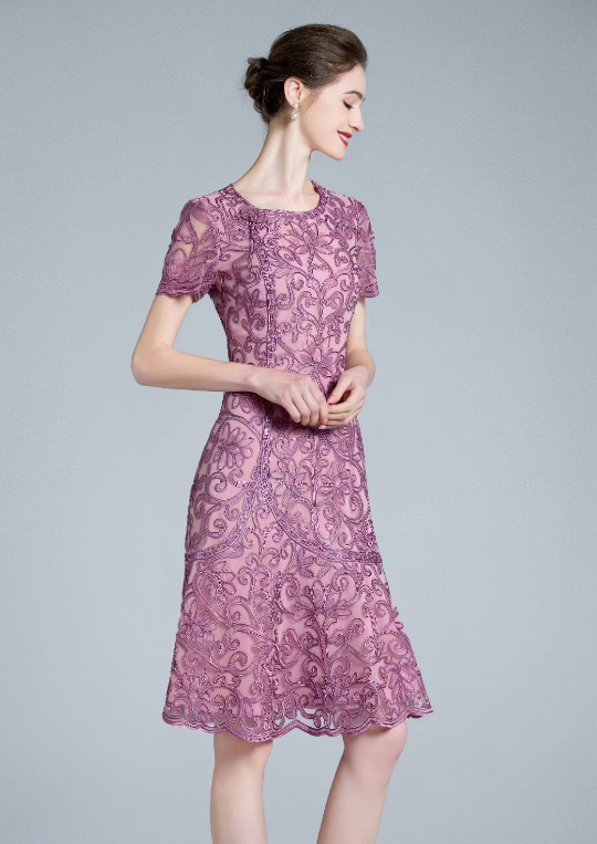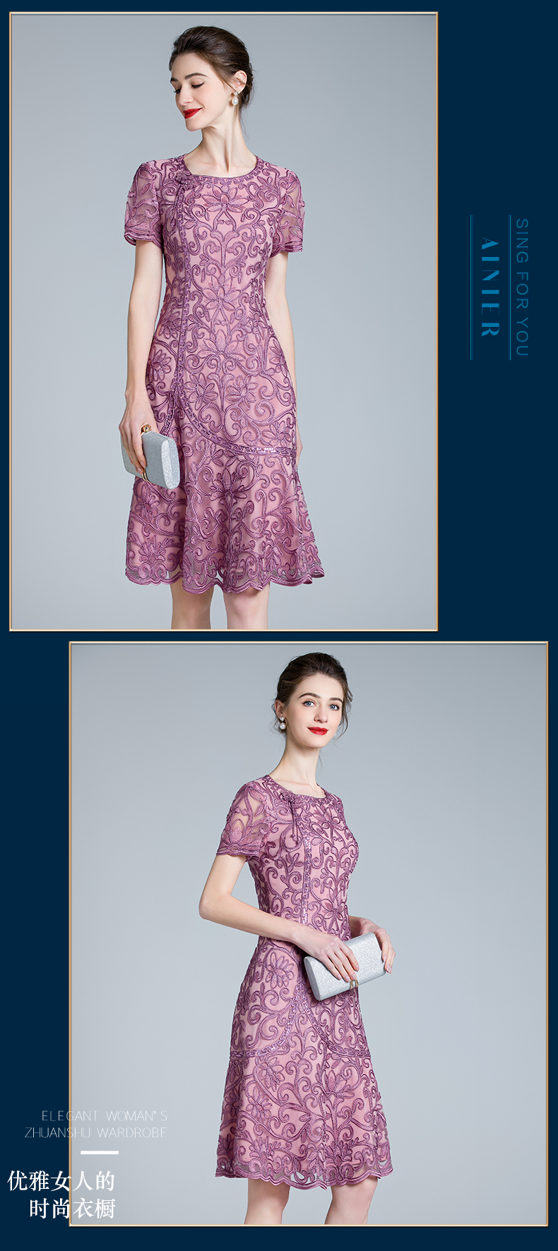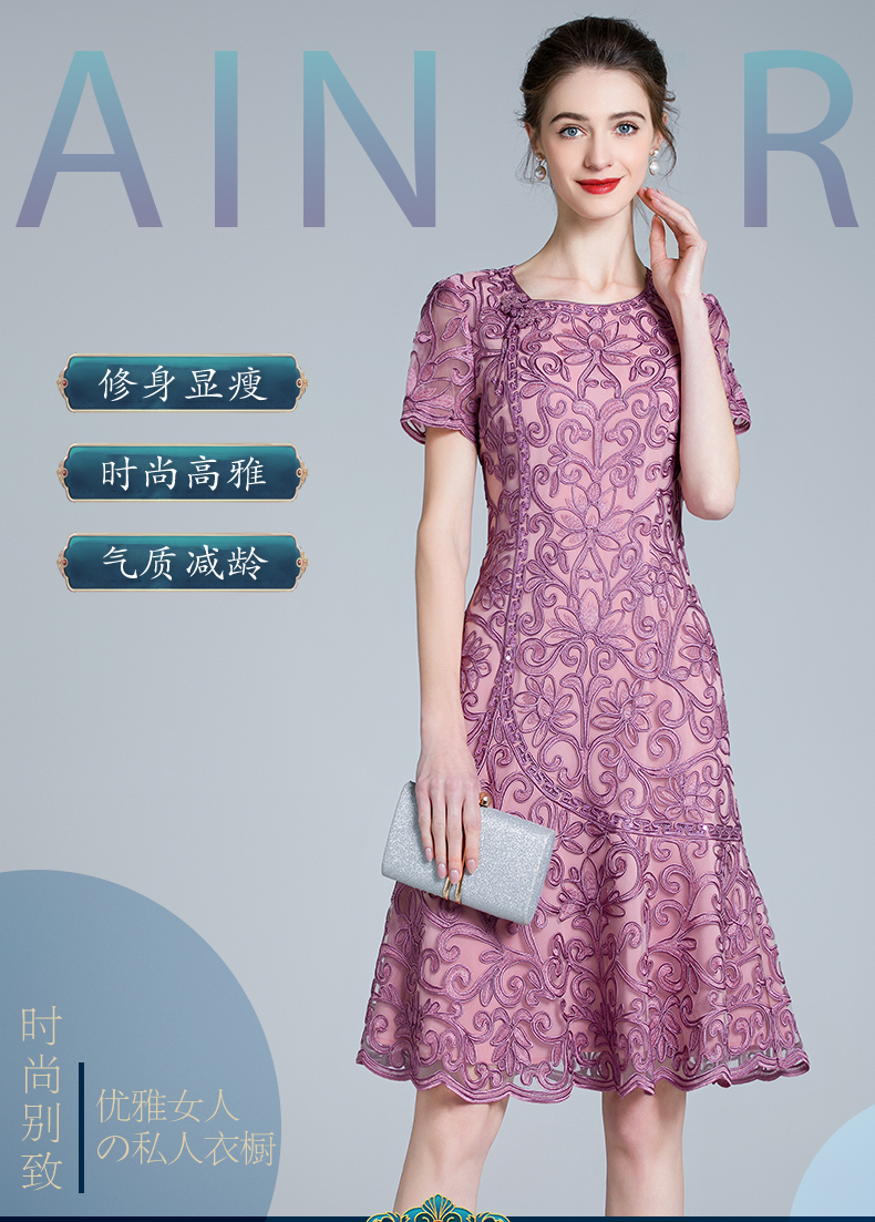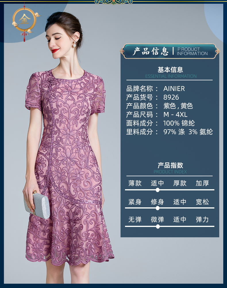 ️️新款上市爆款升级版中袖重工盘花连衣裙收腰设计独特别致优雅,摇曳生姿,独特的剪裁赋予完美上身效果,咱家做的是高版本精梳密织 很有质感 上身绝美 。2色6码,紫粉,黄色M一4xl8926