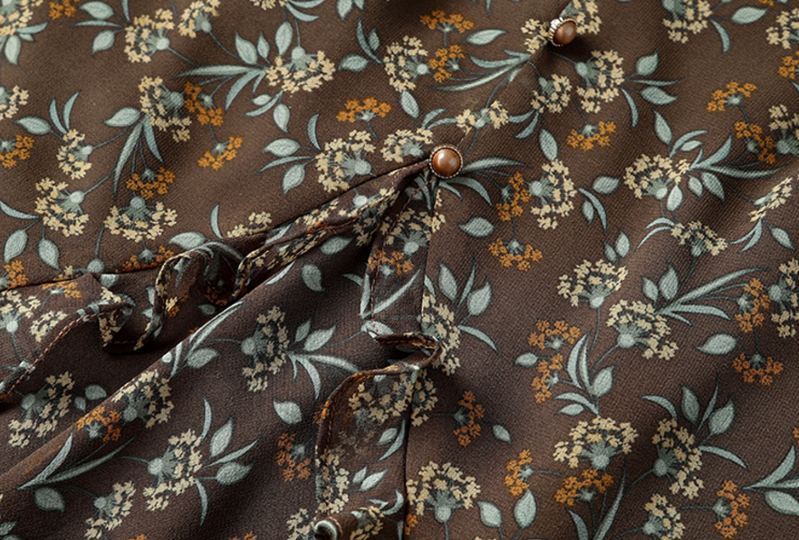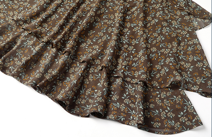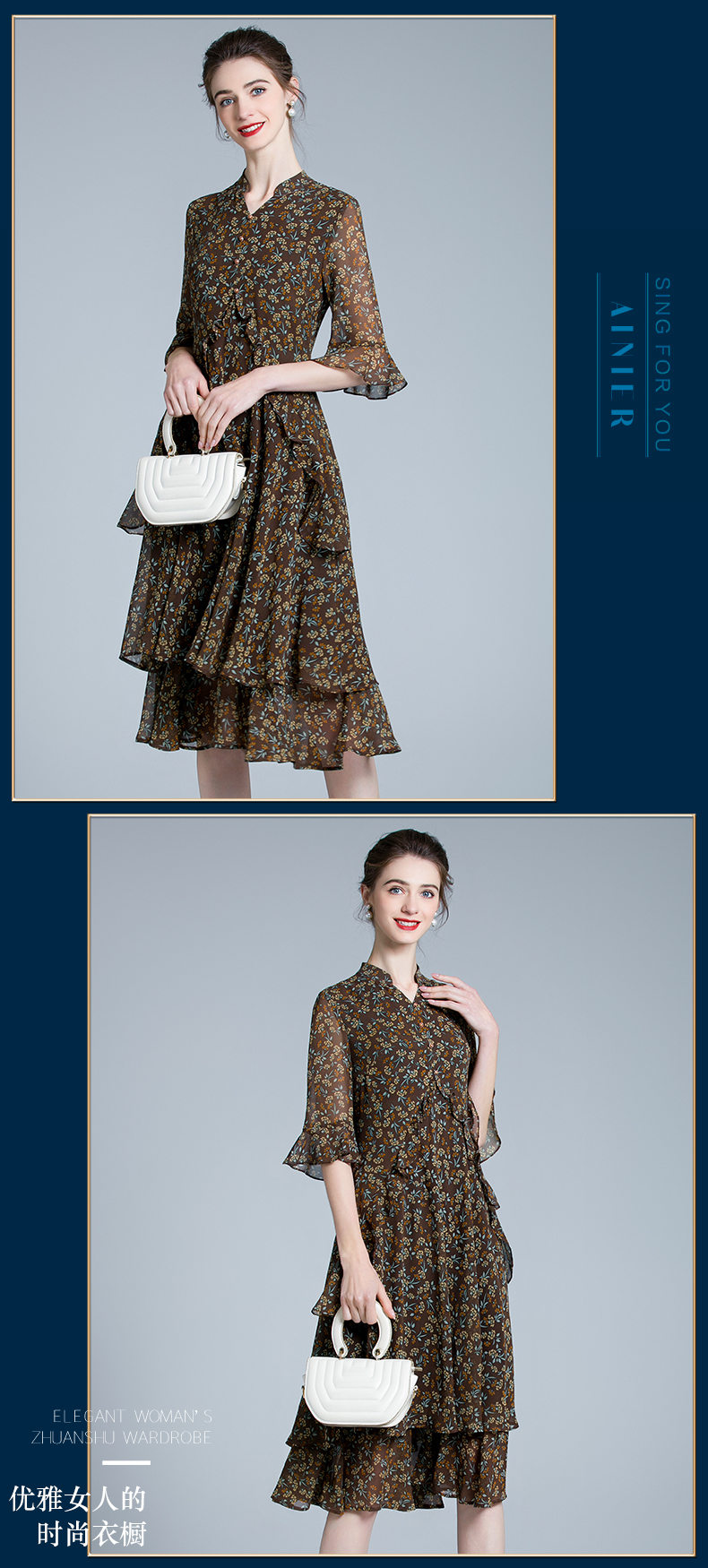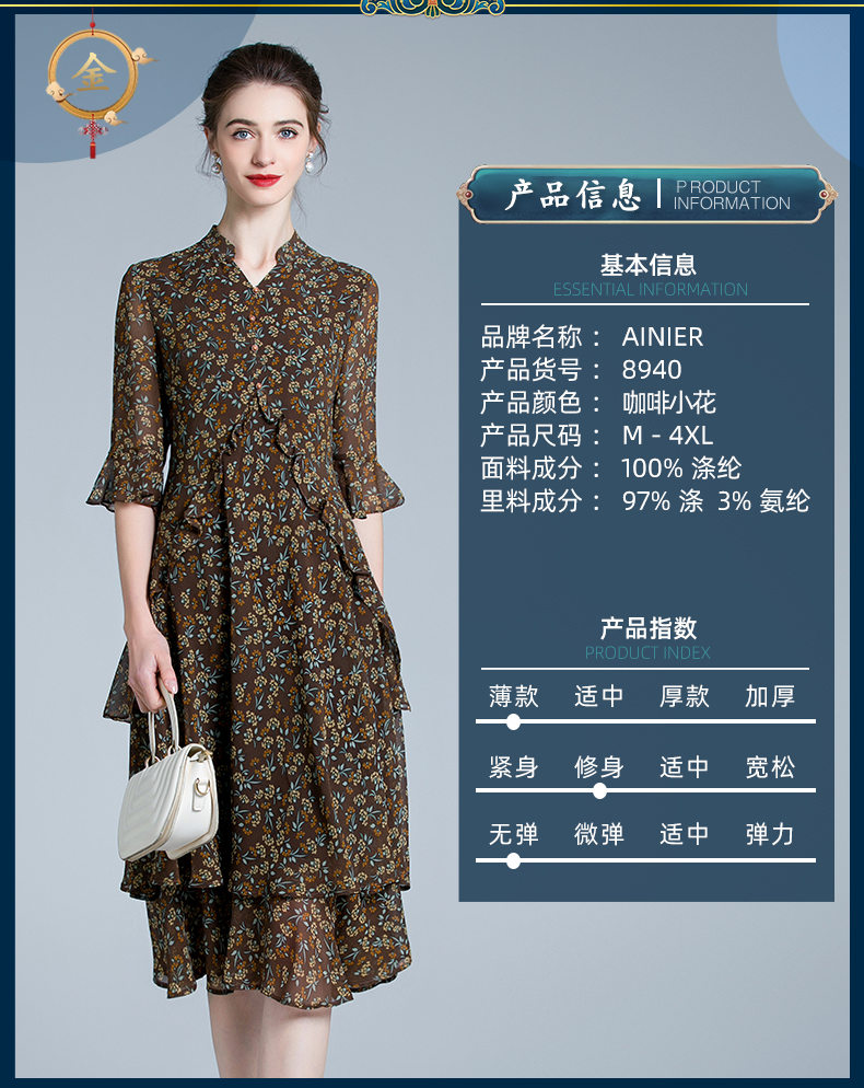 产品名称 | Product name: 妈妈装洋气法式V领印花雪纺修身连衣裙