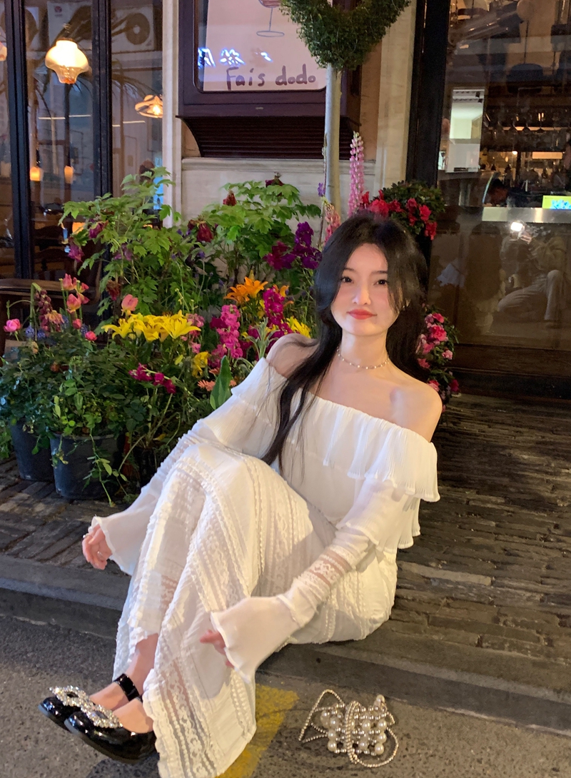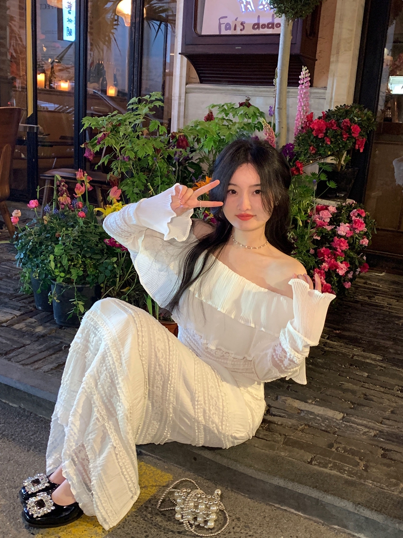 产品名称 | Product name: 超仙名媛风粉色一字肩连衣裙女春季2023新款法式收腰显瘦小众长裙