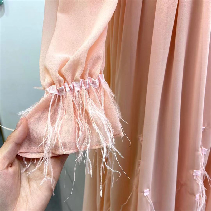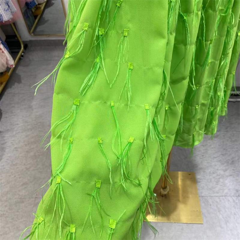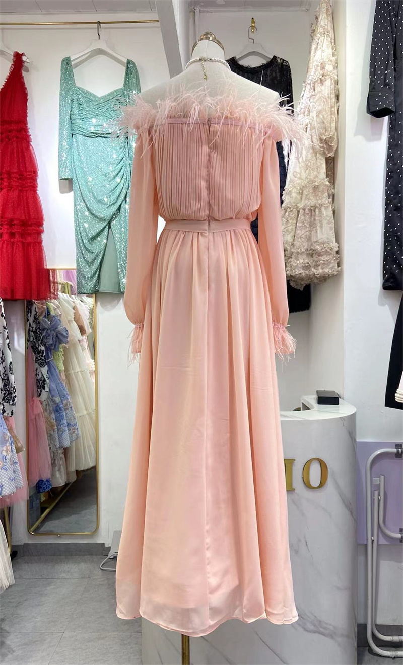 产品名称 | Product name: 小香风轻奢精致法式羽毛拼接一字领气质女神范长裙收腰显瘦连衣裙