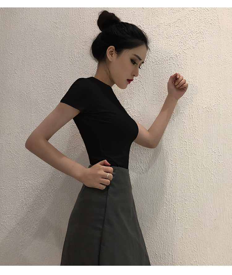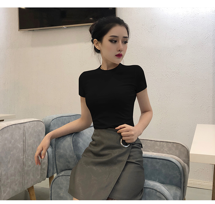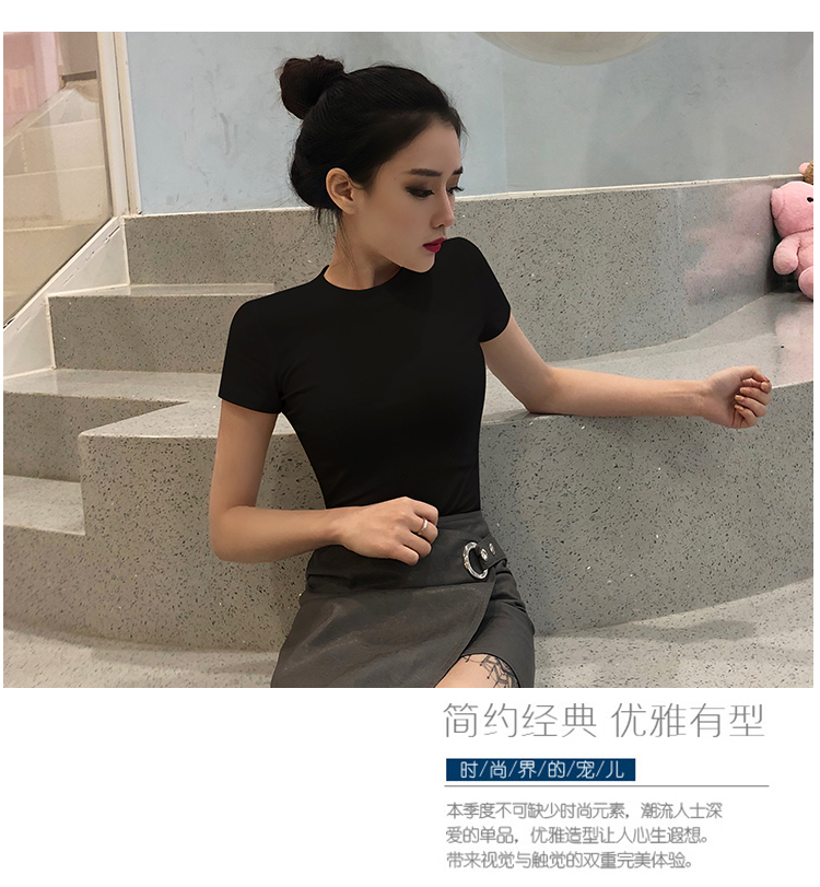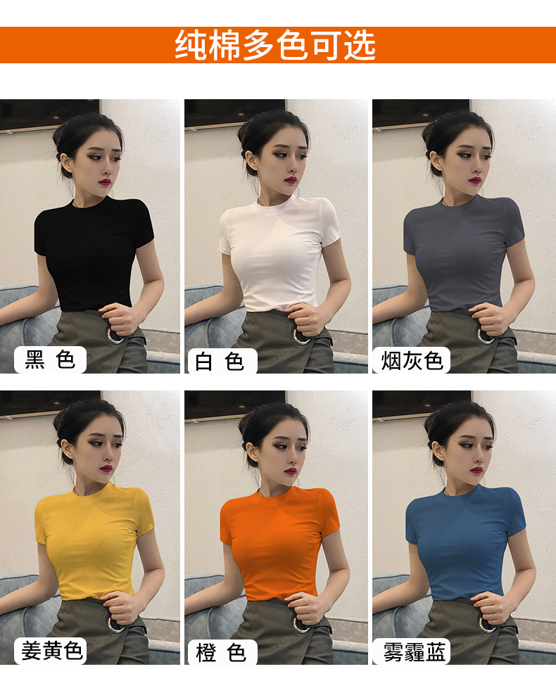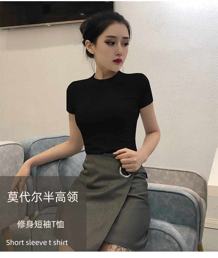 莫代尔t恤女短袖2023年新款修身打底衫冰丝夏季短款紧身体恤上衣
