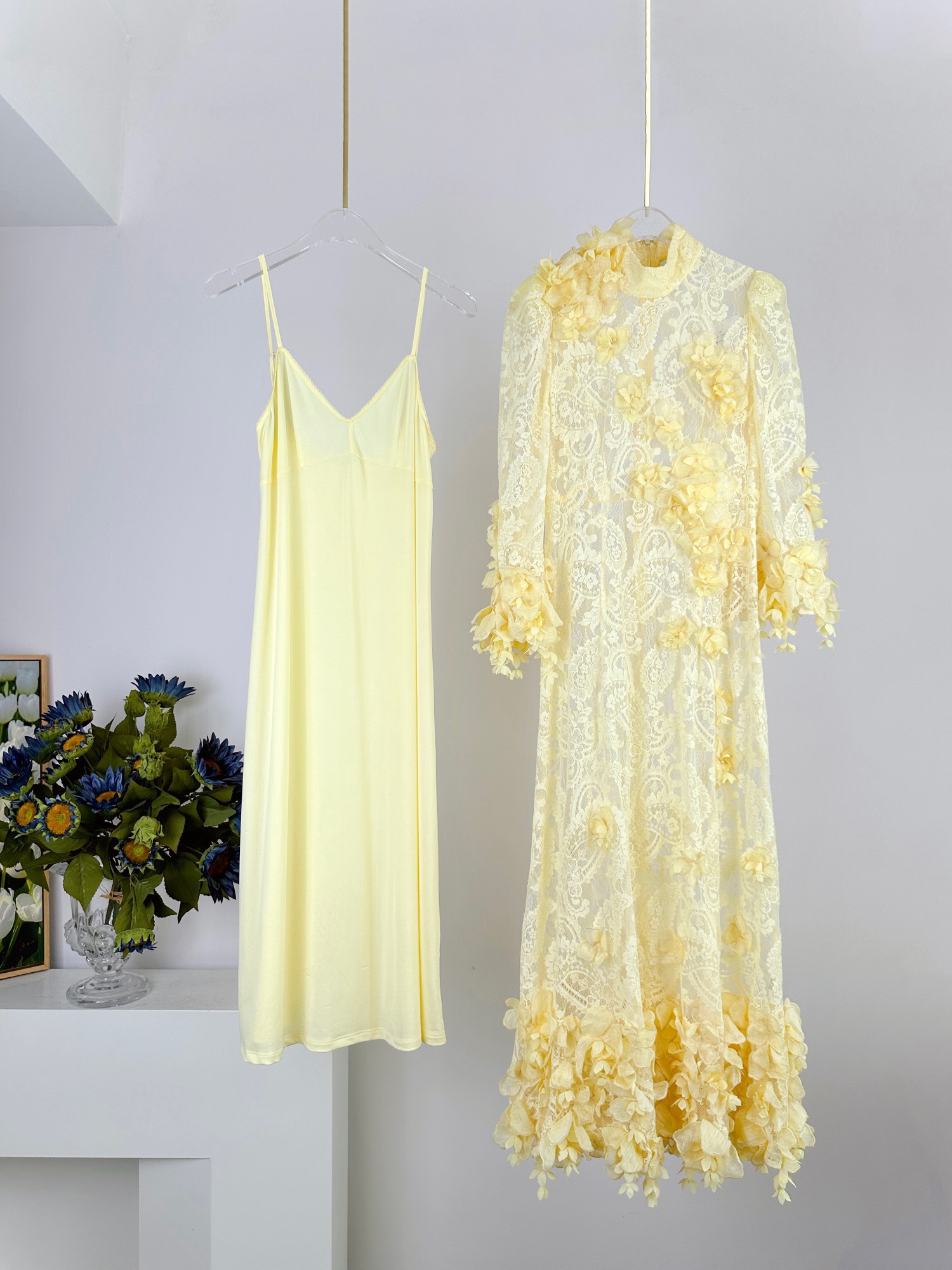 产品名称 | Product name: 王天真家宫廷风重工立体花朵钉珠连衣裙长裙蕾丝仙女裙